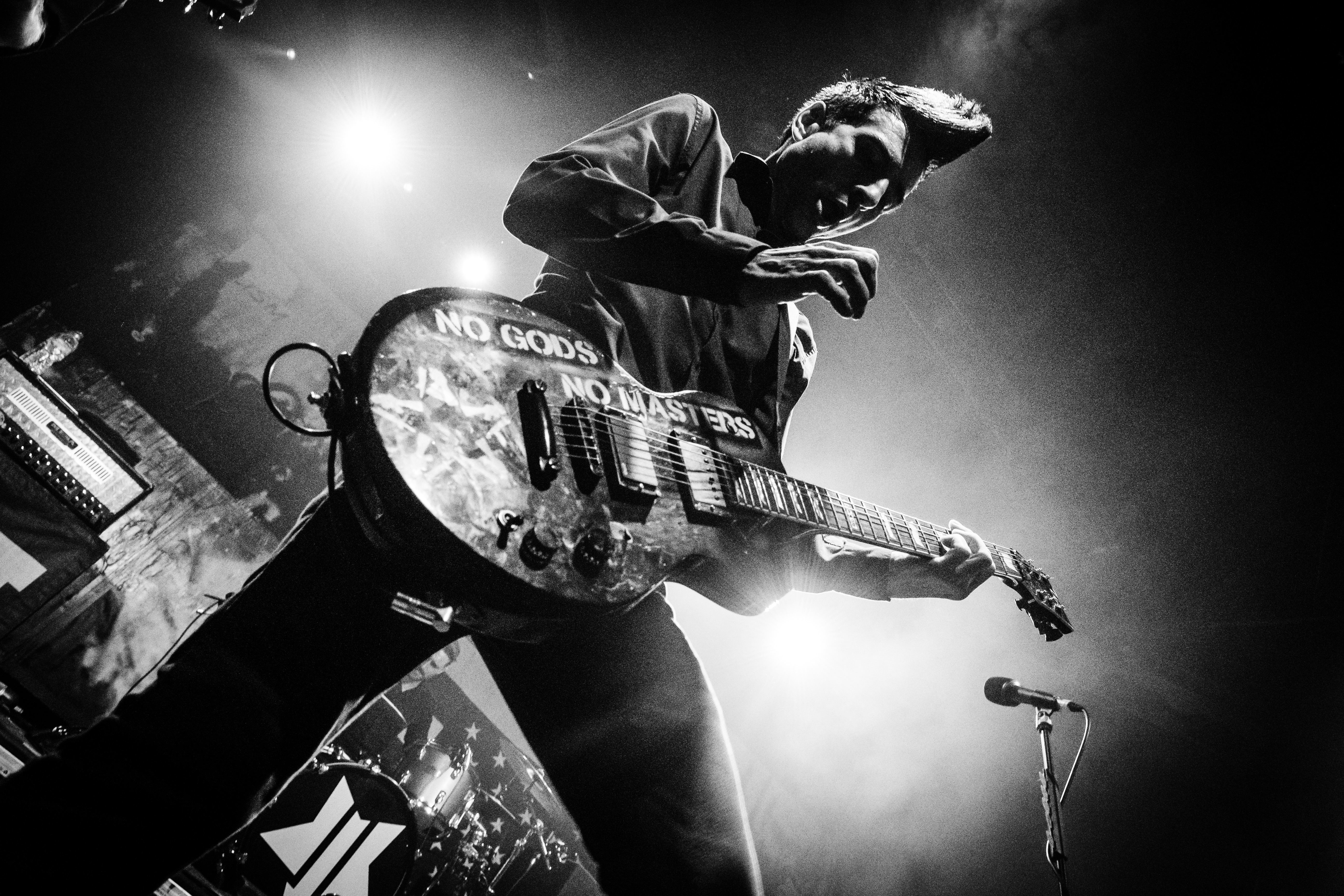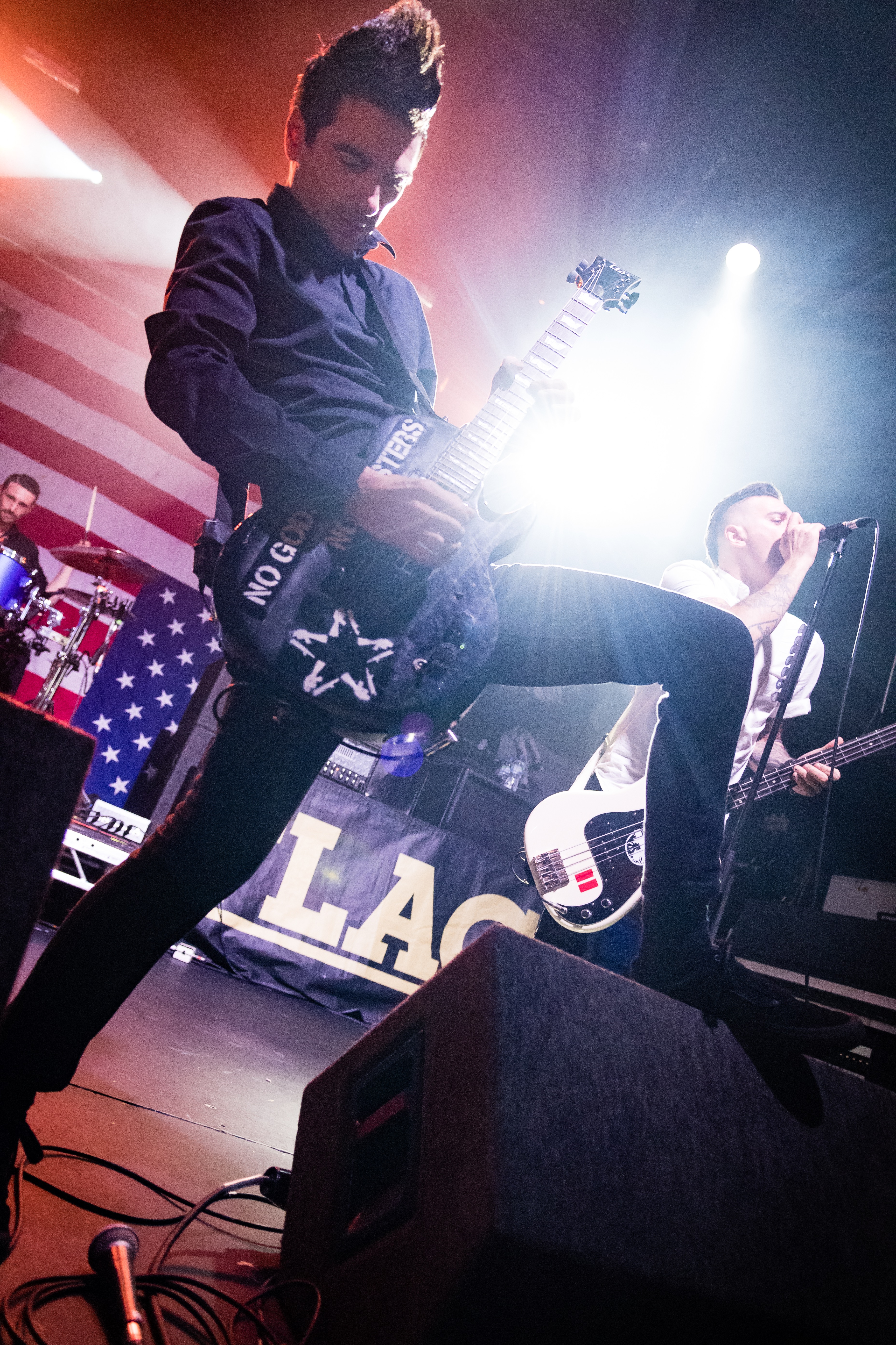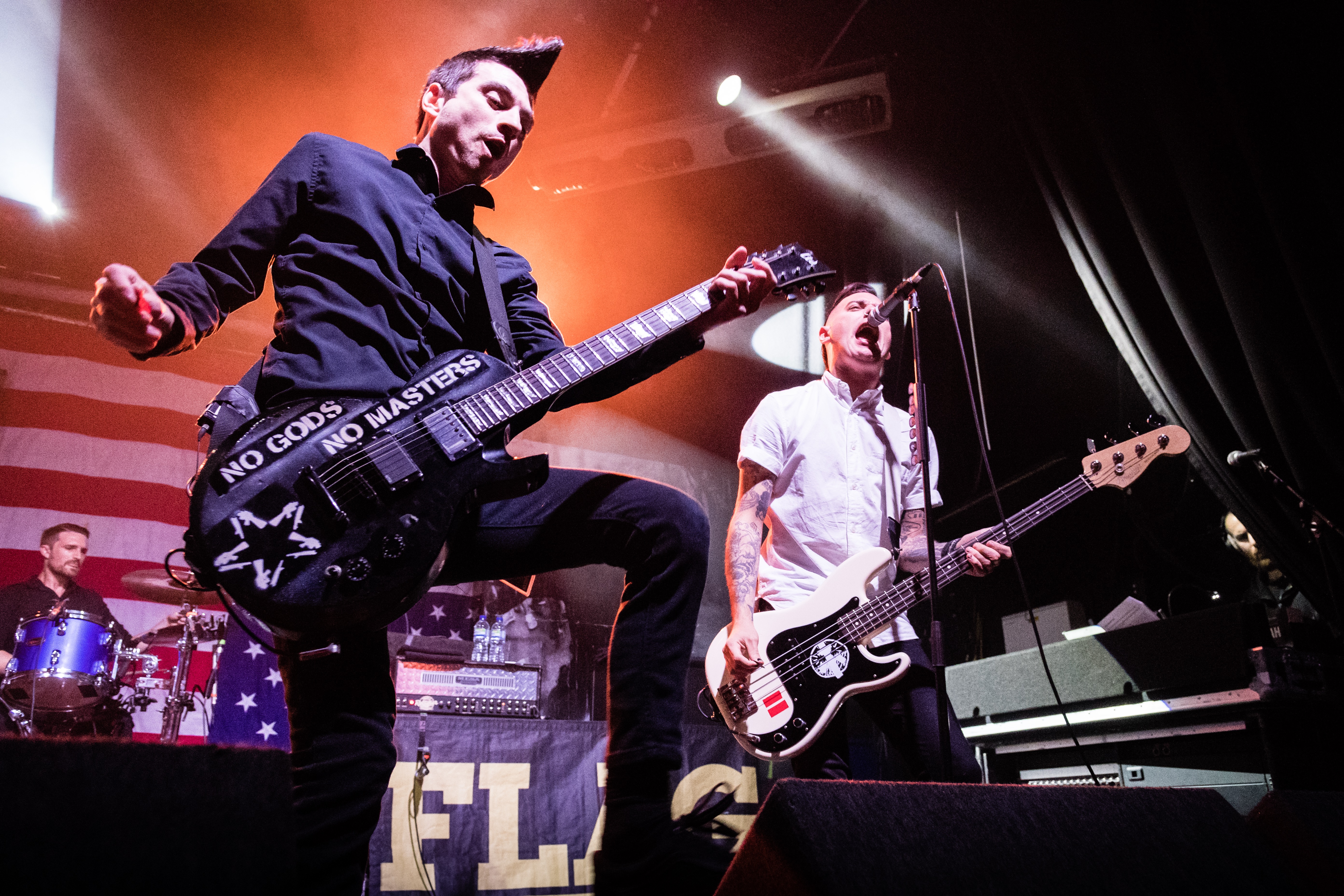 “Happy Halloween, Bristol! Tonight, we are ANTI-FLAG!” jokes WORRIERS frontwoman Lauren Denitzio. Their efforts are surprisingly accurate: dressed as the respective members and Lauren adding ‘No Gods, No Masters’ to her guitar, their brand of punk rock is not as heavy in tone than their headlining counterparts, it packs a punch all the same. Songs like WTF is Sleep? and They/Them/Theirs carry strong messages regarding mental health and depression, while What We’re Up Against comes with the first of a number of political rallying cries to be delivered across the evening. It’s a solid enough set, but what lets WORRIERS down is a terribly sparse venue and, despite warm appreciation from those in attendance, the response doesn’t match the delivery. This, perhaps understandably, begins to have an impact on the band’s energy levels towards the end of their set, but for the most part they’ve proved their worth and they’ll come back with NERVUS in the winter to give it another crack.