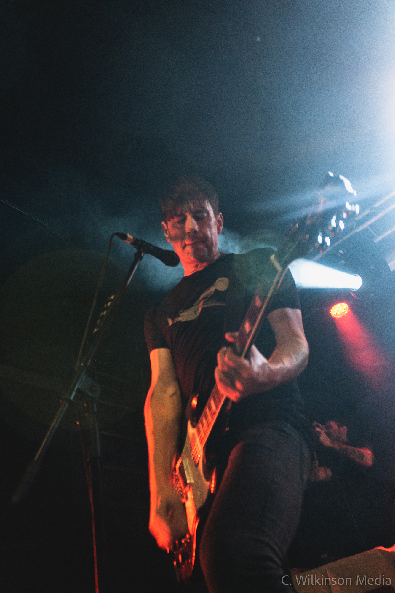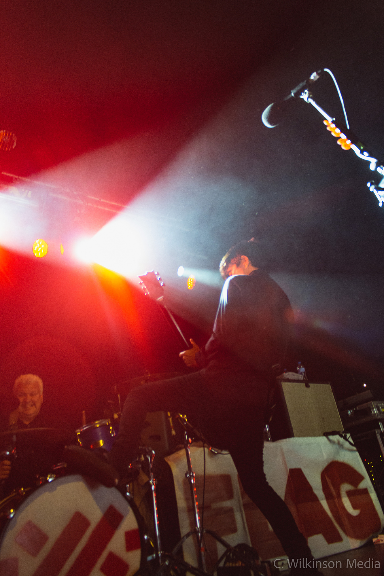 From the first notes from ANTI-FLAG it is clear that the already hot space of The Garage is set to reach baking point. The opening duo of The Press Corpse and Die For The Government ensures that the whirlwind moshpit is at full speed from the onset, as bodies enter the melting pot in front of the stage and throats shout along in full voice to these classic anthems. The bouncy rocker Hate Conquers All provides an early highlight, with bassist and co-lead singer Chris #2 shouting the ‘backs against the wall’ refrain like a man possessed. His chunky walking basslines carry a lot of the forward momentum of ANTI-FLAG’s songs, and in a live setting it stands out even more, particularly with his guitar suitably ramped up in the mix. His performance behind the mic is no less committed, with the sheer power behind his shrill screams acting like an adrenaline injection. Alongside him, guitarist and co-vocalist Justin Sane perfectly carries the more melodic parts, while virtually everyone on stage chips in for the powerful choruses. As befits a band that has played in the same configuration for over twenty years, their entire musical unit is infallibly tight.