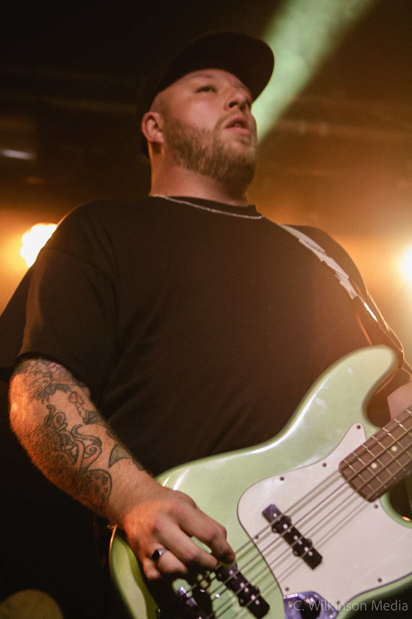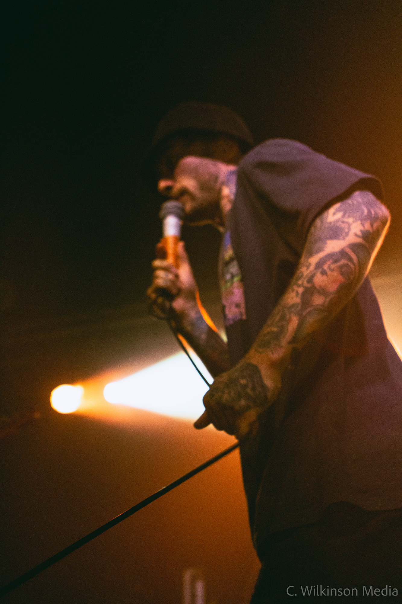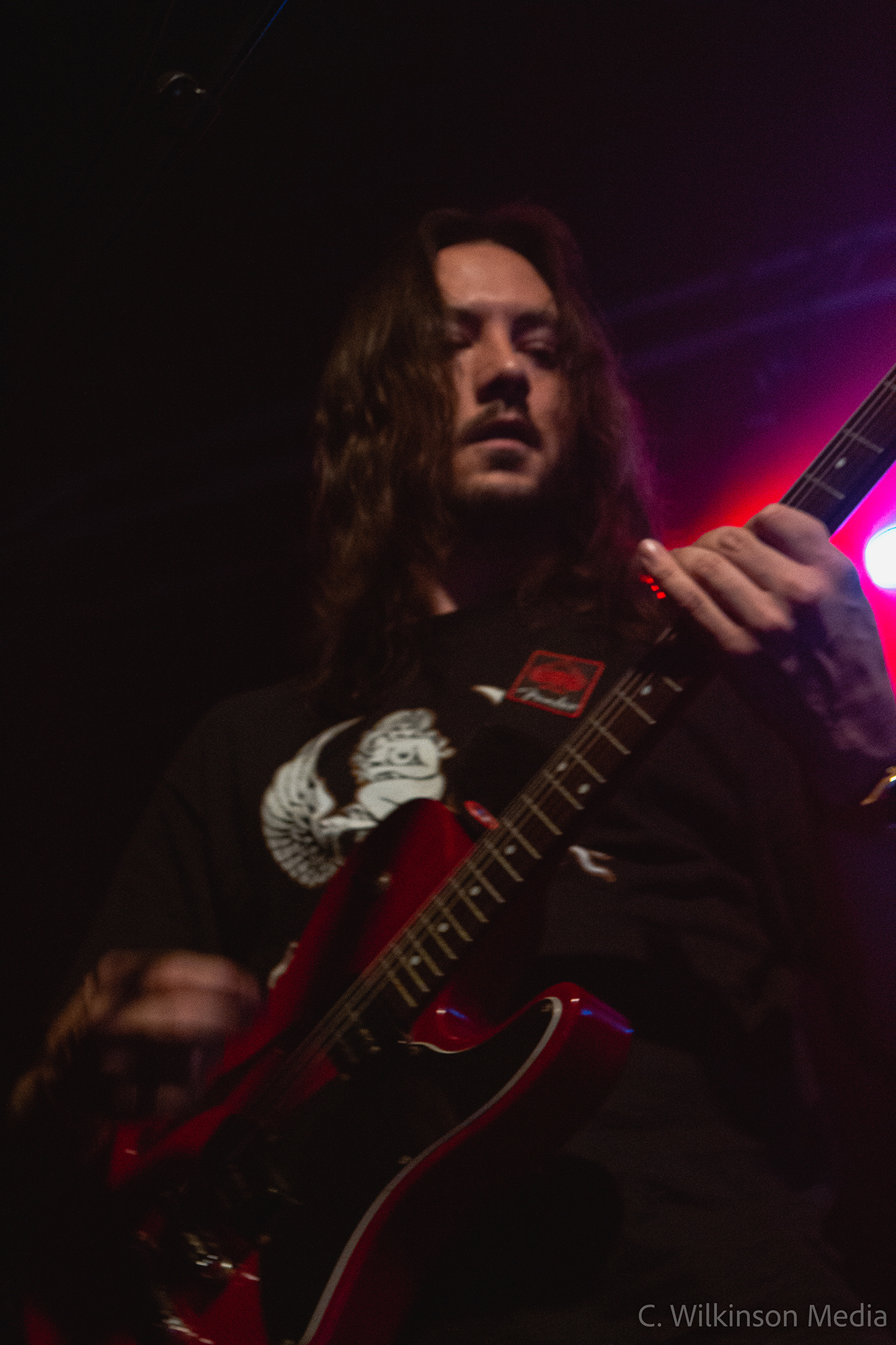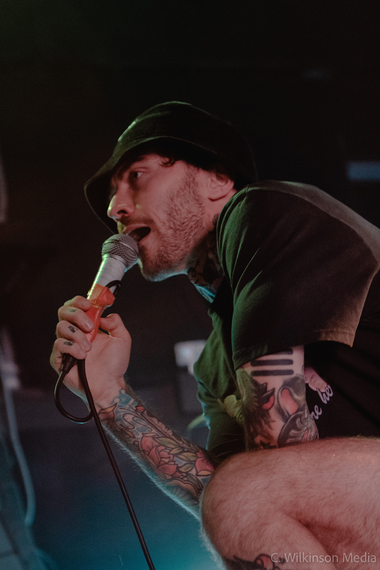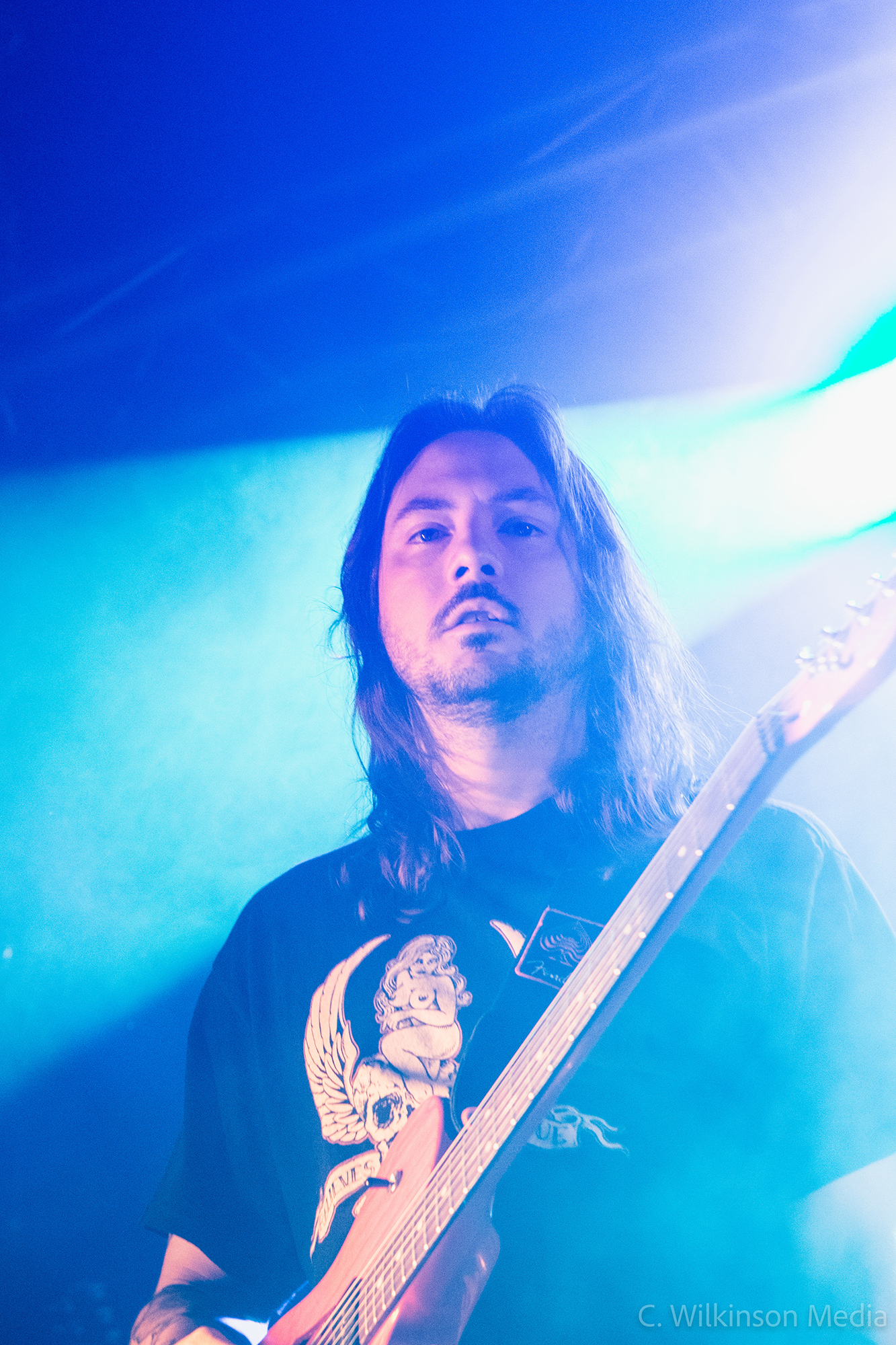 A lively start is given by LAST HOUNDS from Birmingham who dial up the heat by another degree. Their brand of hardcore punk blends in rocky hooks and nu-metal-tinged riffs, resulting in an energetic sound that is easy to latch on to. Presenting mainly songs from 2021’s Burden, their only full-length offering to date, the quintet shower us with groovy breakdowns and gang vocals. Moments like the choppy main riff of Bleed and the vicious drop of Running With The Dead sound absolutely monstrous live and get a fair few of the gathering crowd moving. The ferocious vocals of Mike Skelcher shift between rap-adjacent narrative and rasp-throated melodic singing, all while he is tirelessly patrolling the stage and engaging the audience. Snakeskin rounds off a fun and engaging set by LAST HOUNDS – a young band that is well worth keeping an eye on.