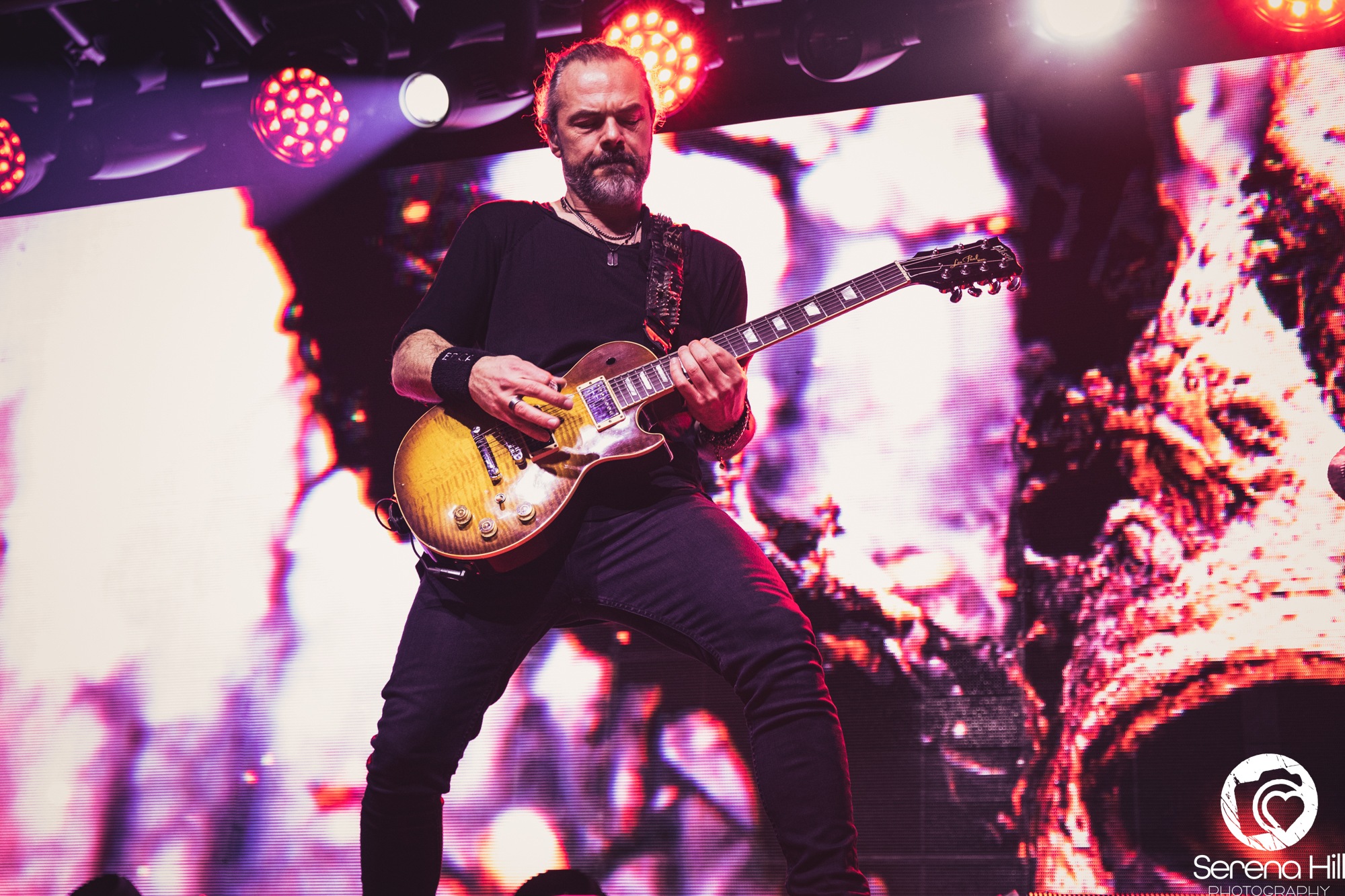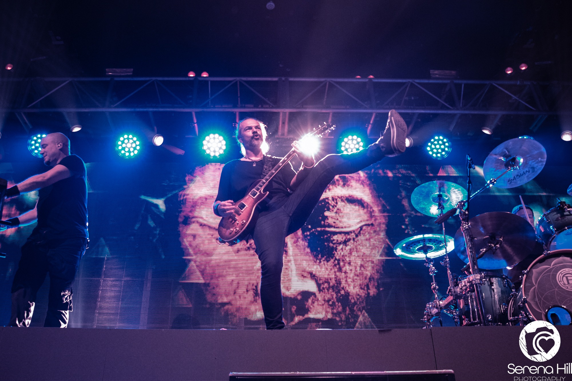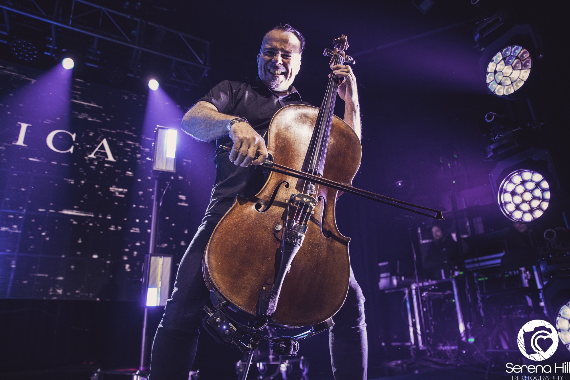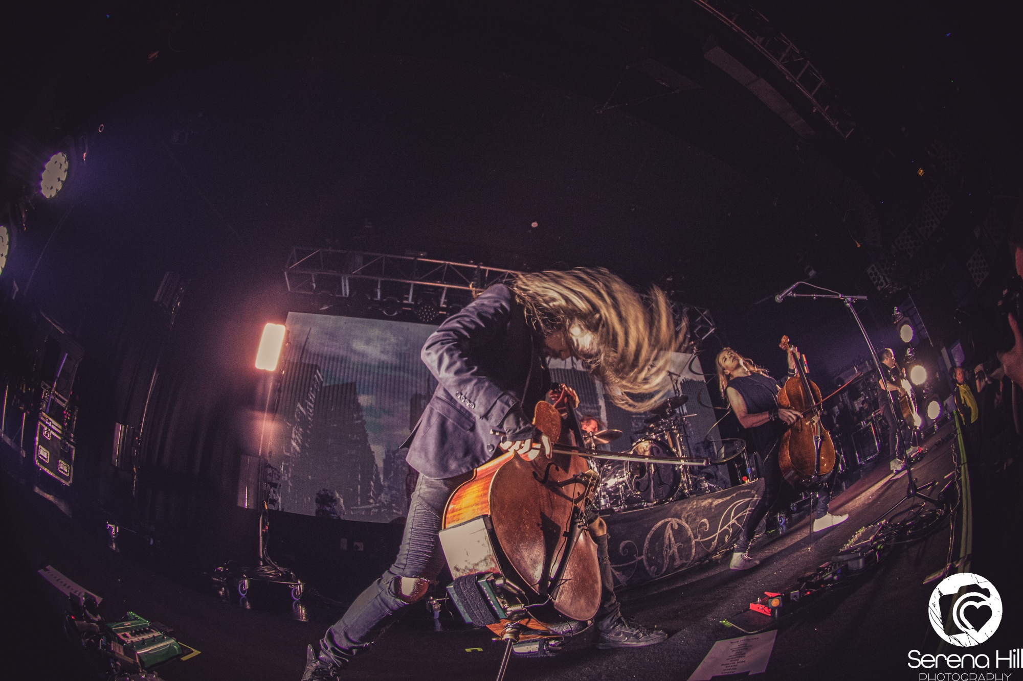 The final act to perform on the Epic Apocalypse Tour is, well, APOCALYPTICA. Their entry onto stage is accompanied by the ambient sounds of a forest that is quickly disrupted as it crescendos into a turbulent storm. Their set begins as a trio of cellos comprised of Perttu Kivilaakso, Eicca Toppinen, and Paavo Lötjönen, forgoing the more traditional metal elements to perform Ashes Of The Modern World. It is the perfect way to open their set, giving the audience a taste of each little thing that makes APOCALYPCTICA great; it has everything from the classical string trio harmonies, to blast beats that sit comfortably underneath a cello wah solo that wouldn’t sound out of place in a GUNS N’ ROSES track. They make the effort to move around the stage, despite the usual grounded nature of their instruments, showing the audience how greatly they are appreciated in this moment.