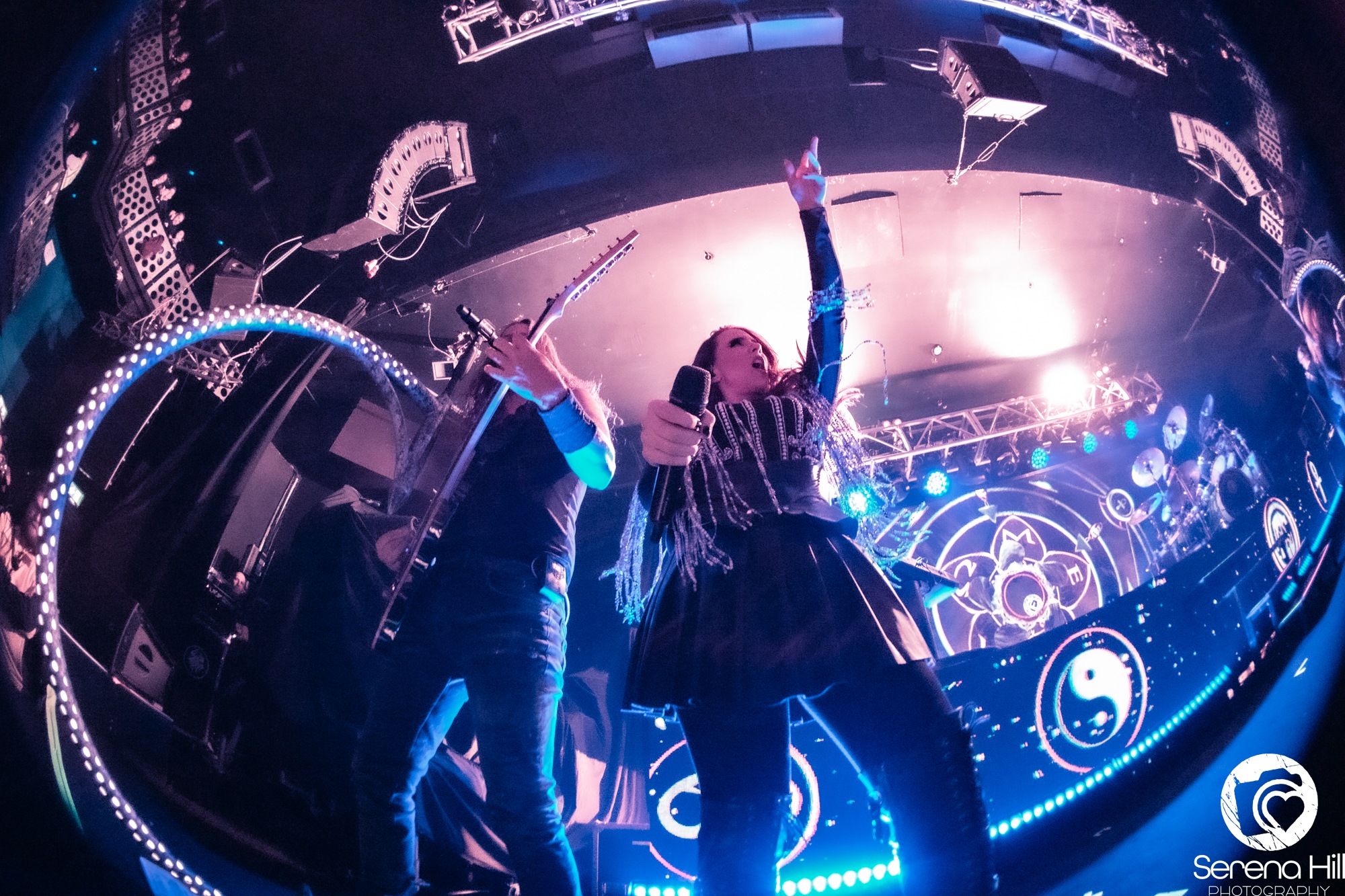 Opening the evening’s proceedings is Finnish band WHEEL. They seem an odd match considering the symphonic and epic natures of the co-headliners, yet their progressive nature throws the crowd in headfirst to the show. Their set is comprised of a short five songs, so they waste no time in cracking on, not letting the time limit deter them from showcasing their talents to the eager audience. Their act is mesmerizing, drawing in the audience and starting their evening with the heavy element that will no doubt get them into the perfect frame of mind for the main acts.