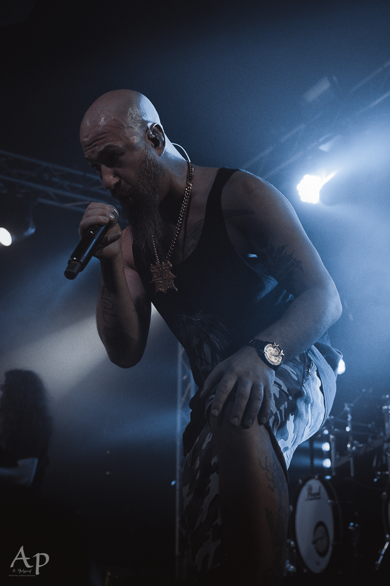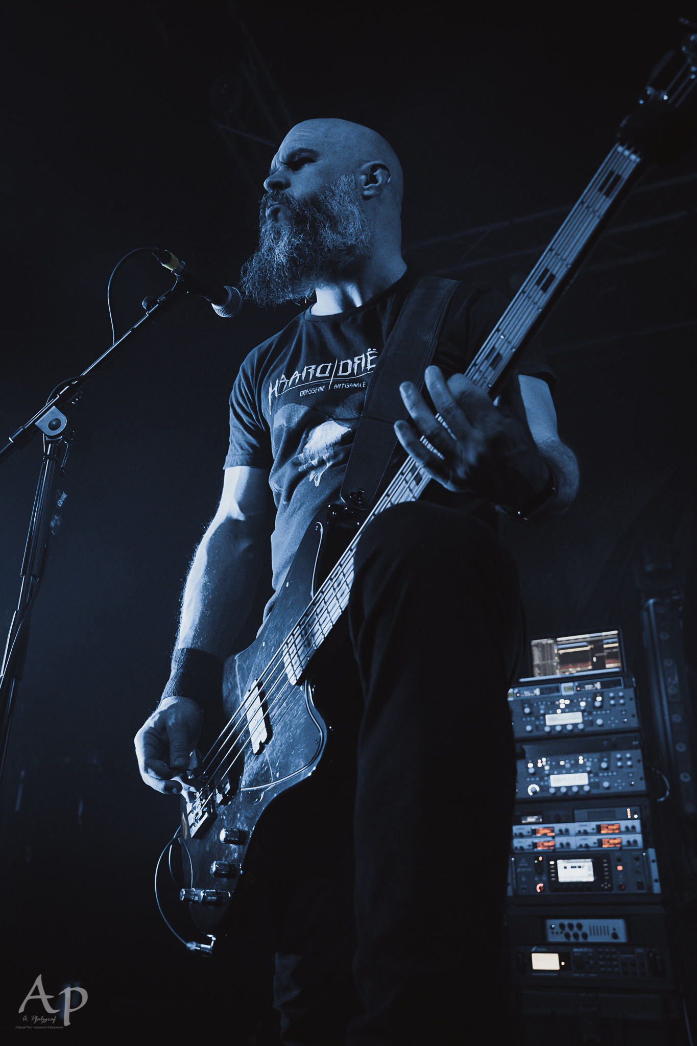 The brutalistic nature of Julian Truchan‘s high end and low end screams capture the gnarly sound this band is aiming for; bringing out the voices of swamp demons and clickers alike with the occasional pterodactyl. The guitar riffs have that old school death metal quality with consistent tempo changes between the more thrashier riff style to the crazy tremolo section and lasting on the techno speed of death metal riffs and insane double bass patterns. A set full of abrupt stops and surprising starts, they know how to get you jumping out of your skin and into those pits! It does need to be mentioned that this collective is leaning more towards the extreme style, and not for the faintest of hearts (or those of whom aren’t acquired to ridiculous nature of this genre).