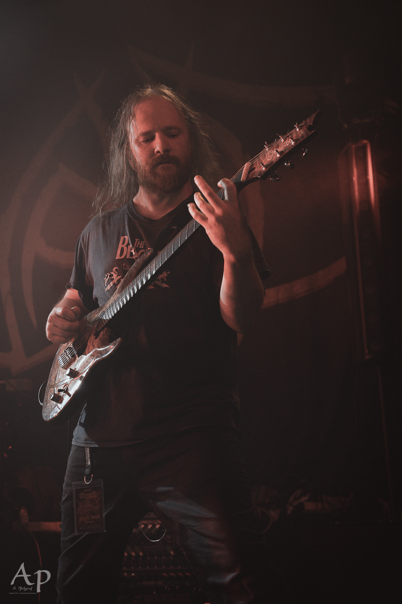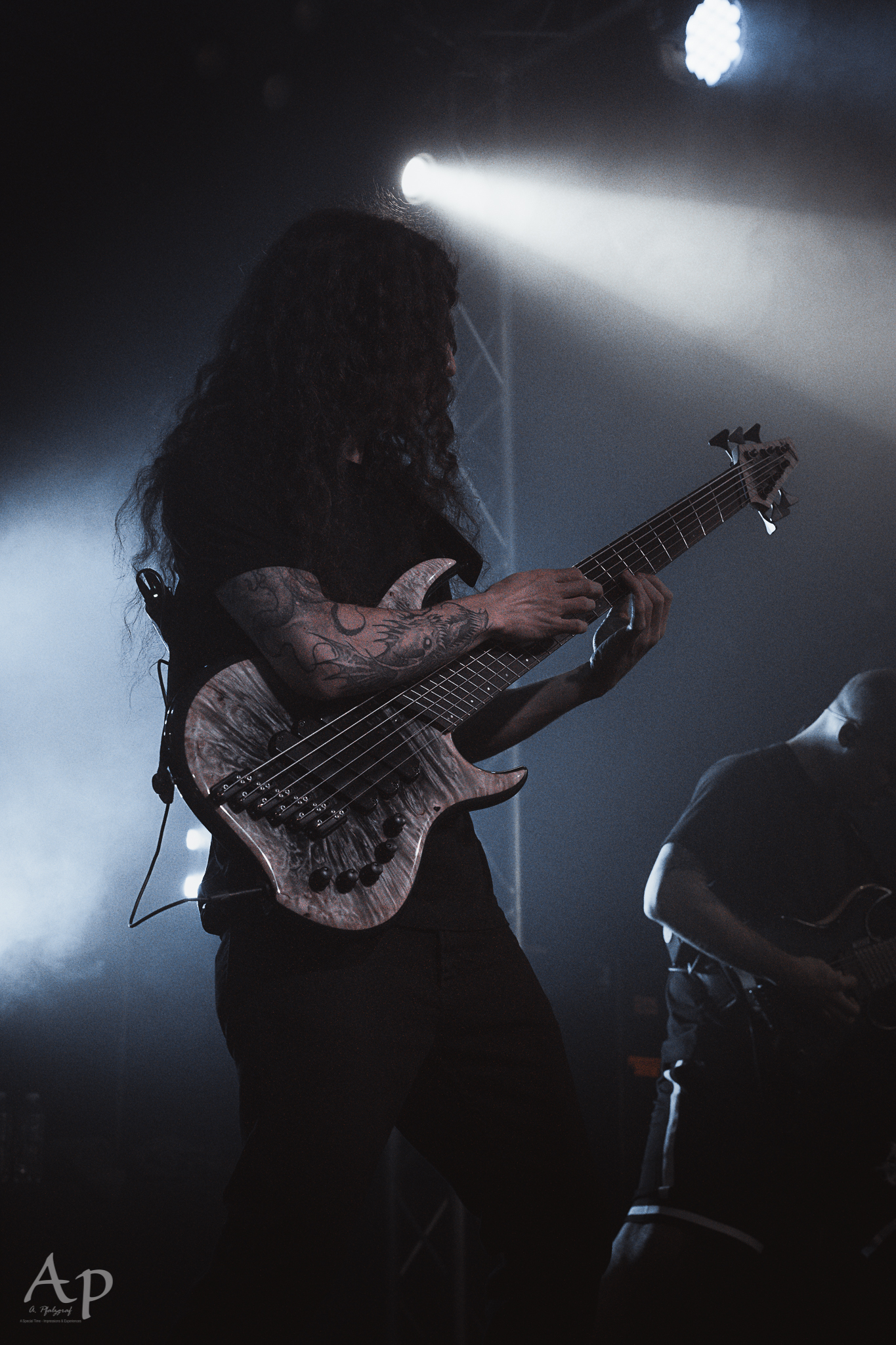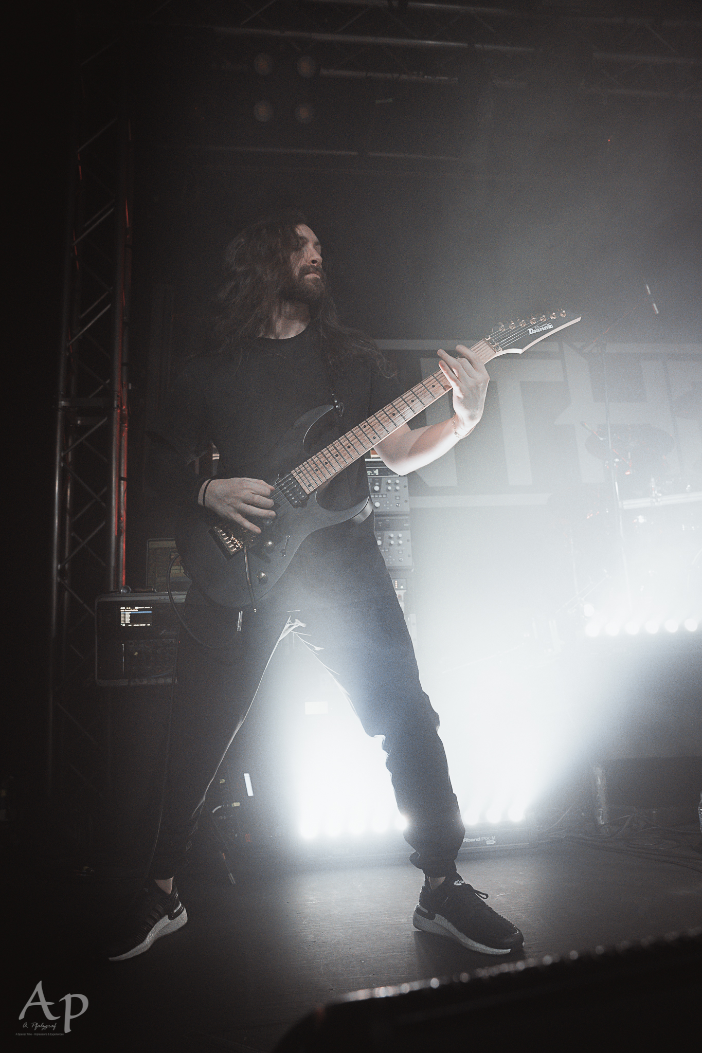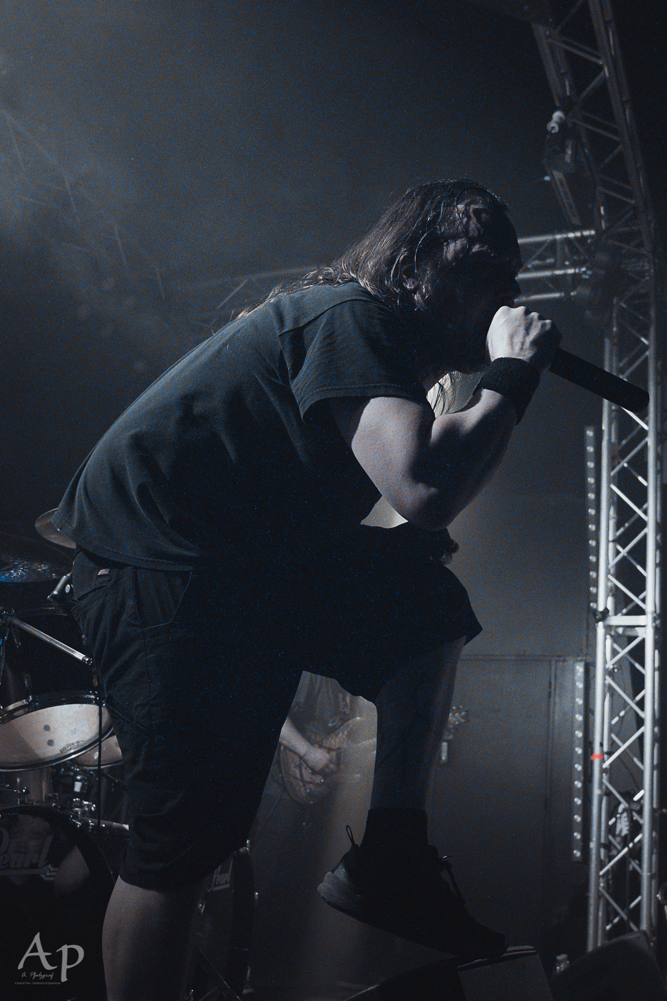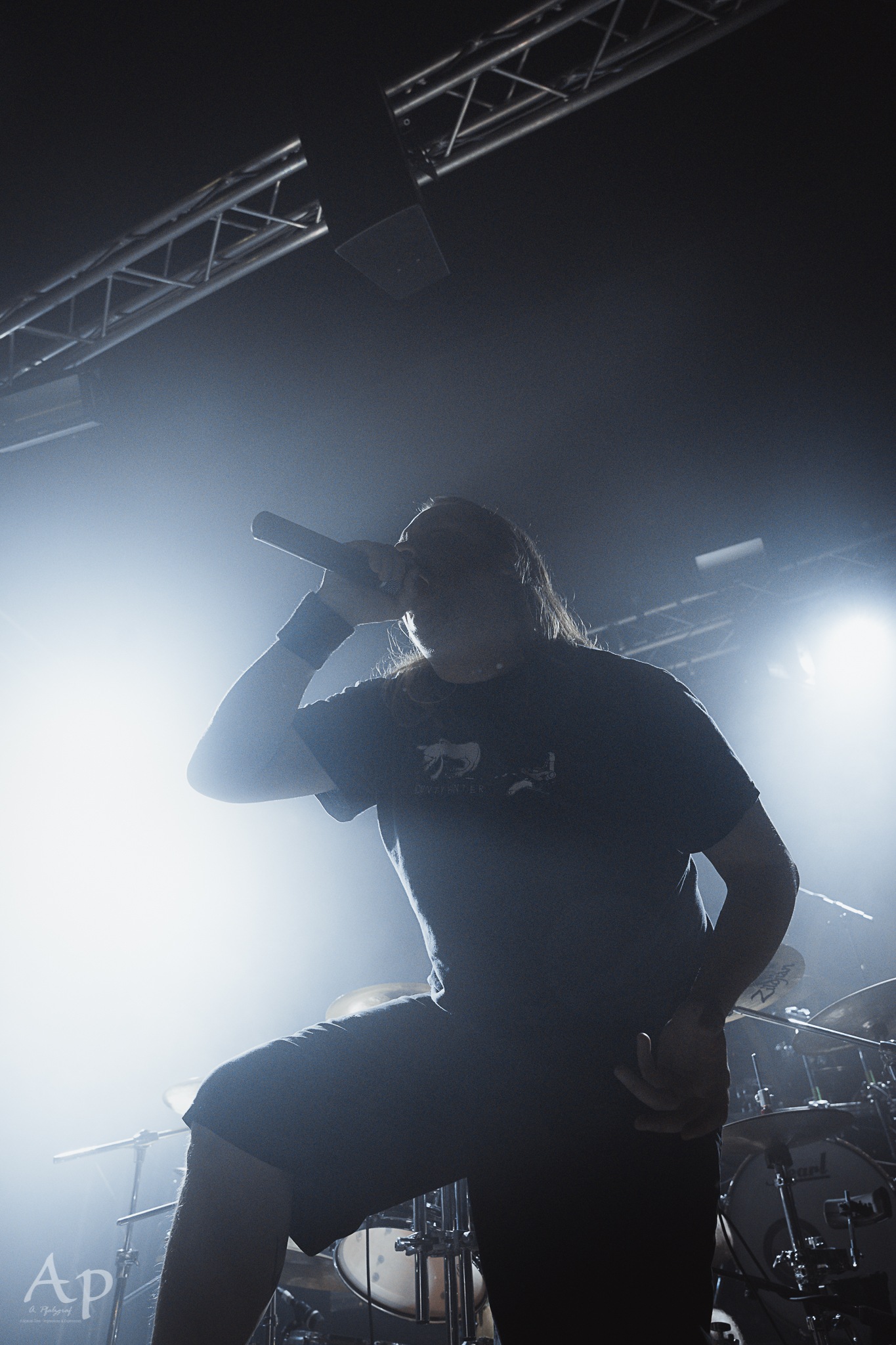 Our first taster for this evening is ENTHEOS; the duo of creativity that is Chaney Crabb and Navene Koperweis who bring a sense of groove to tech death. Though arguably their moments of groove-induced slaughter end far too abruptly but it fuses nicely with the technical and fast paced aspects of their riffs. Though the charisma between Chaney and Navene was infectious; the latter absolutely lost himself in the music to the point where he was lying on the floor playing, with a fat smile plastered on his face in a state of euphoria. Chaney destroyed the stage with her vocals and it is really jarring when you see her smile and show appreciation for playing that stage alongside some of tech deaths’ greatest displays of brutality. All in all; ENTHEOS are not ones to sleep on and show massive amounts of potential to grow and blossom among the best.
