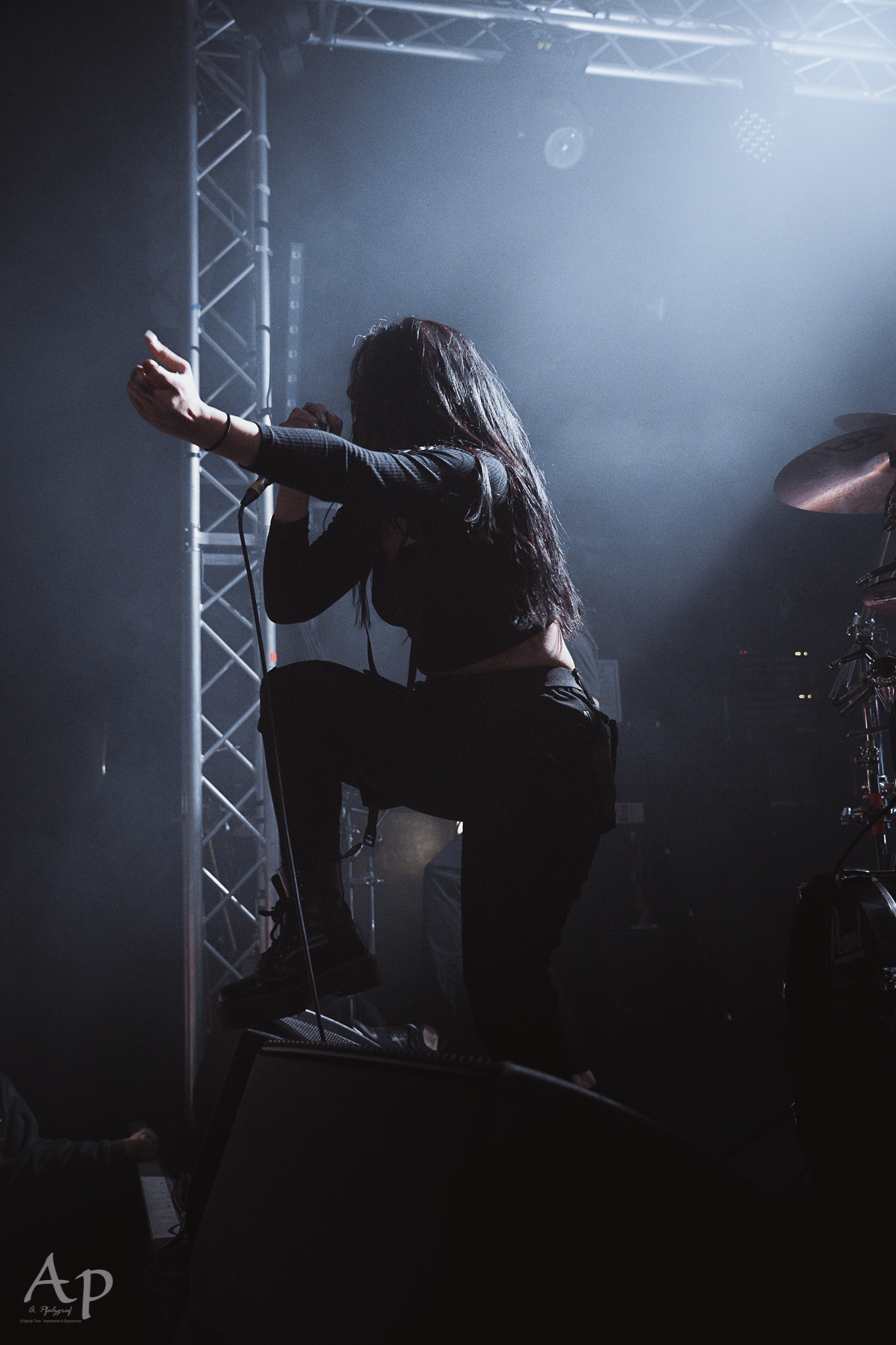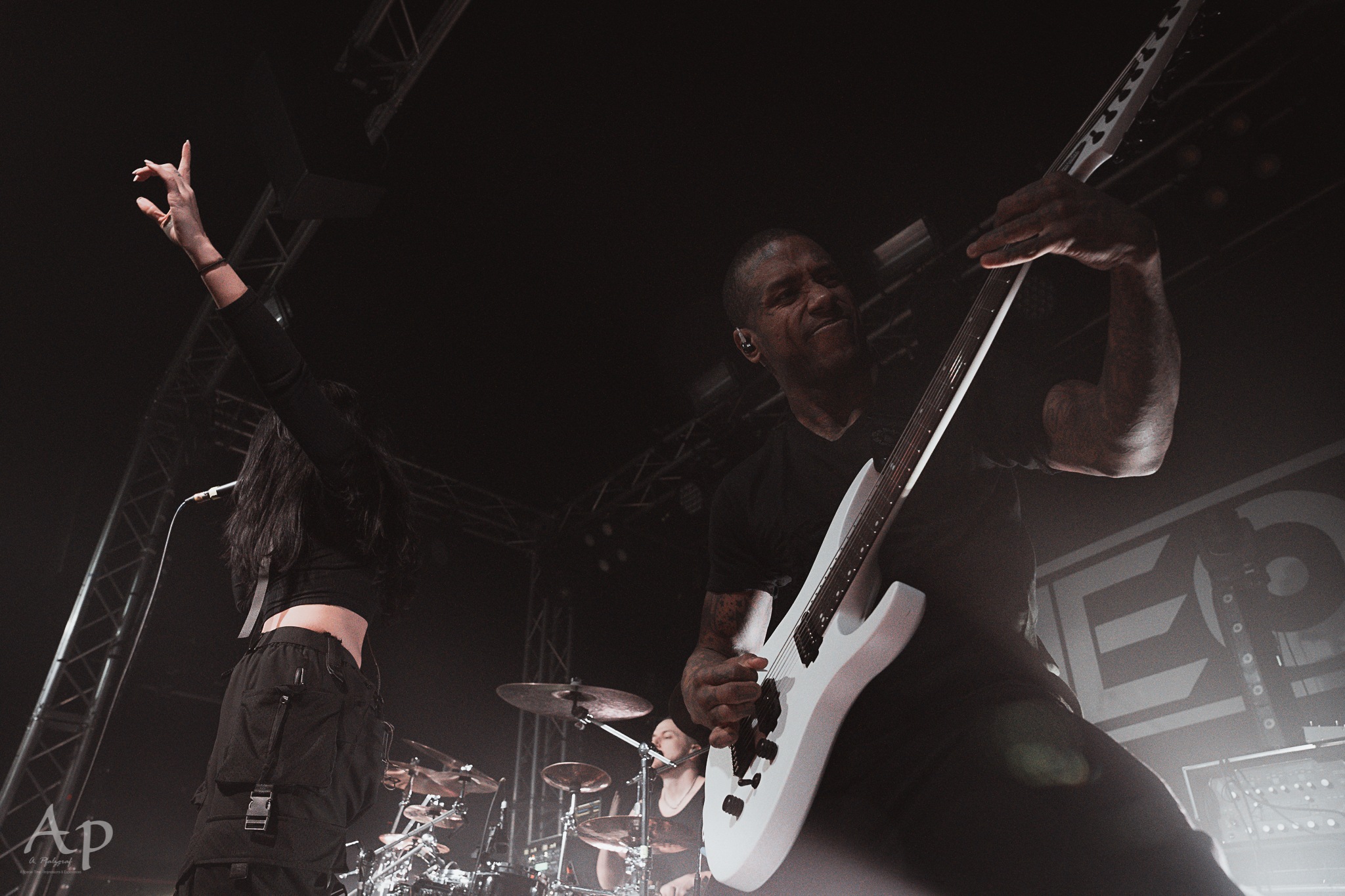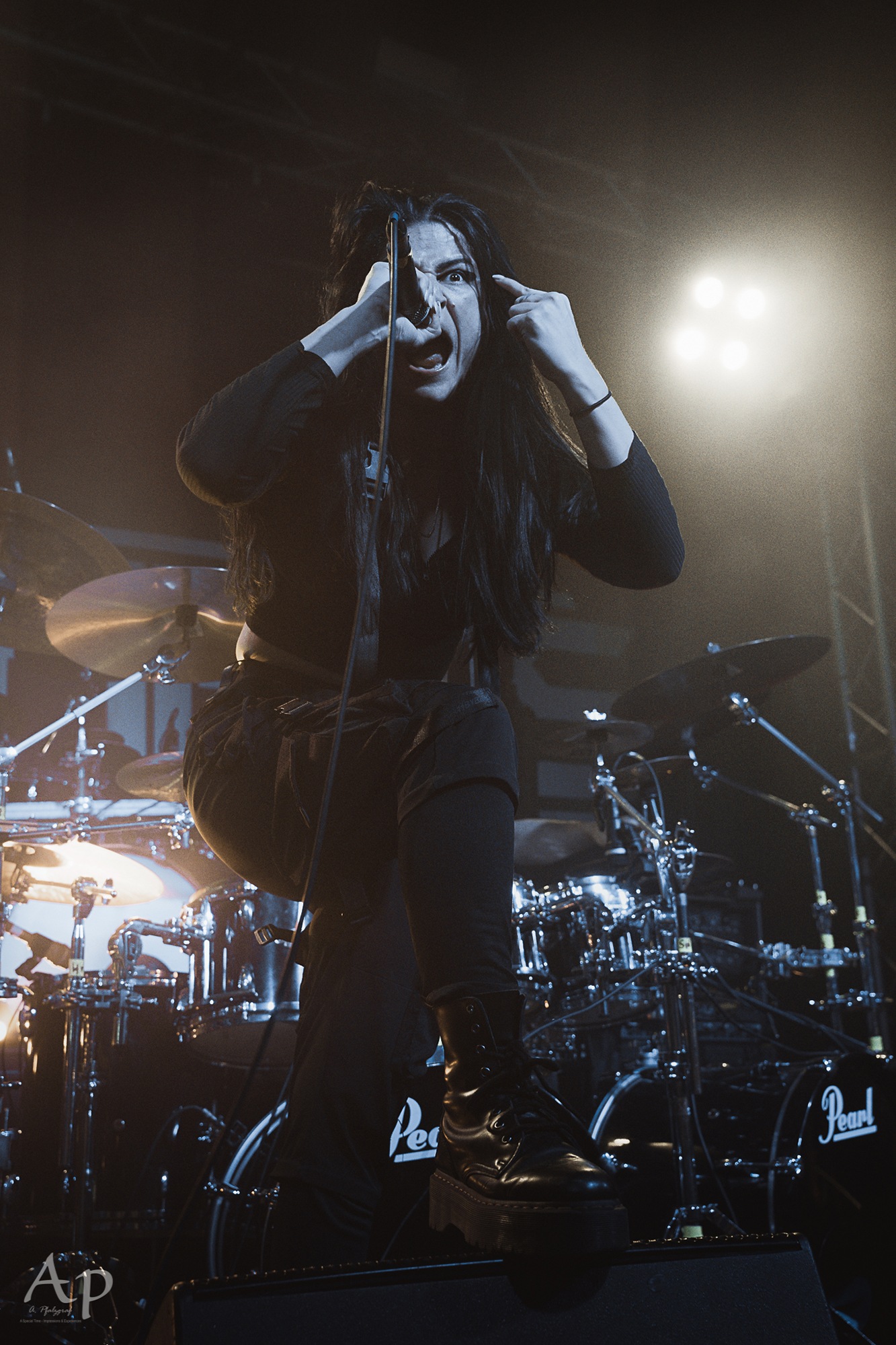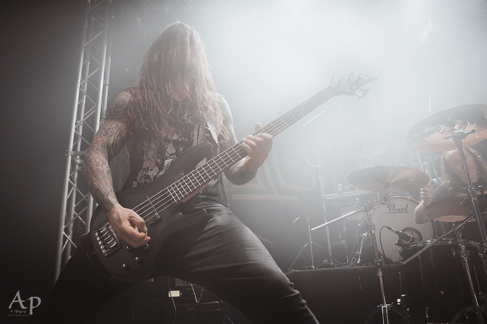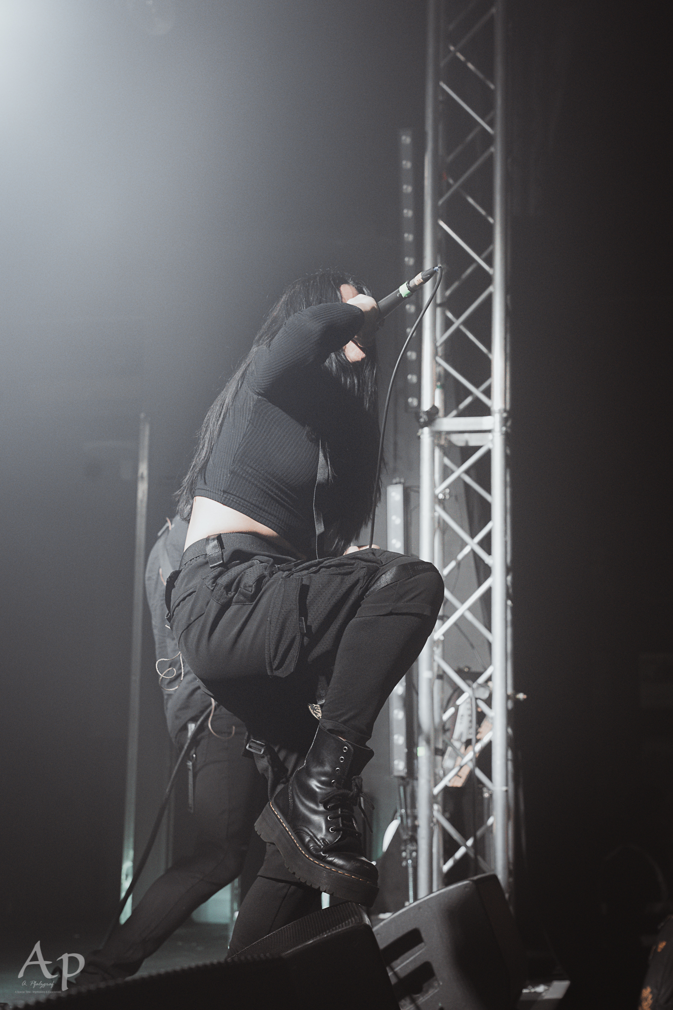 Our first taster for this evening is ENTHEOS; the duo of creativity that is Chaney Crabb and Navene Koperweis who bring a sense of groove to tech death. Though arguably their moments of groove-induced slaughter end far too abruptly but it fuses nicely with the technical and fast paced aspects of their riffs. Though the charisma between Chaney and Navene was infectious; the latter absolutely lost himself in the music to the point where he was lying on the floor playing, with a fat smile plastered on his face in a state of euphoria. Chaney destroyed the stage with her vocals and it is really jarring when you see her smile and show appreciation for playing that stage alongside some of tech deaths’ greatest displays of brutality. All in all; ENTHEOS are not ones to sleep on and show massive amounts of potential to grow and blossom among the best.