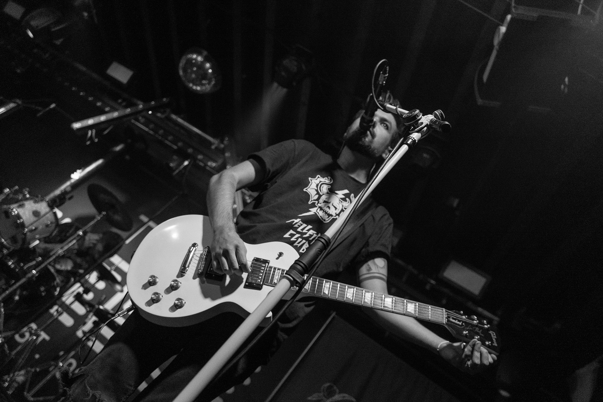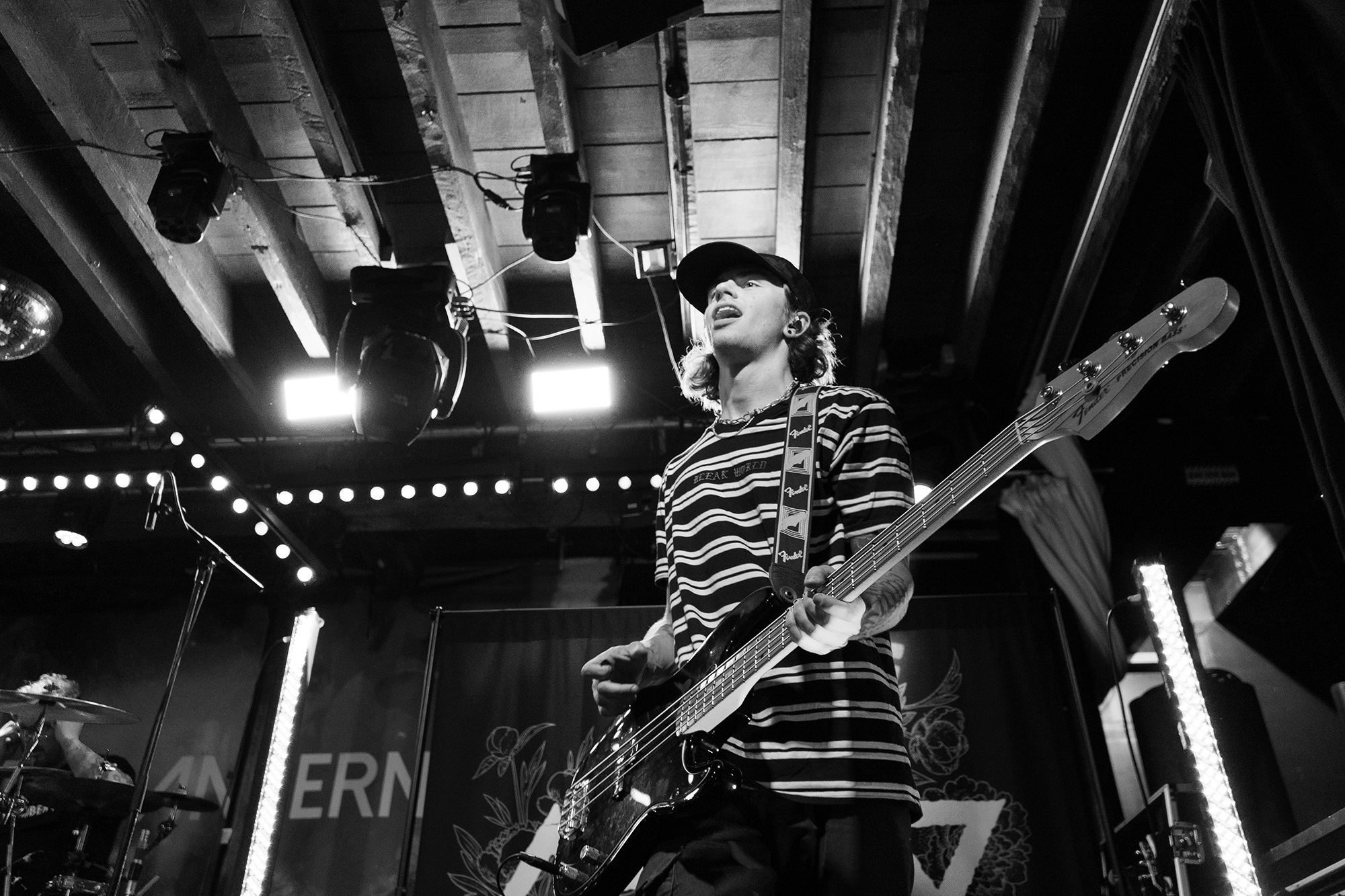Following LED BY LANTERNS are THE TYNE, a cross-country three-piece who have amassed a seriously impressive 400,000 followers on TikTok to date. Bounding on stage in matching grey outfits, the trio immediately age a lot of their audience by a good 15 years given their status as members of Generation Z; their youth means that they have an abundance of vigour and they’re also not short on confidence as they play through the only five songs to their name right now, from Sewn Shut through to Jessica. However, their pop-orientated rock, whilst largely inoffensive and somewhat catchy, leaves The Fleece largely unmoved and they’re unable to match or even surpass the level set by LED BY LANTERNS, an abject lesson in how a large digital presence shouldn’t always translate into a position on a live bill. Do THE TYNE have a place in the alternative world? Absolutely – along with bands such as 5 SECONDS OF SUMMER and BUSTED, they’re an excellent gateway band and will be pivotal for many born this side of 2010 getting into rock music. Should they have been main support, however? Not at all.