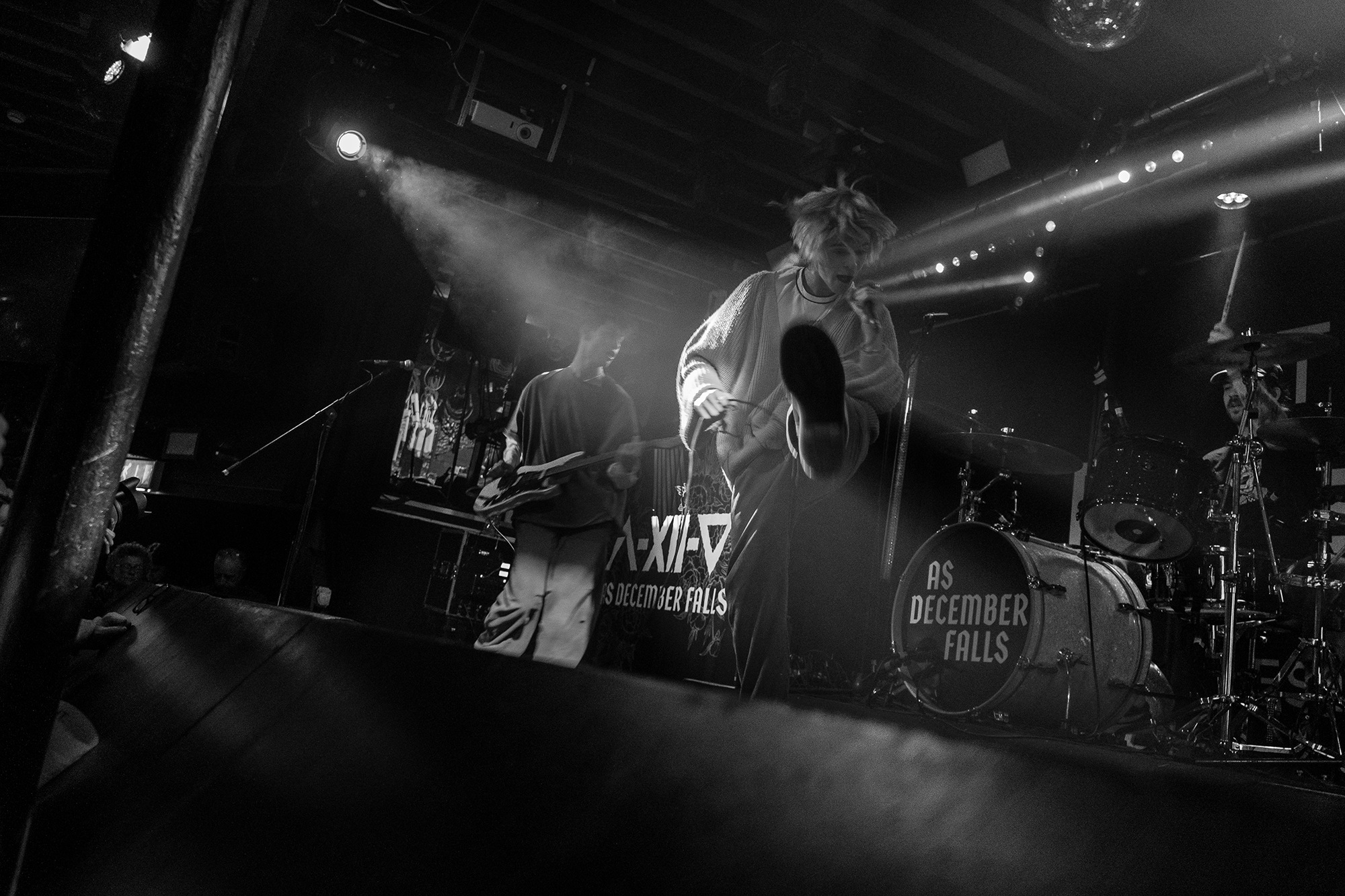 As the days tick round to a time affectionately known in the alternative community as ‘Goth Christmas’, the weather has fully embraced the spooky season; the rain is falling softly in Bristol as hoods are pulled over heads and jackets tightened. However, there will always be a warm reception inside The Fleece, one of the city’s most loved venues and always a place where you can find a friendly face, a decent pint and, most importantly, some decent music. Tonight brings AS DECEMBER FALLS.