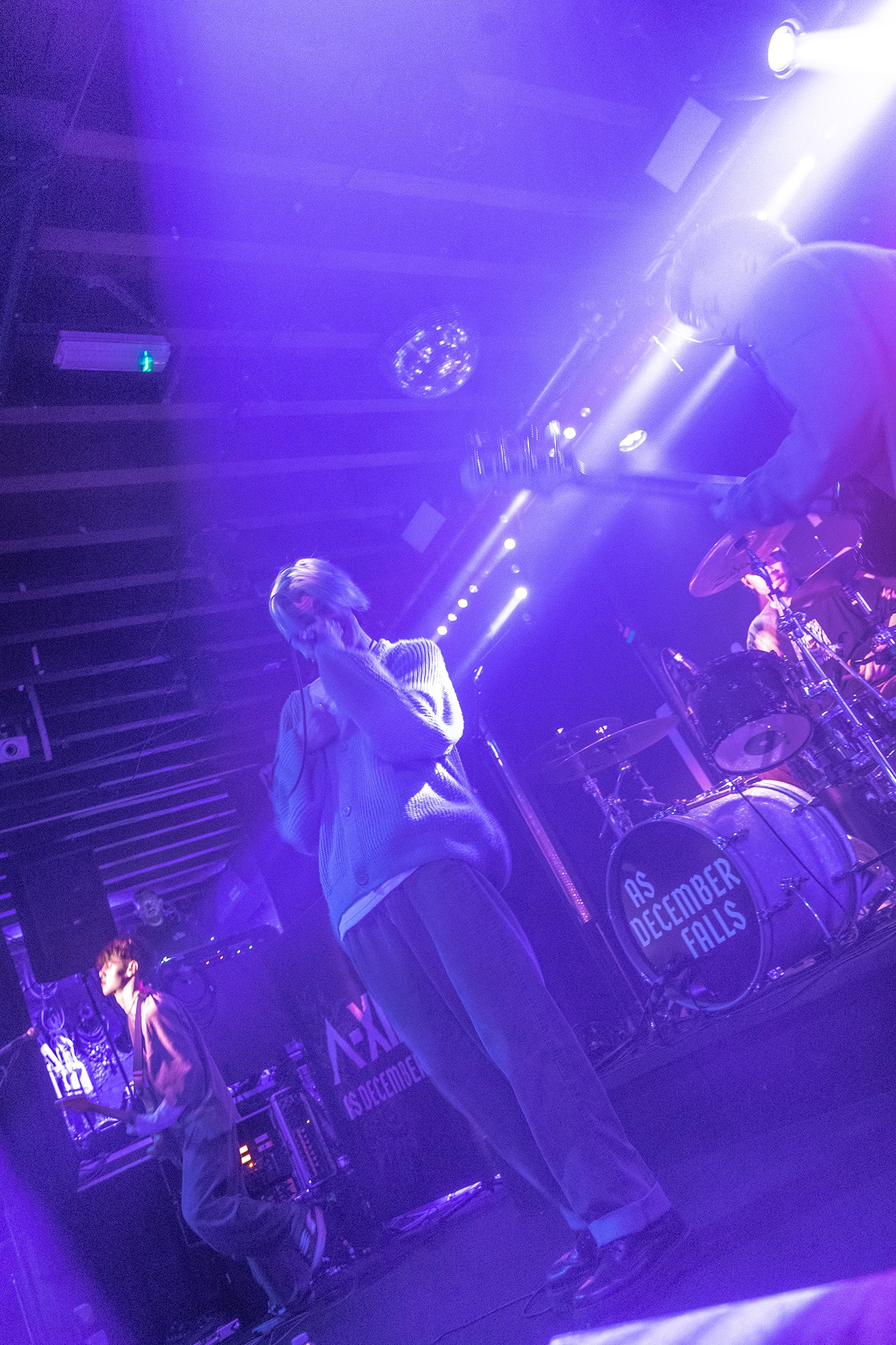 For AS DECEMBER FALLS, this show marks another rise in stature; on every occasion they’ve come to Bristol, the venue they’ve headlined has grown and this is their fourth venture to the city, which is no mean feat. Opening with most recent single Go Away, the response is instant; this room is immediately in the palm of their collective hands and remains that way for the next hour and a half. Afterglow is an obvious following song, being the opening track from last year’s Happier album, but then AS DECEMBER FALLS throw out a massive curveball, covering MY CHEMICAL ROMANCE’s I’m Not Okay (I Promise) to rapturous applause.
