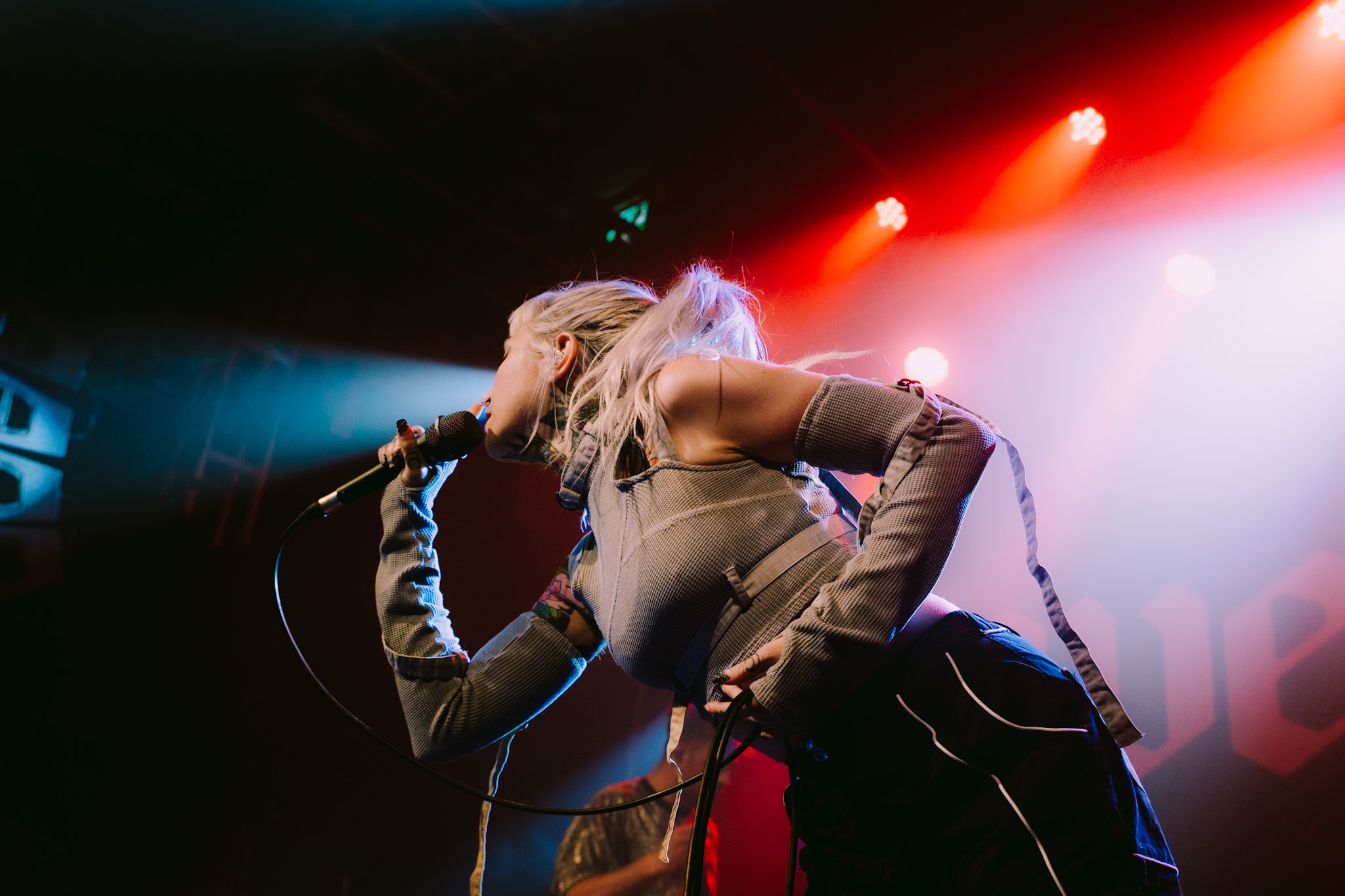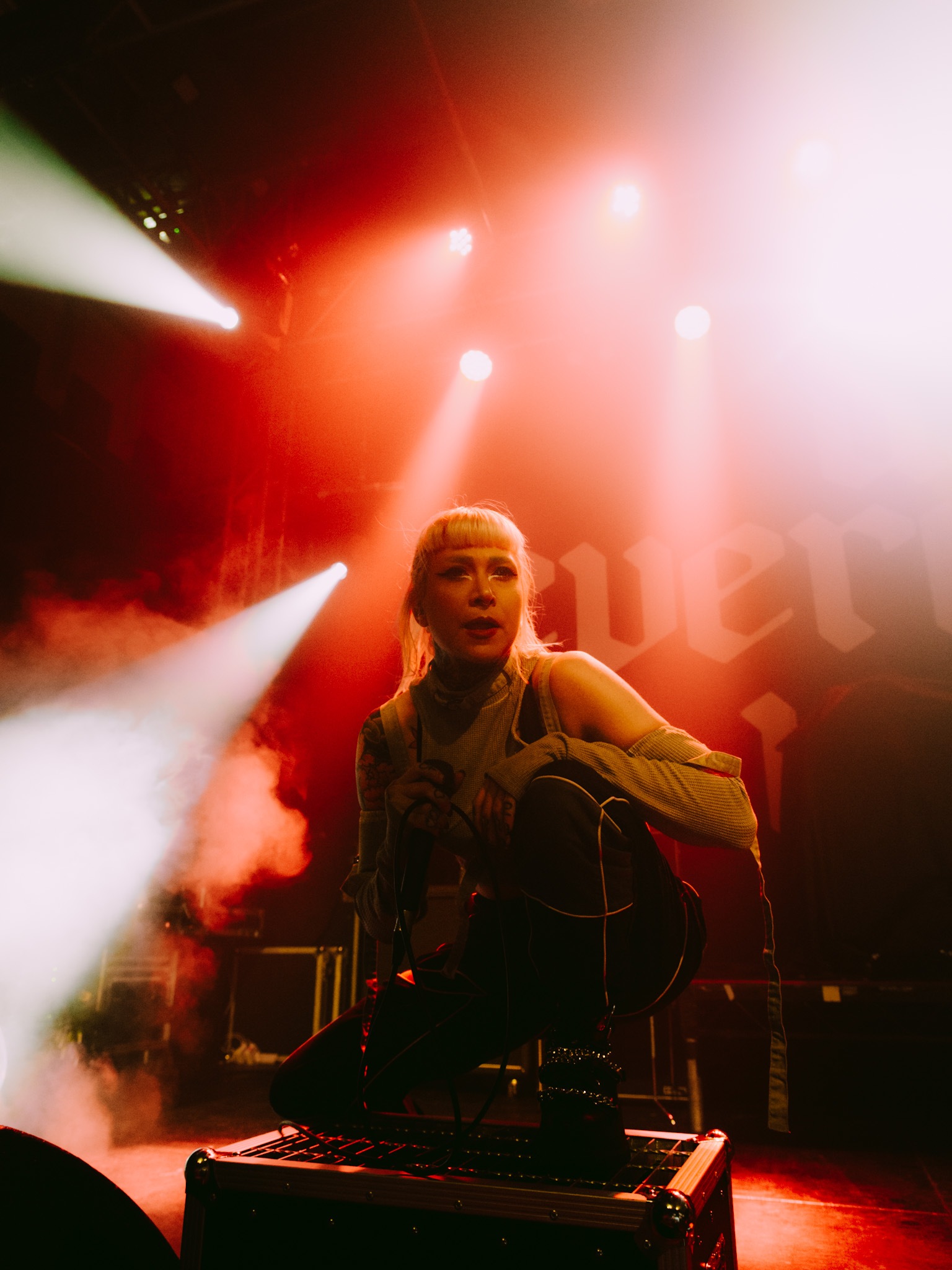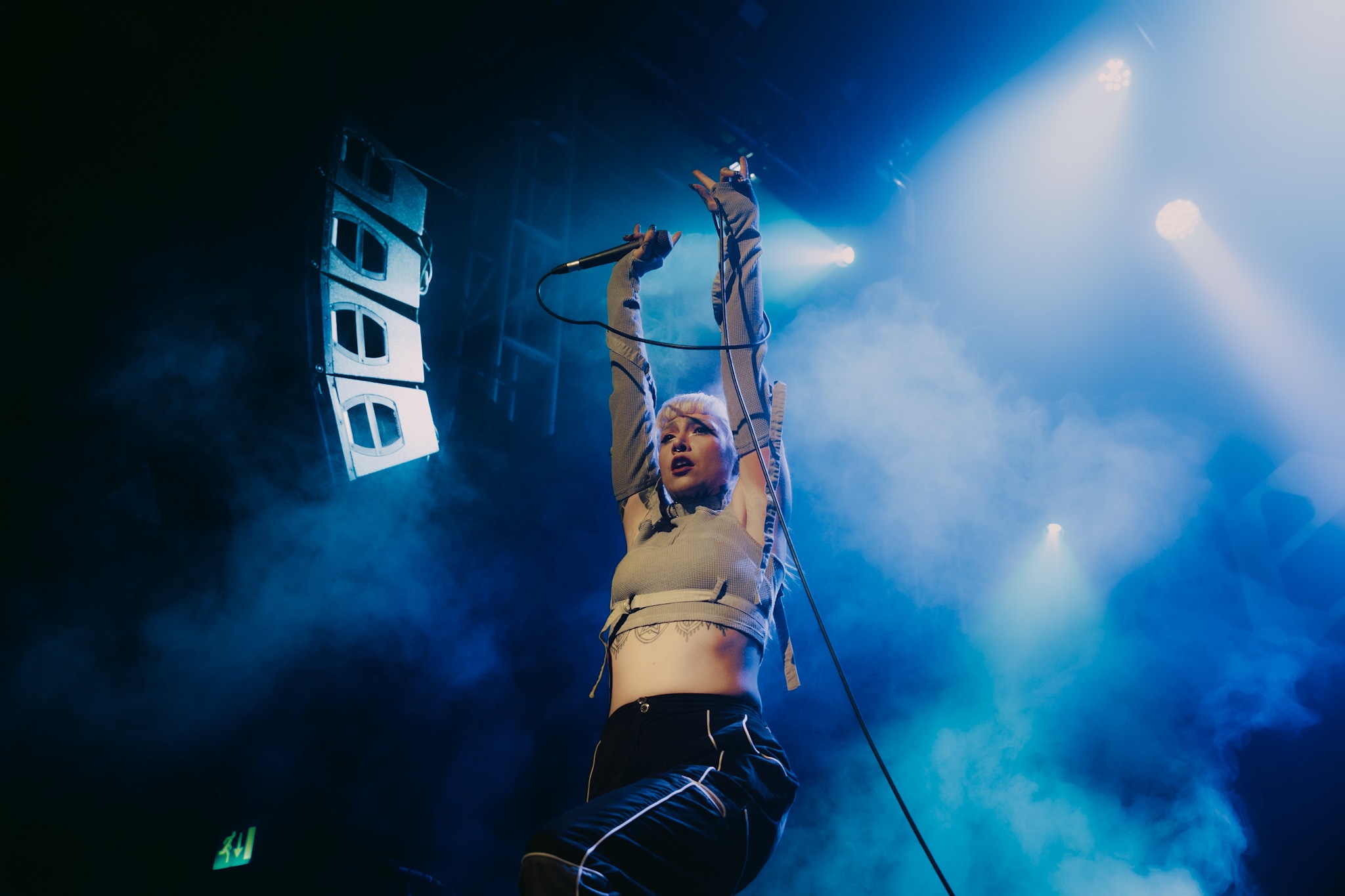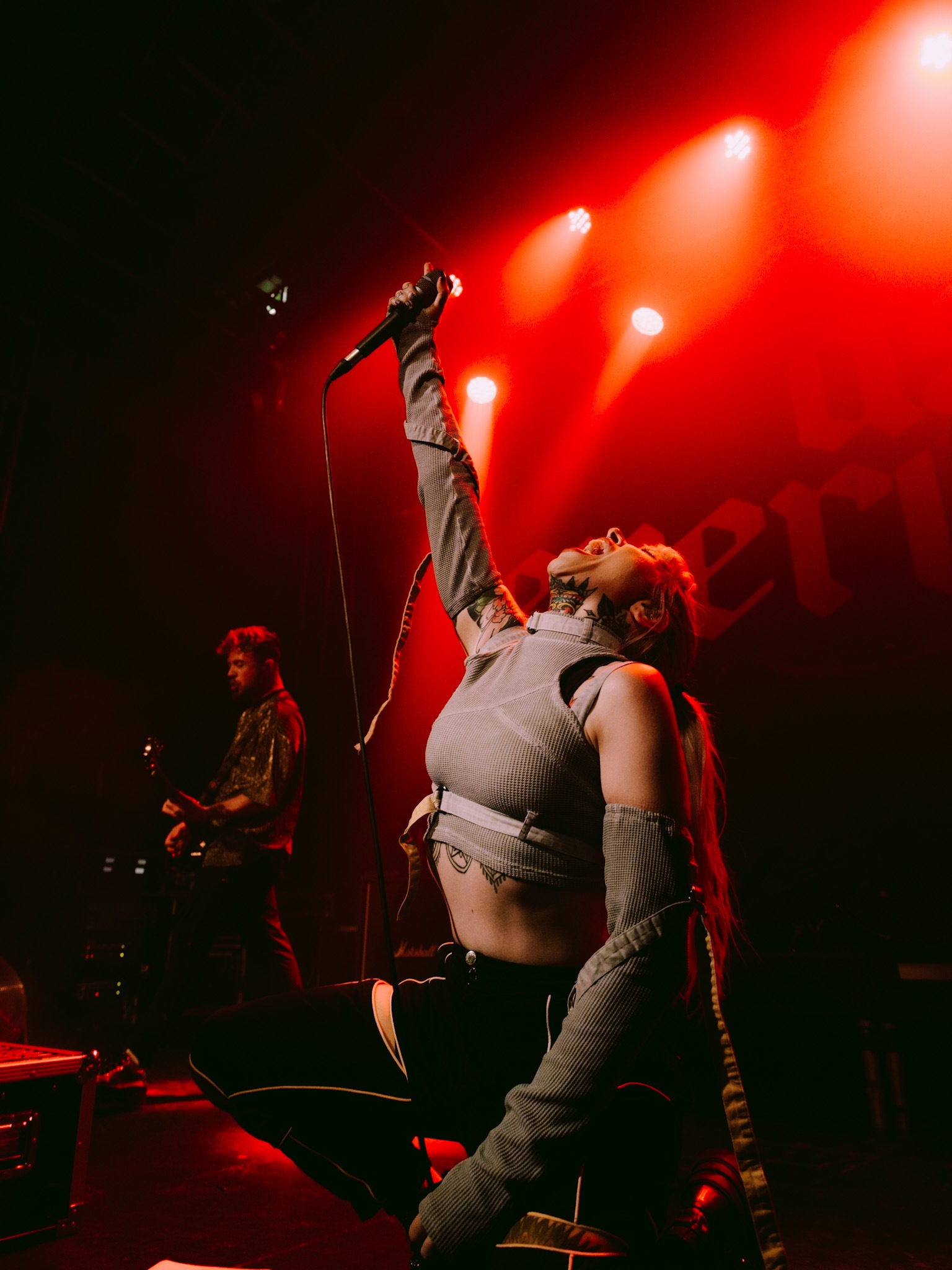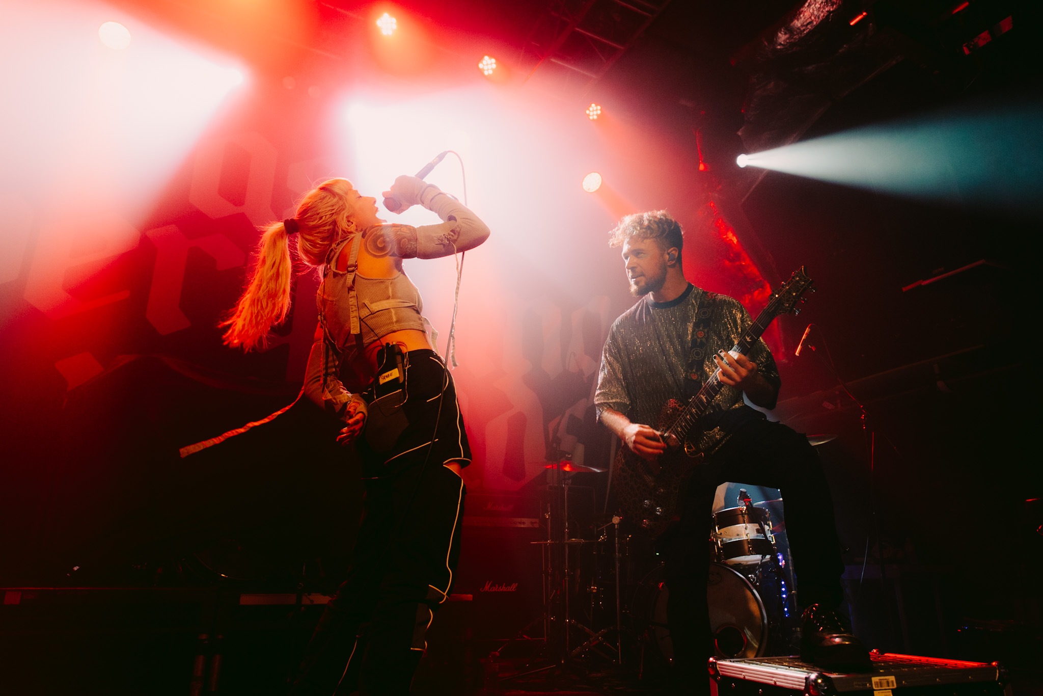 Main support tonight comes in the form of hyper-pop infused duo, LAKE MALICE who were a recent addition to the bill following EAT YOUR HEART OUT’s unfortunate departure from the tour. Formed during the height of COVID, LAKE MALICE are on an upwards incline with vocalist Alice Guala and guitarist Blake Cornwall being no strangers to a sizeable stage such as tonight’s. Launching into Magic Square, the band make it clear they aren’t here to muck around and the crowd; flooded with pockets of adoring fans, are more than happy to oblige. With only a handful of tracks currently under their belt, their thirty minute showcase is both brutal and endearing. Bloodbath and Stop The Party are amongst the favourites of the evening, before closing on their first release Blossom, which continues to age like fine wine. LAKE MALICE are set to be the next big thing and if their current success is anything to go by, they won’t be playing to intimate crowds for much longer. Simply put, show up or miss out.