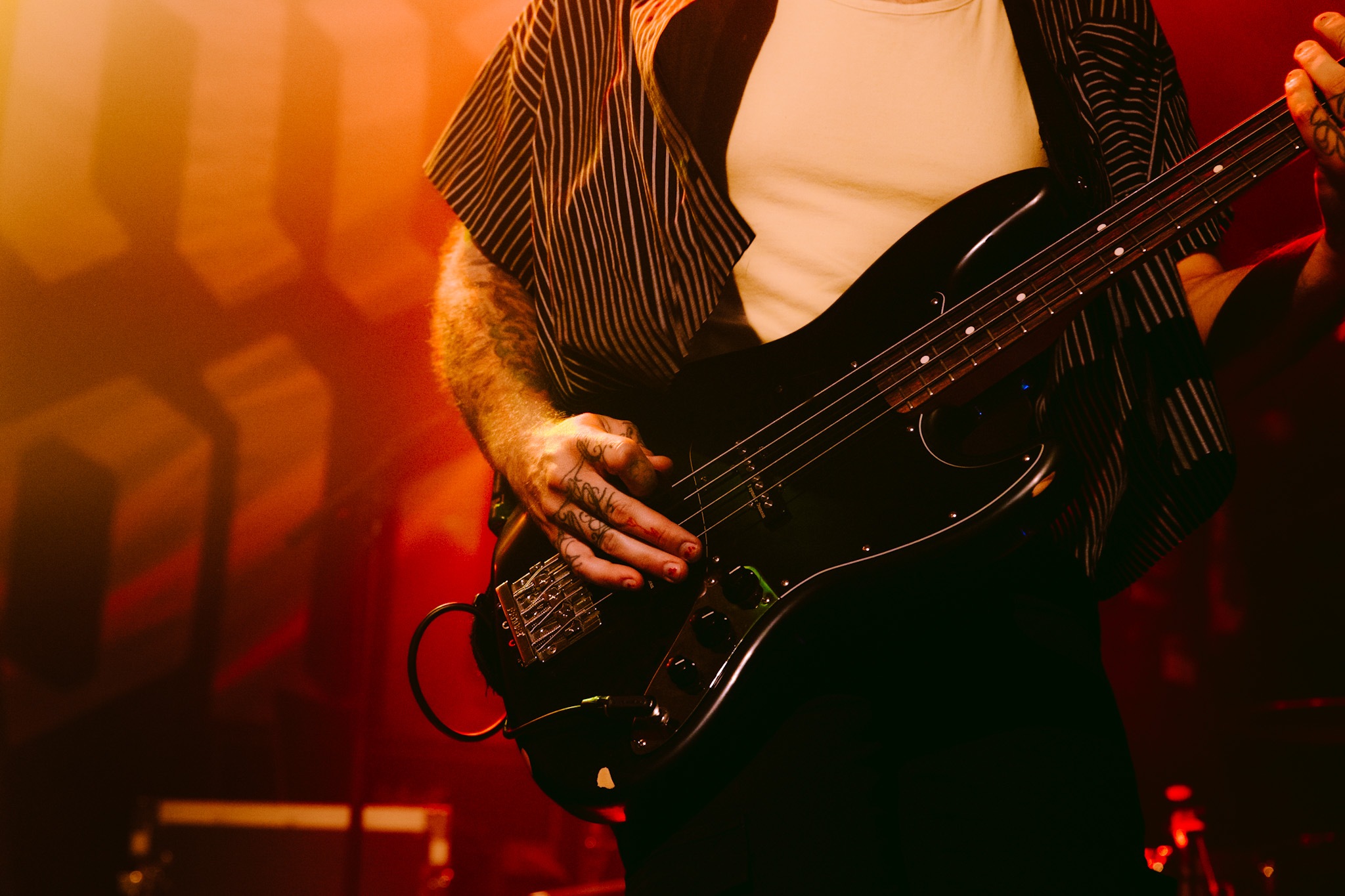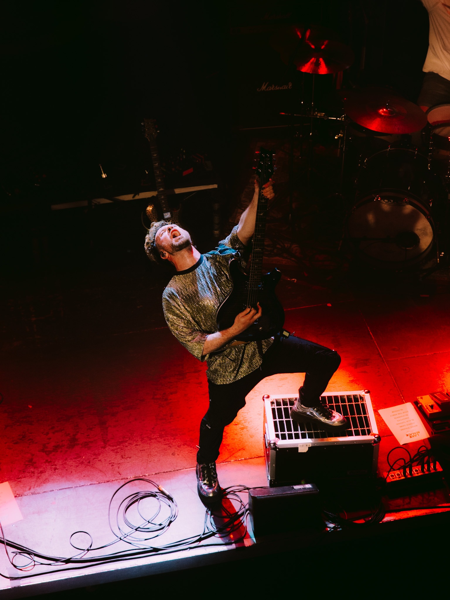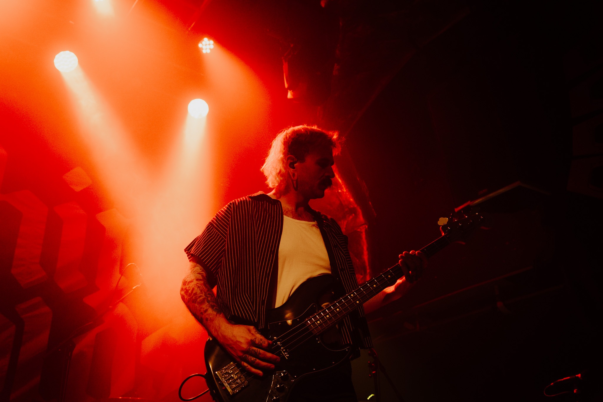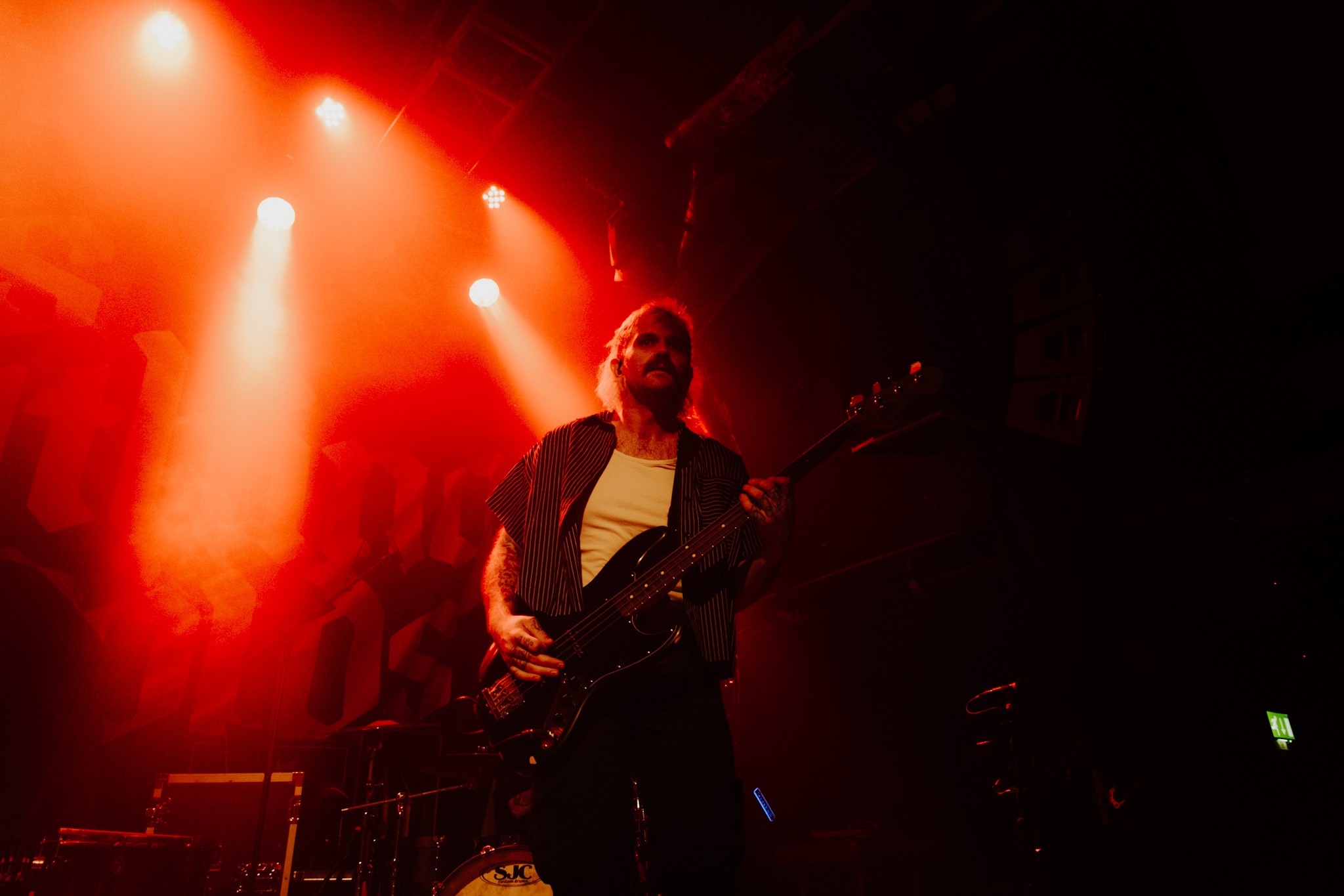 TROPIC GOLD kick off proceedings and deliver a short but punchy performance that gets the room shaking. A few technical difficulties delay the start of their set, but all is soon forgiven. A mere four songs in, and the first crowd surf of the evening takes place – not bad for a bleak Wednesday evening. Spanning through tracks from their forthcoming EP, What A Wonderful Experience, tonight’s gig goers are like putty in their hands – with the whoops and cheers getting louder as their set nears its conclusion.