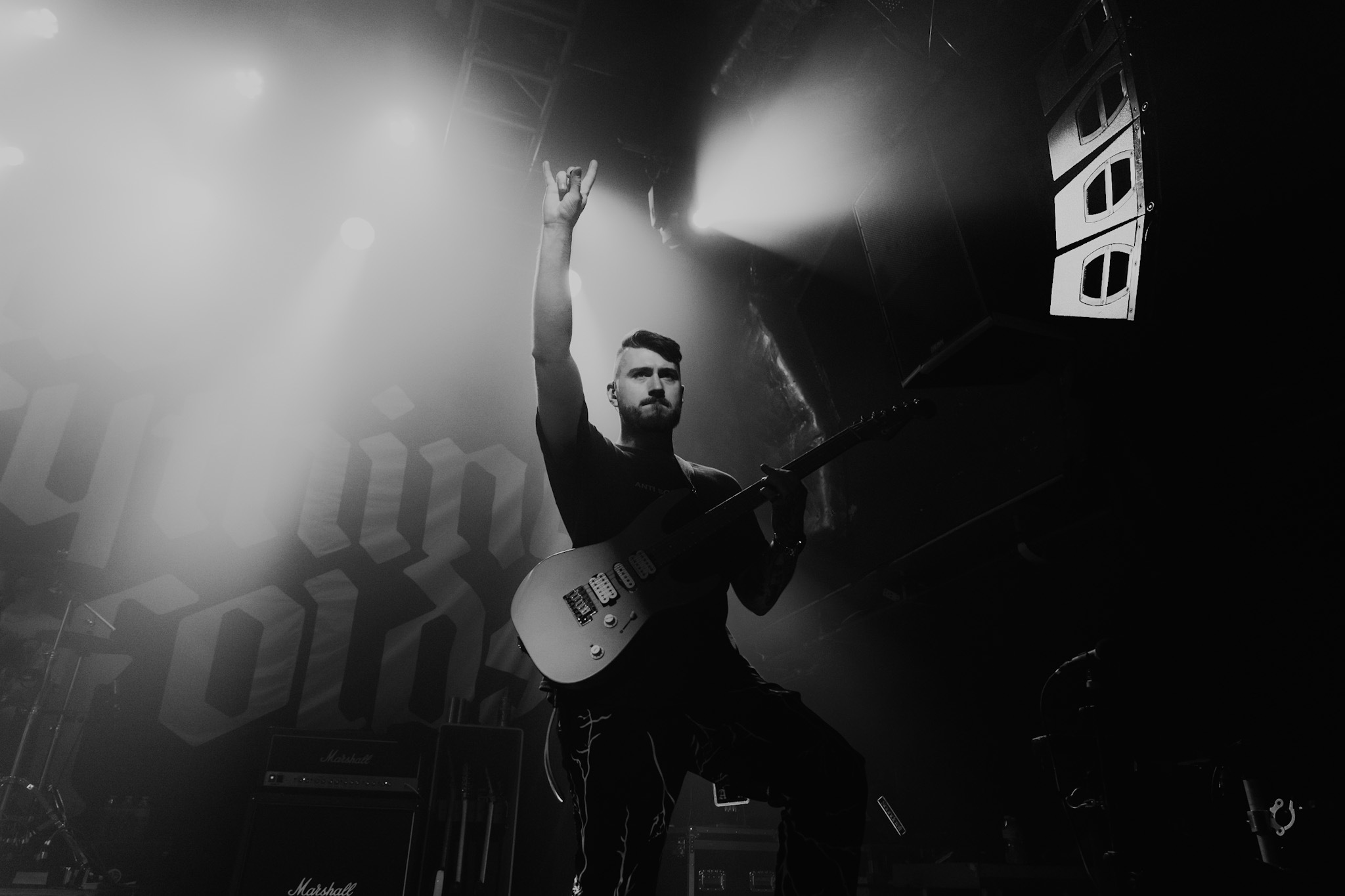 Deafening cheers ricochet the venue’s walls as the lights go down for AS EVERYTHING UNFOLDS who file out onto the Islington Academy’s main stage. Title track, Ultraviolet opens the band’s explosive set – a worthy opener for this era. Charlie Rolfe announces her unfortunate struggle with laryngitis but nevertheless delivers a spine-tingling performance as the powerhouse vocalist she is rightfully known for. With Ultraviolet tracks at the forefront, the band take London by storm and deliver an energetic performance that is nothing short of excellent.