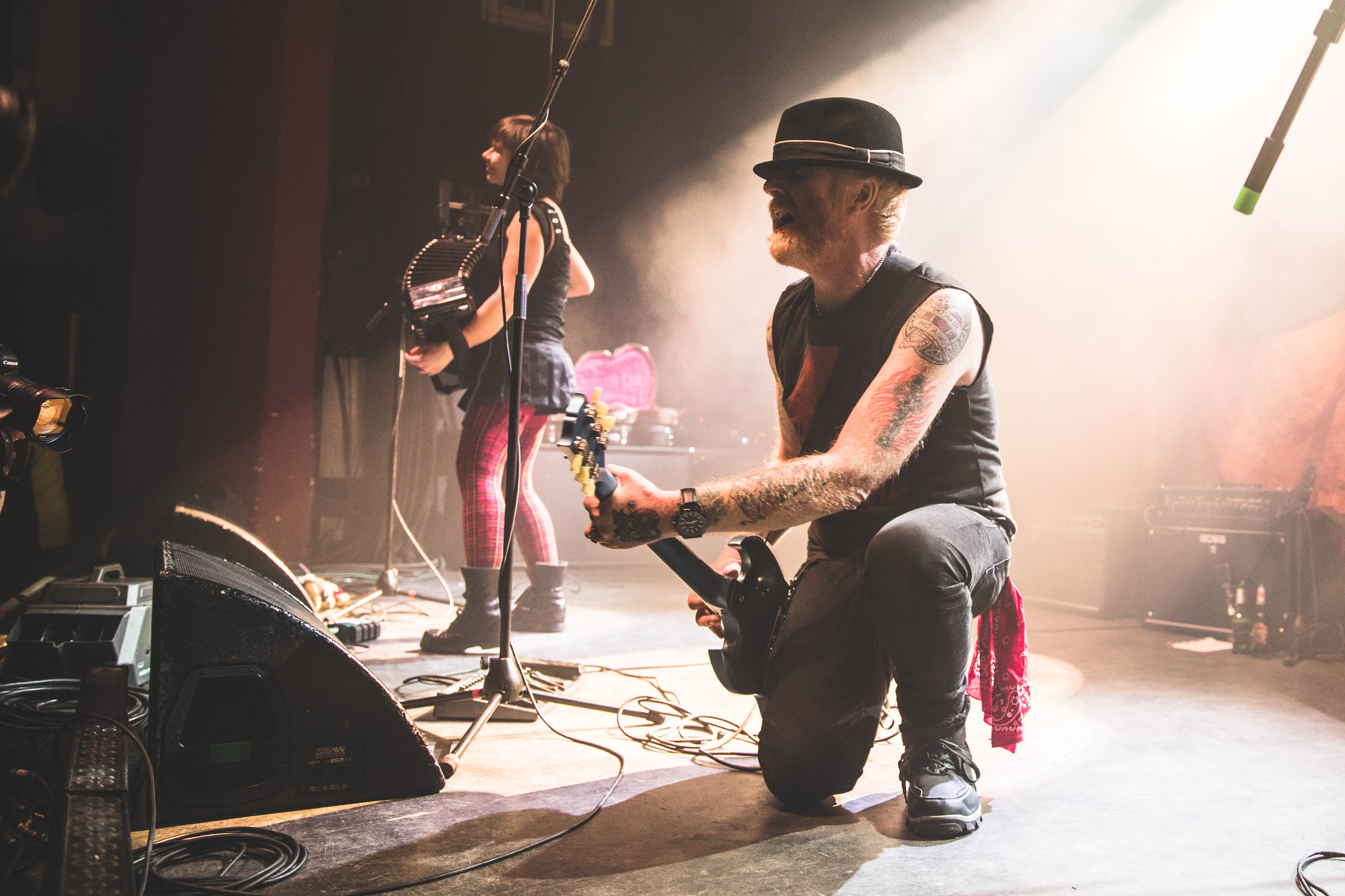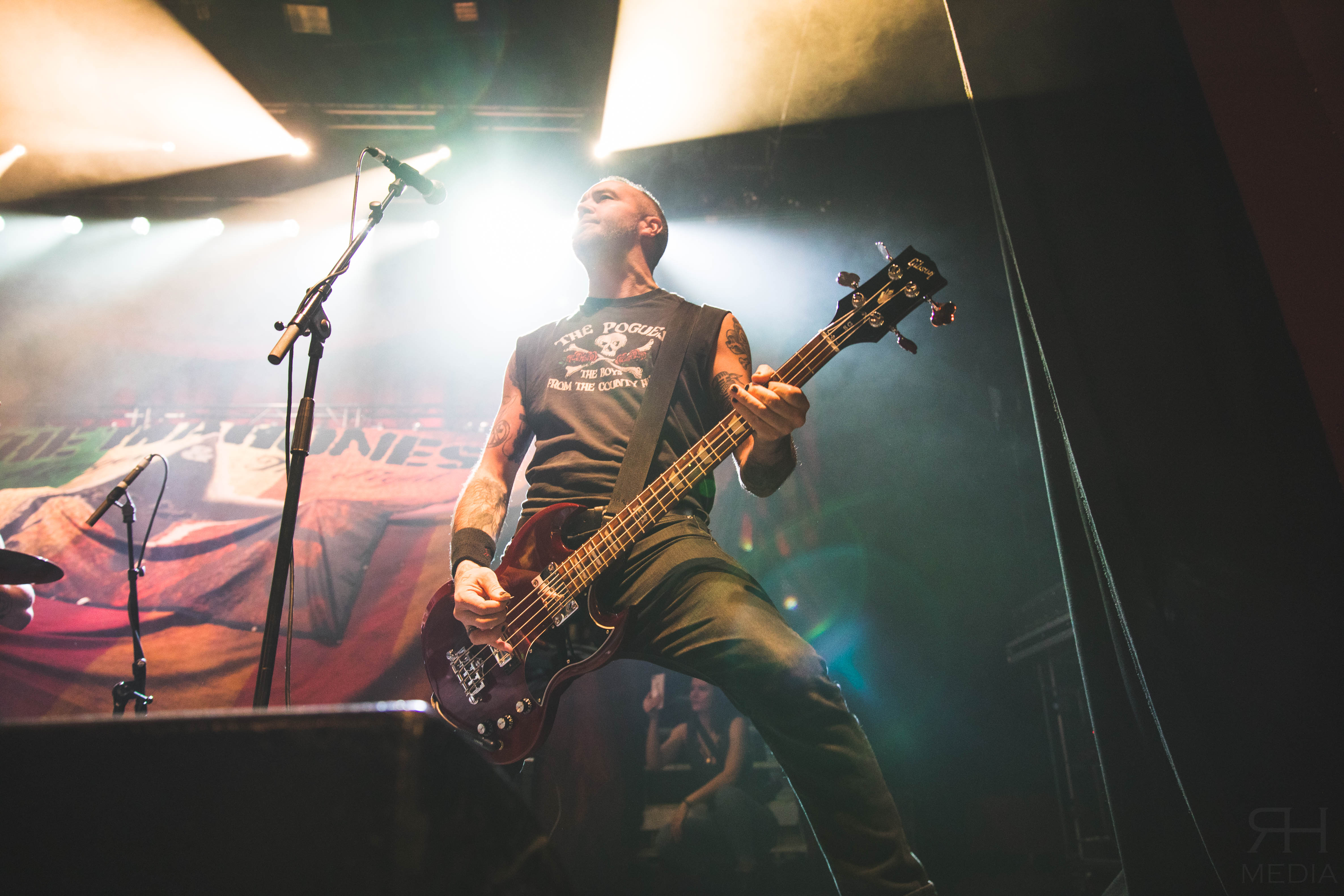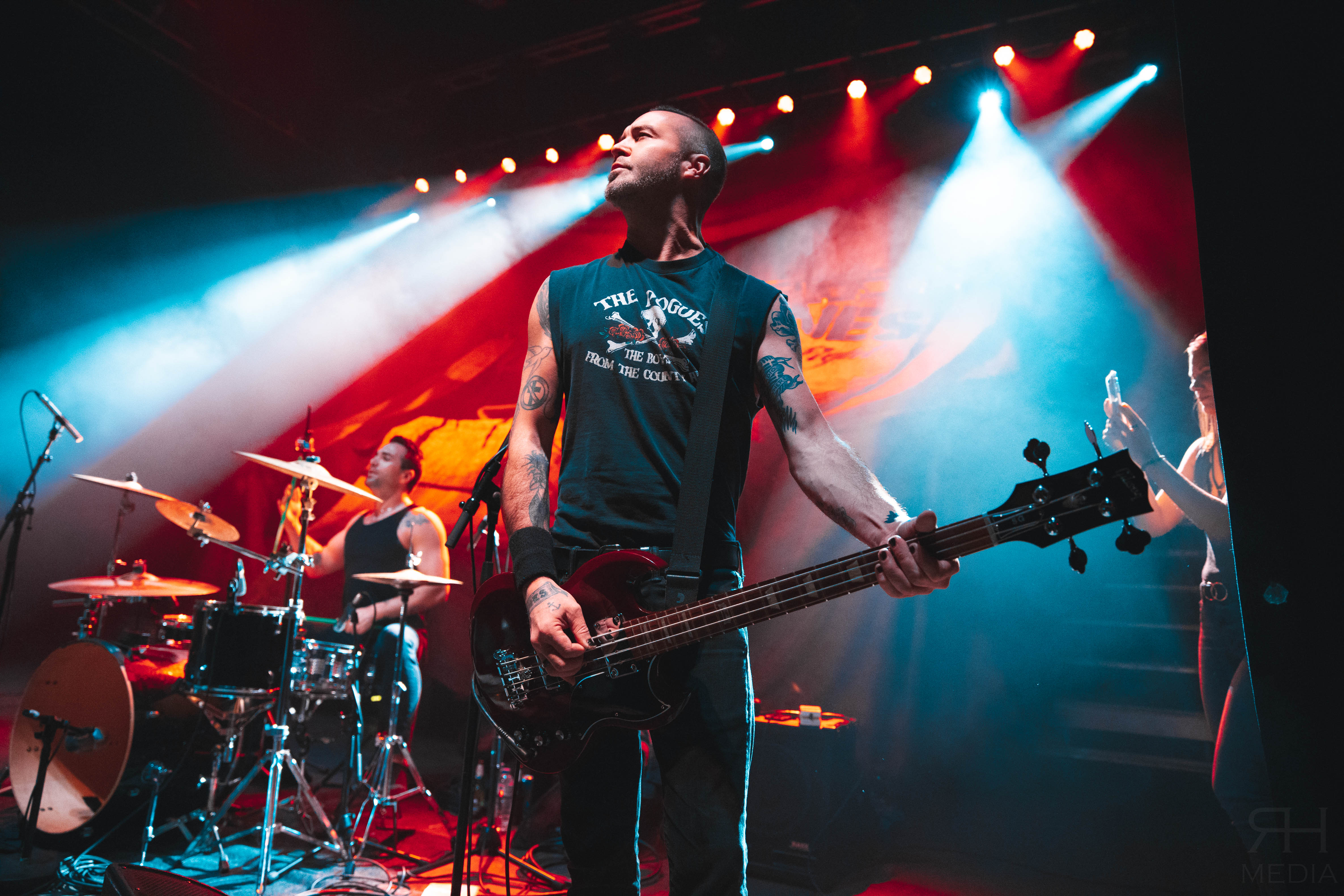 Sadly, THE MAHONES have been plagued by a bad mix coming through the PA, to the point where it’s hard to distinguish when vocalist Finny McConnell is talking to the crowd between songs and when he’s screeching during them. The Toronto via Dublin based punks (self proclaimed The Irish Punk Brigade) play through their raucous, hi-hat driven set, seemingly oblivious to the sound issues. Katy Kaboom‘s accordion and Sean “Riot’ Ryan‘s low end bass parts only just cut in above the scuzz.