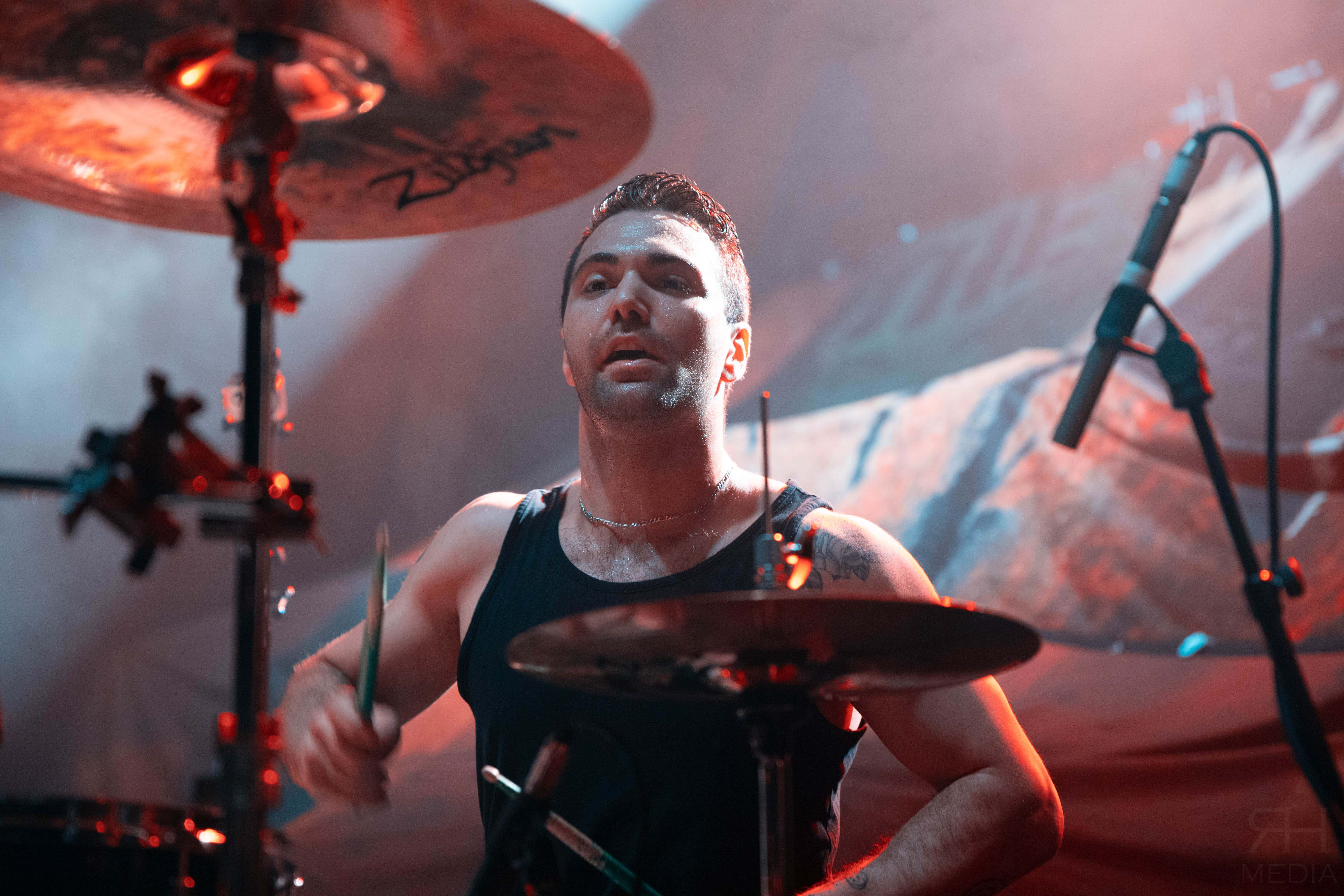 The searing guitar parts in Let It Burn and Bloody Angel drive the show into a huge circus romp. The continuous onslaught of For The Swarm, Get In Line, The Eagle Has Landed and A Statue Of The King only serve to highlight skill and stamina offered by Alfredsson‘s blast beats, hitting his kit so hard it looks like his head is about to fall off. He’s easily matched by the bass and guitar sections, who are exceedingly heavy one moment and melodically playful the next. It’s not until AVATAR land on more hard-rock efforts Paint Me Red and King After King that their dynamism kicks in to shake up the pace; offering a brief break at times from the ceaseless synchronised wind-milling.