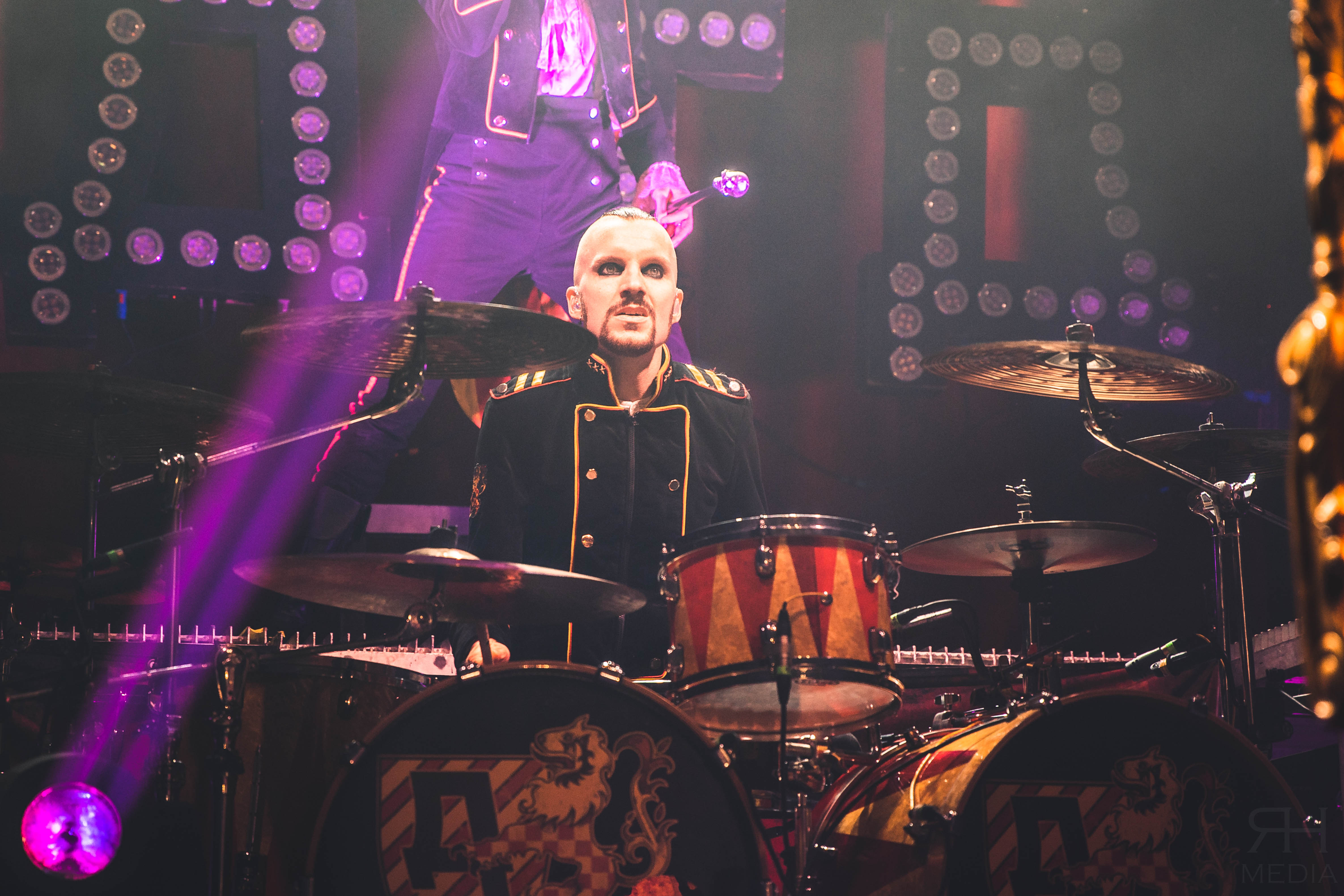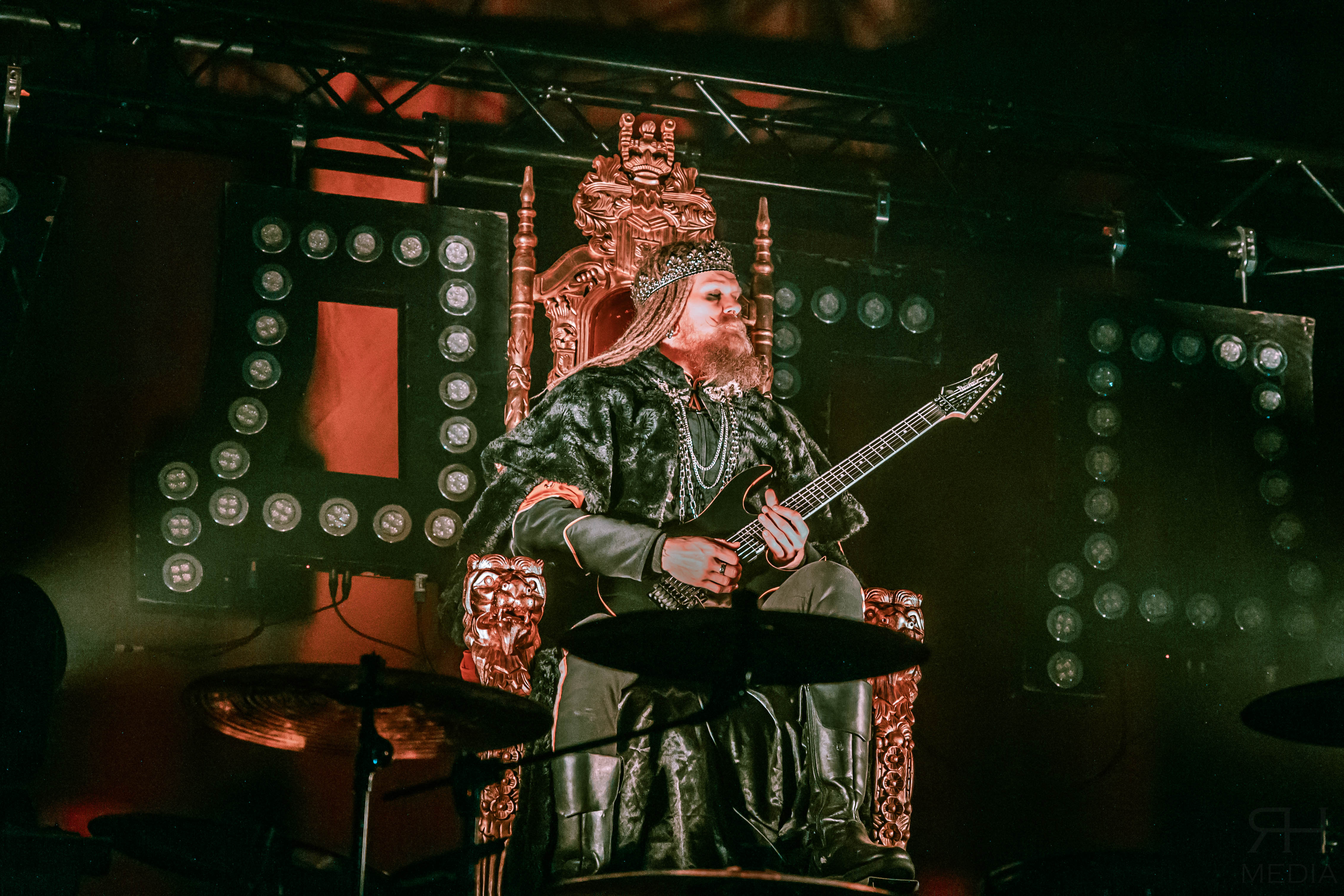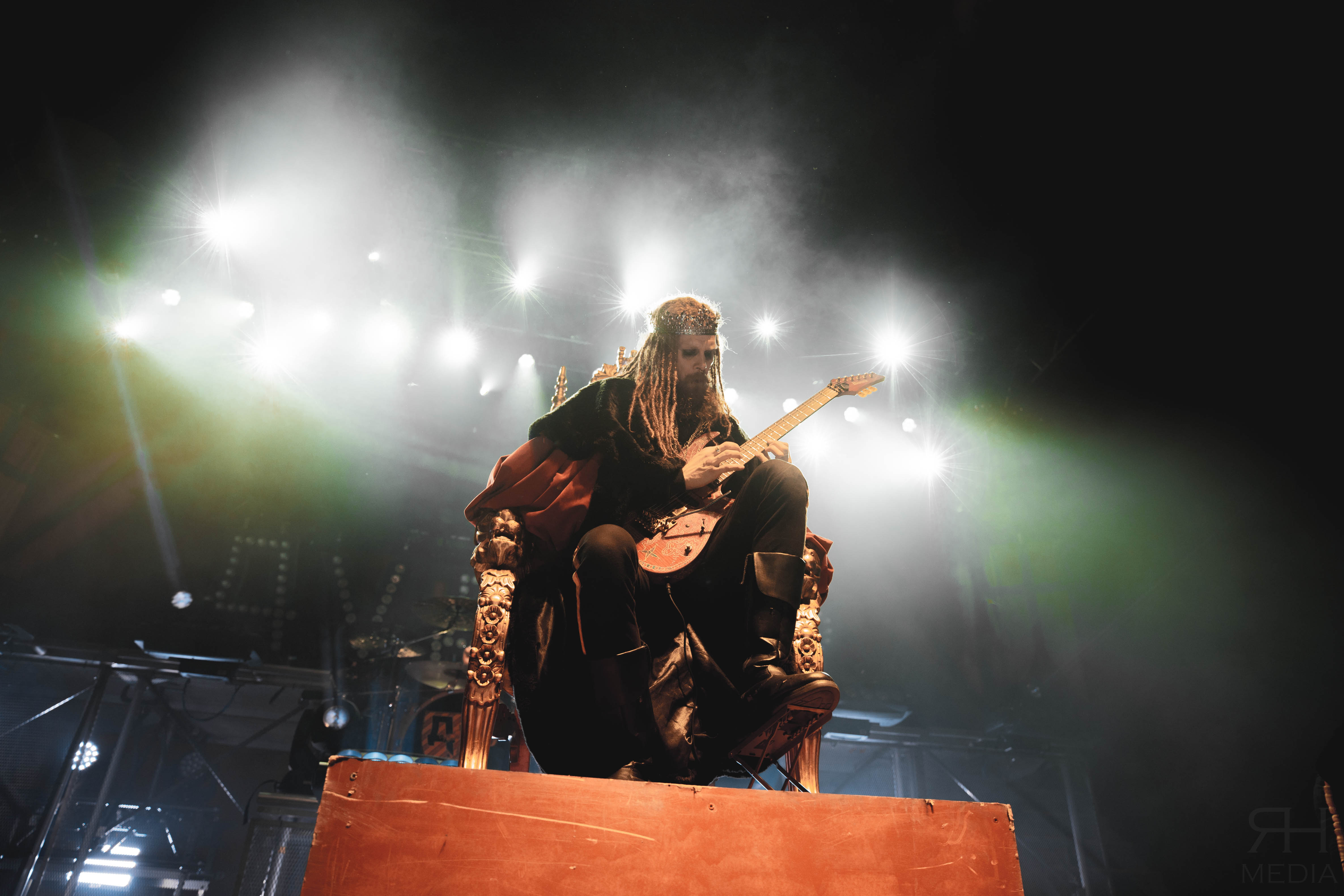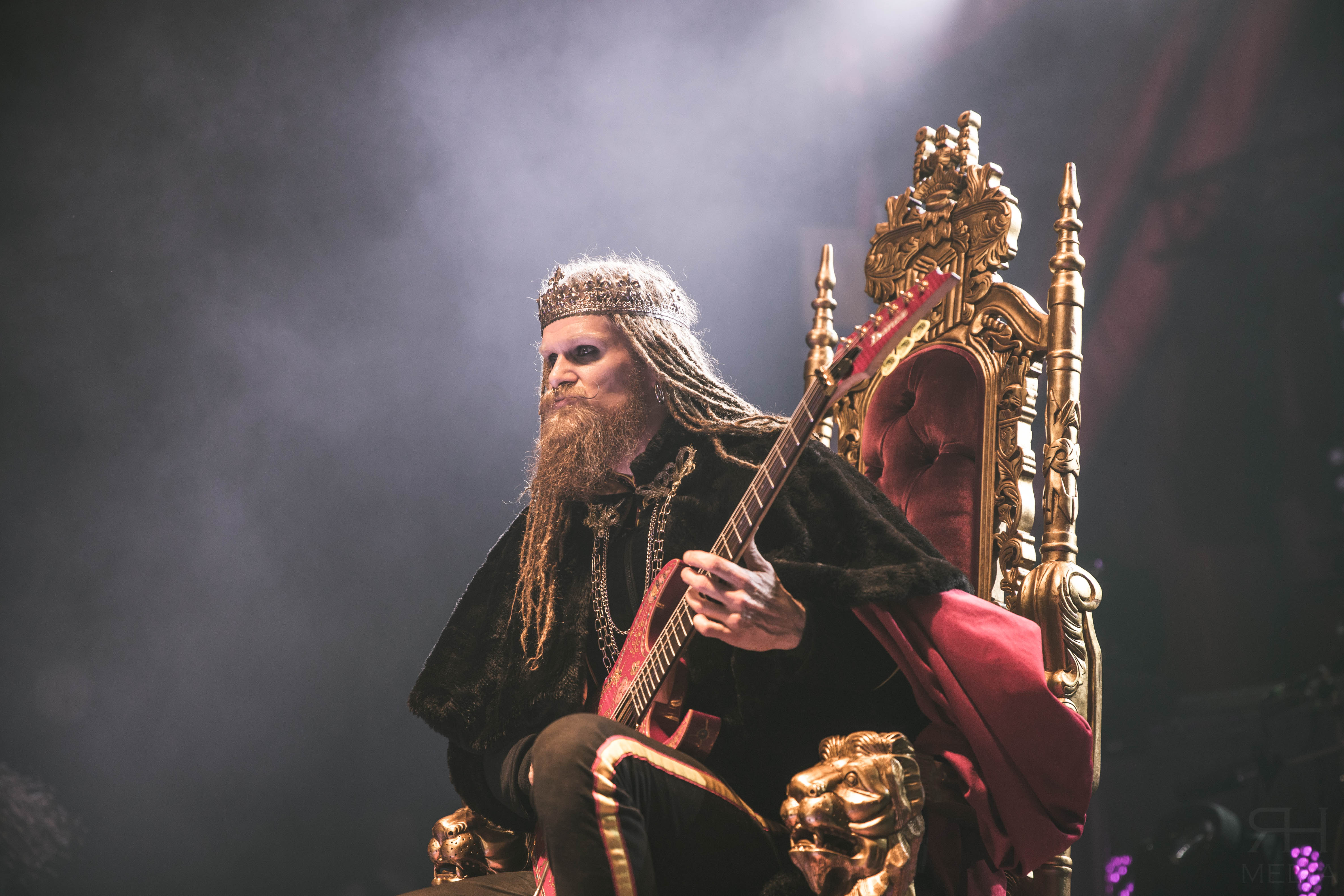 Jarlsby looms above drummer John Alfredsson on a hydraulic throne, grinding away at dizzying riffs; death staring the audience into submission who are already lost in mindless oblivion. Led by the ever-charismatic Johannes Eckerström, whose role as court jester, commander, ring-leader and recruiter to their royal cause — steals the show from any other theatrics on display as he stomps around the stage. Committing acts of tomfoolery on his band-mates, with the largest menacing grin spread across his painted face, his guttural growls and alluring cleans are devilishly precise in setting the fictitious scene.