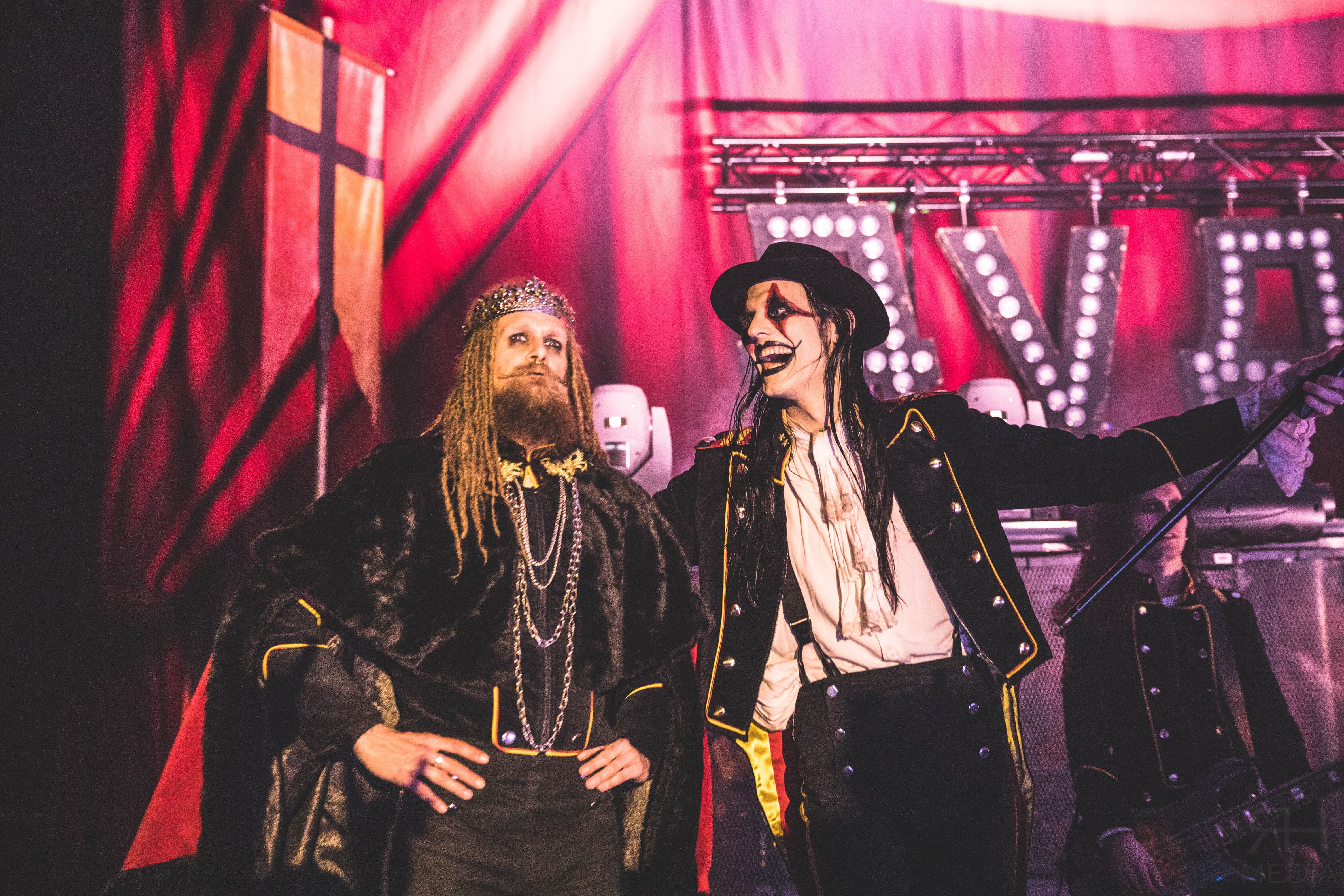 Having spent the best part of a decade and a half mastering their grandeur and pomp on record, it comes as no surprise that as soon as AVATAR royally announce their arrival at the first carnivalesque trumpet of Glory To Our King, those lucky enough to be in standing erupt into a frenzied melee. Conceptualising their latest full-length Avatar Country around the mysterious and spectral character of The King (assimilated by guitarist Jonas Jarlsby), AVATAR’s spectacular stage show is delivered with no expenses or creativity spared.