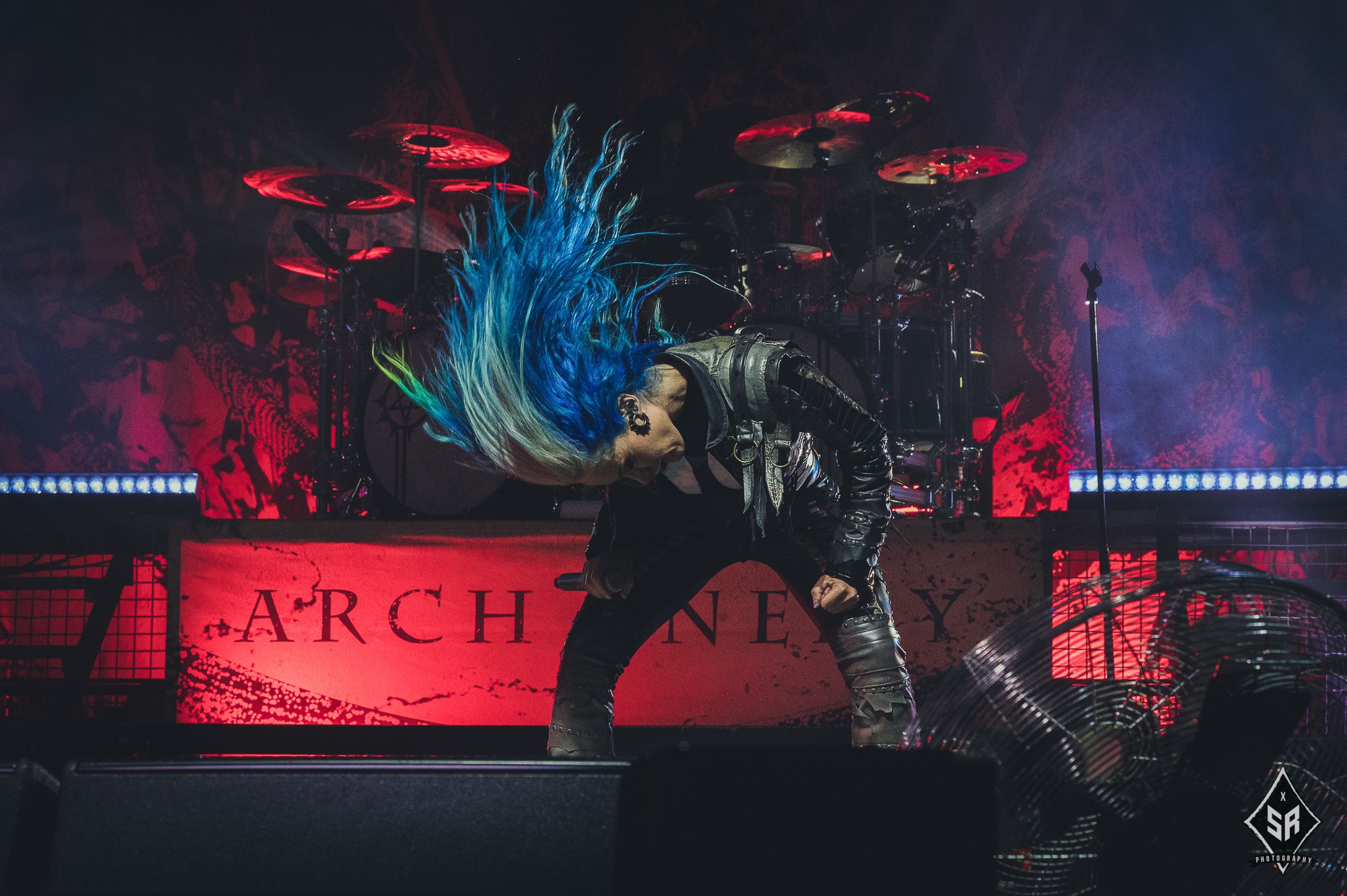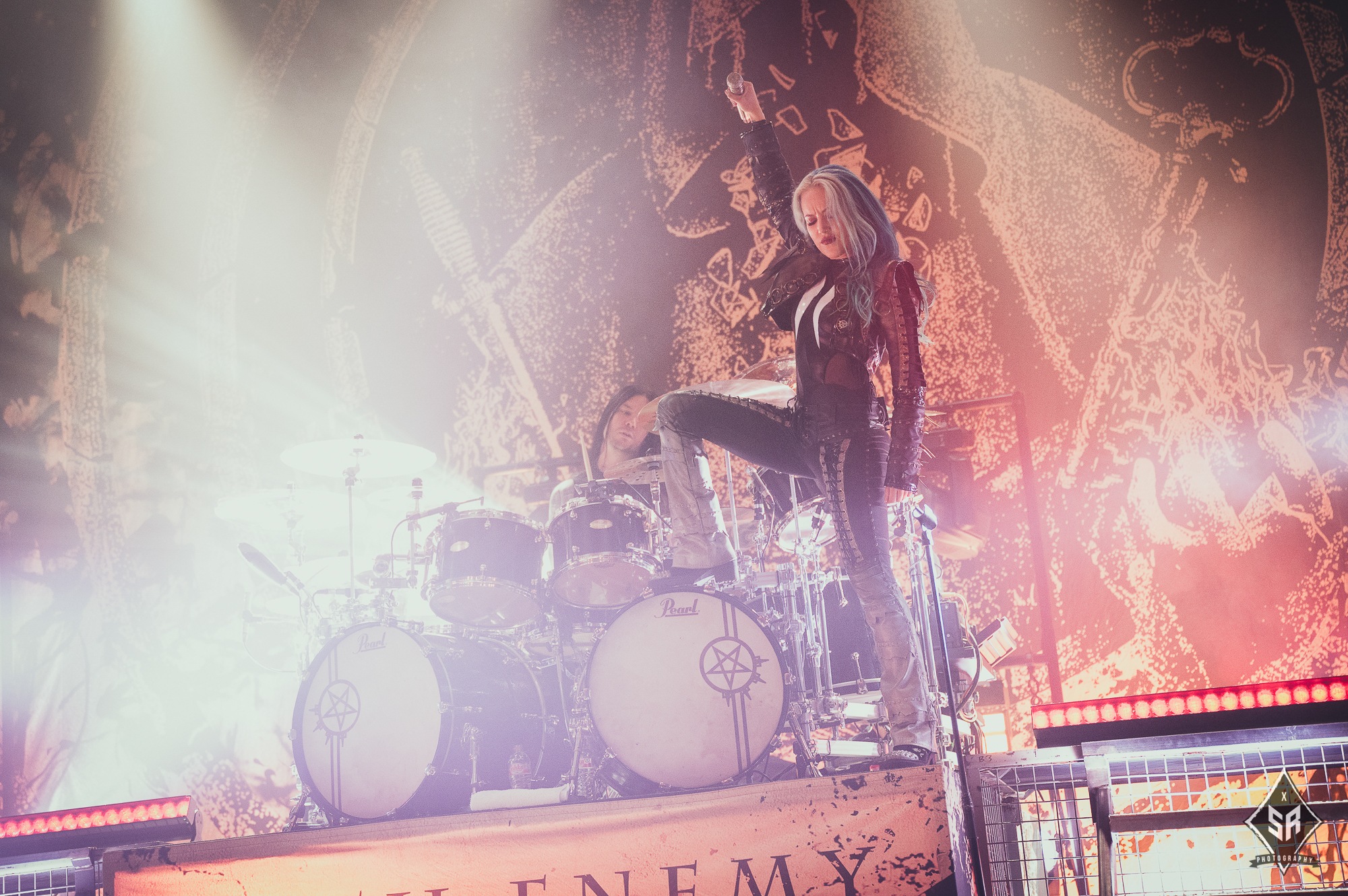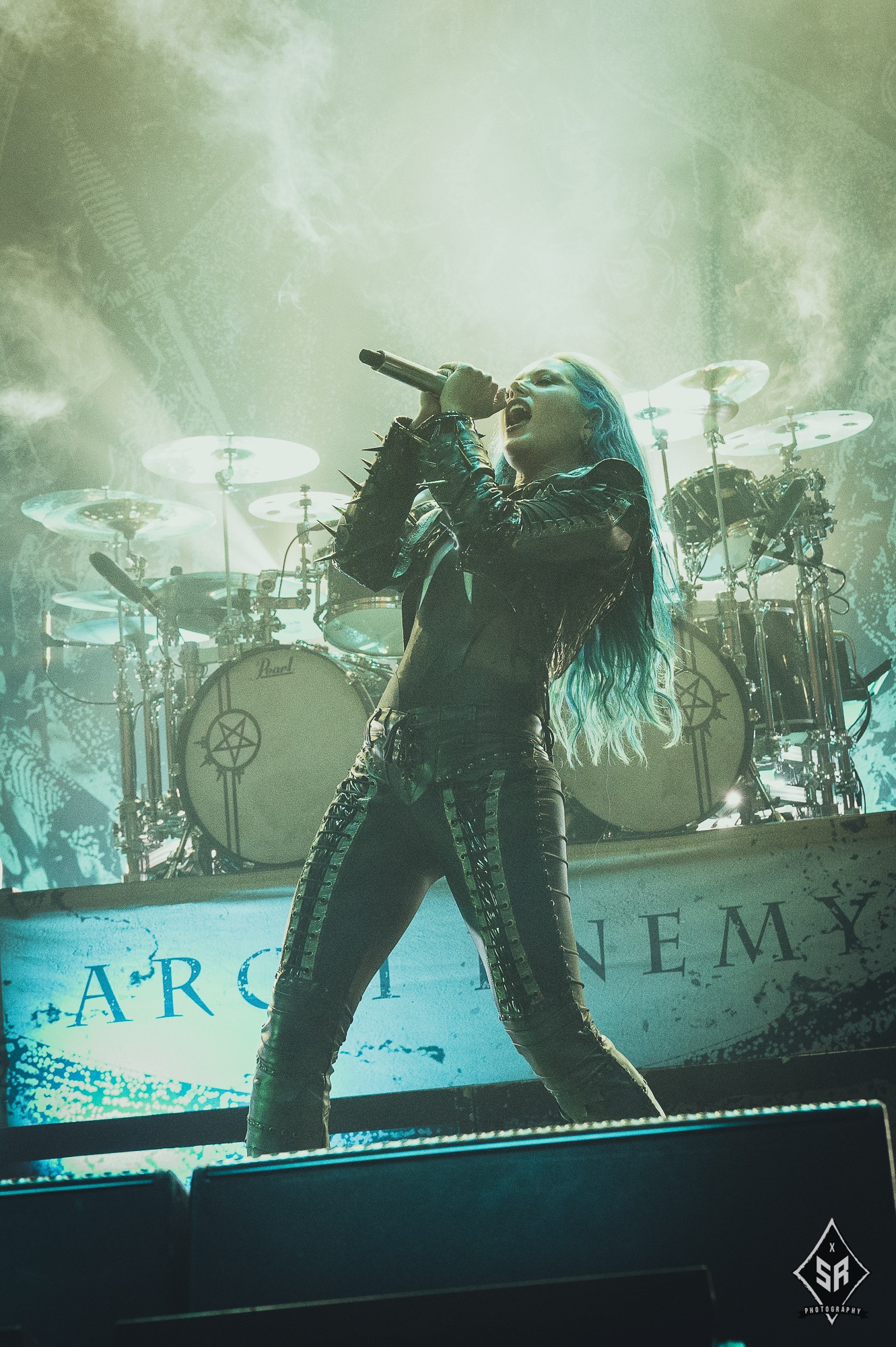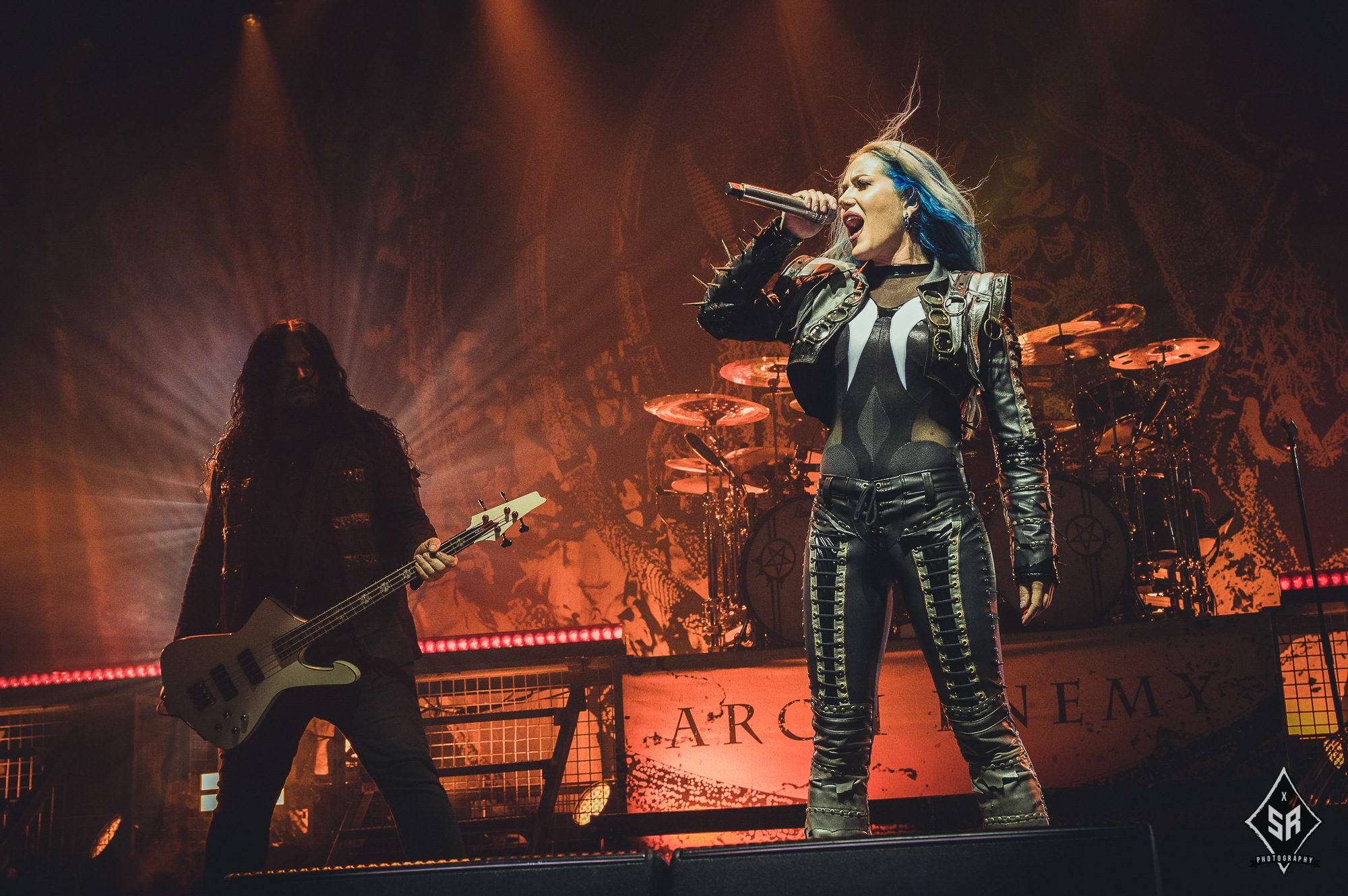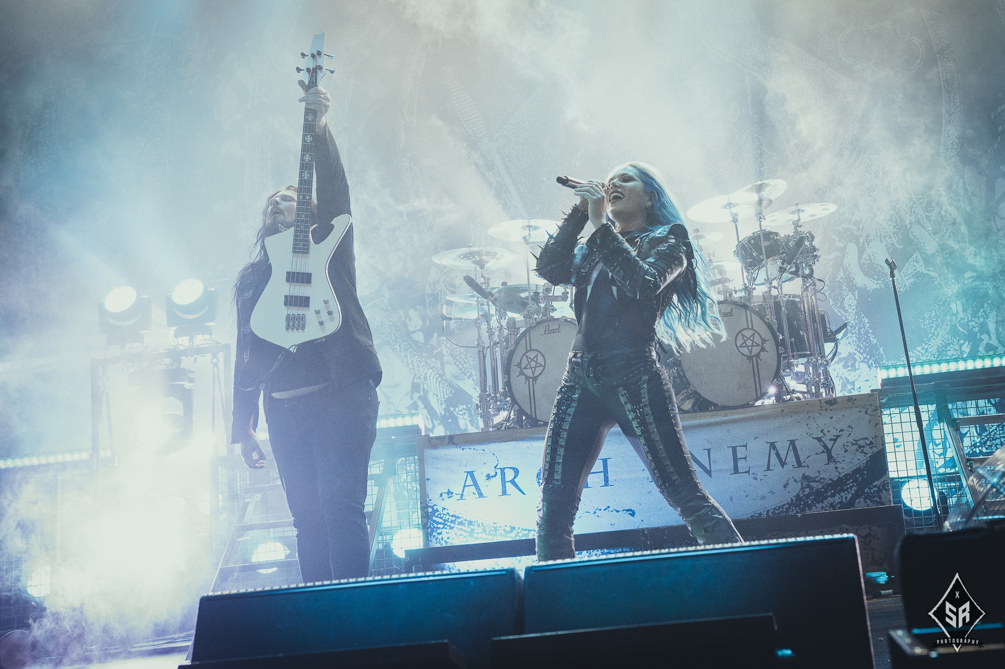 For nearly three decades, ARCH ENEMY have been one of the more mainstream appealing bands within metal, largely thanks to their aurally pleasing riffage and powerhouse vocals from ex-vocalist Angela Gossow and current frontwoman Alissa White-Gluz. Riding high on the momentum of long-awaited new record, Deceivers, in Manchester, the band roar out the gates in a one-two punch of Deceiver, Deceiver and the groove-laden War Eternal and the crowd are stunned as White-Gluz and co. pull no punches.