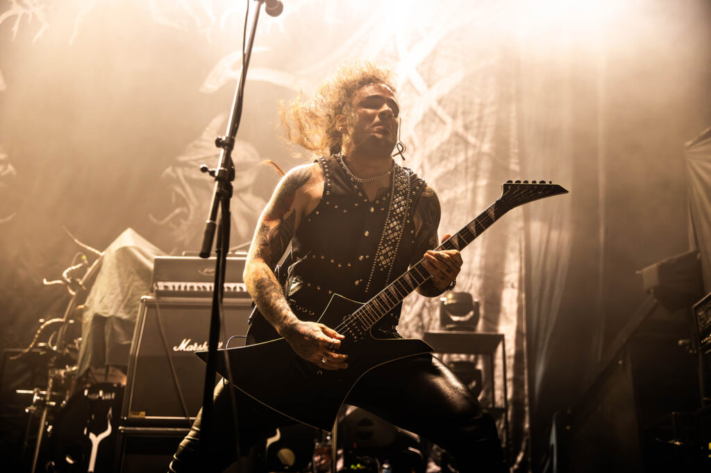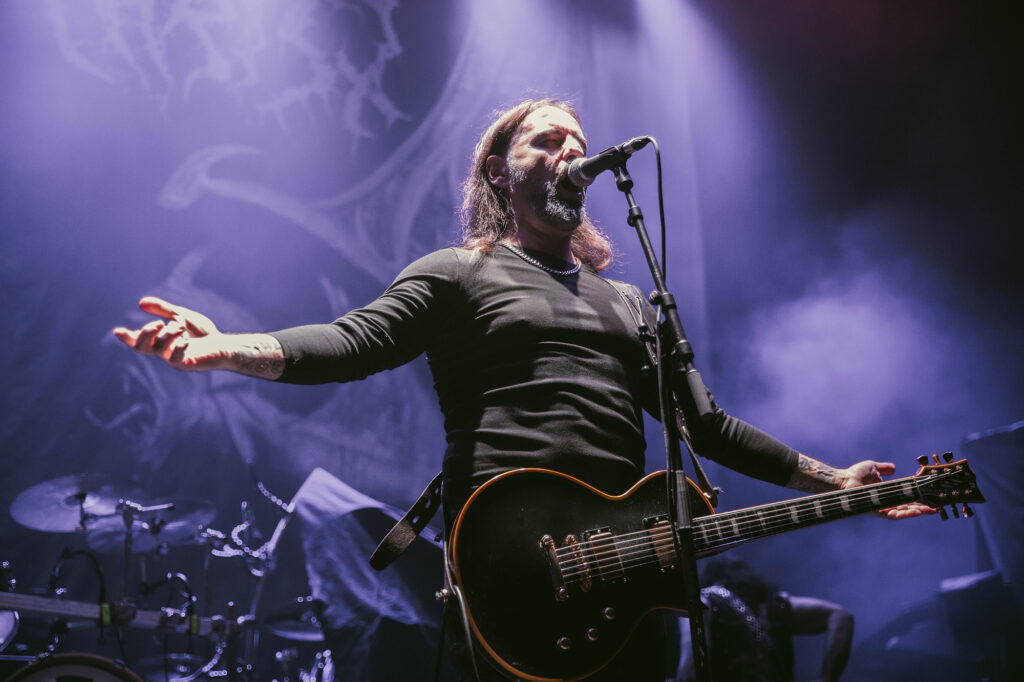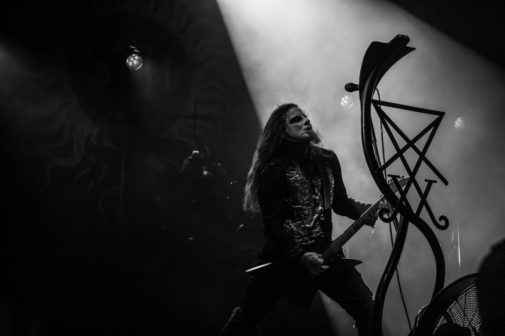 A black metal show of grand scales would not be complete without representation from Norway. Tonight, it fittingly comes from a band who was among those who first planted the seeds and kept them watered over the years, contributing to its rising stature. Returning to the UK for their first non-festival show in eight years, SATYRICON are jubilantly received by the masses. Satyr, Frost and their crew of backing musicians go back to basics with three tremolo-picked power chords and the truth, via bona fide hits of black-n-roll such as Now, Diabolical and Black Crow On A Tombstone. The staging is spartan, chiming with the straightforward direction of their music. Songs from SATYRICONās mid-noughties black ānā roll era may have been controversial at the time, but theyāve aged beautifully – The Pentagram Burns (for which Satyr dons an extra guitar) in particular sounding positively arena-ready. The closing duo consists of two unsurprising, but most welcome classics – the majestic Mother North, followed by the insistent earworm that is K.I.N.G.. SATYRICON may not tour anywhere near as much as their colleagues, but you wouldnāt know it from their craftful display tonight, proving that they remain a relevant and influential voice in black metal.