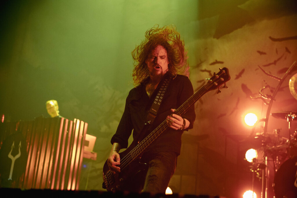 No band has done more in the last two decades to continuously level up the scale and production value of extreme metal than BEHEMOTH, and tonight, as always, they are on a mission to best themselves again. Just as the ominous chords of new song The Shadow Elite give way to an explosion of ferocious tremolo riffing, a curtain drops to reveal the Polish theatrical mastersā elaborate staging. The trio of guitarists begin the night fixed on individual carpets with occult inscriptions, but multiple podiums and stairwells allow Nergal and co. to roam free. Drummer Inferno is located on a giant platform in a neighbouring postcode, making full use of Europeās biggest fixed stage to the max.