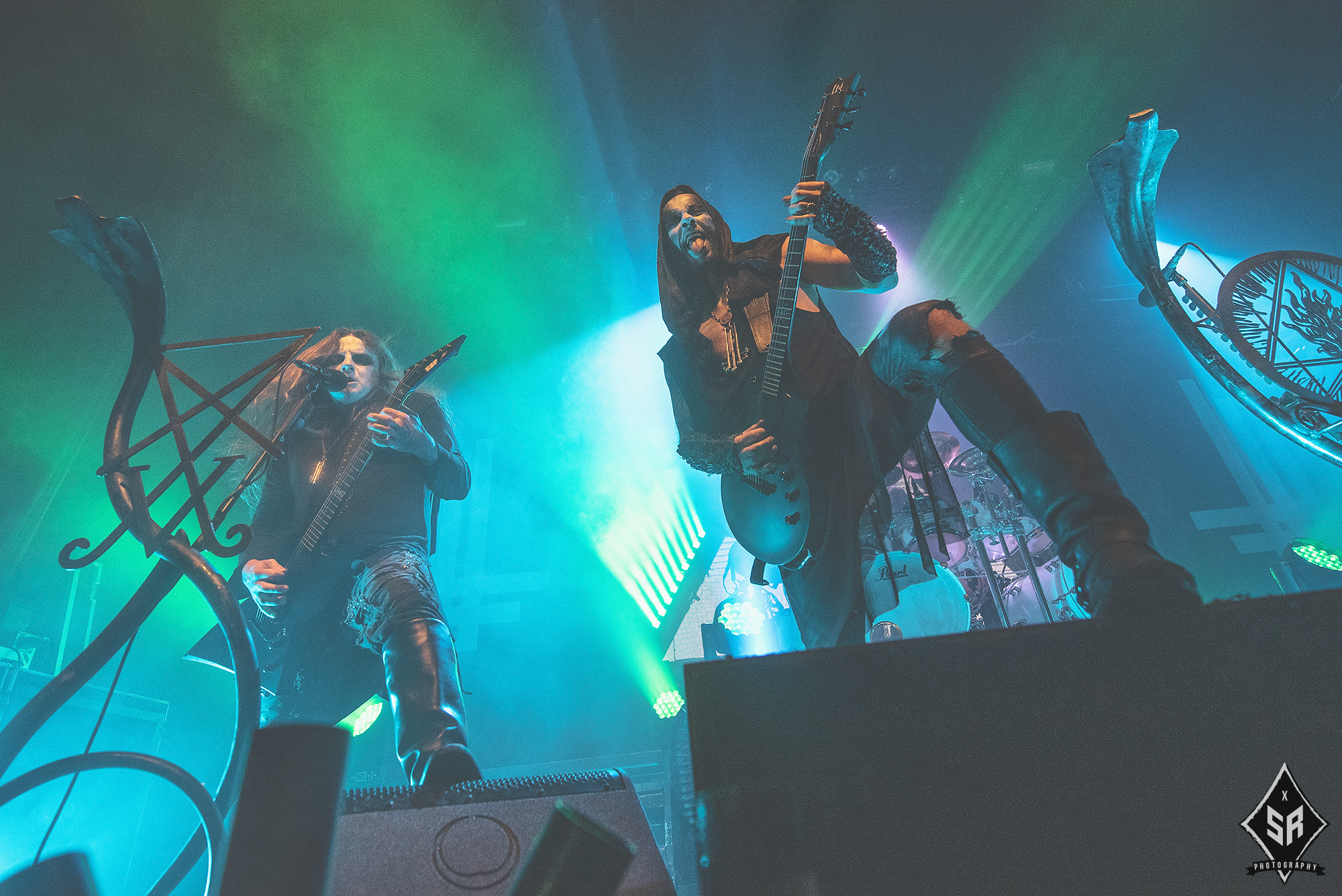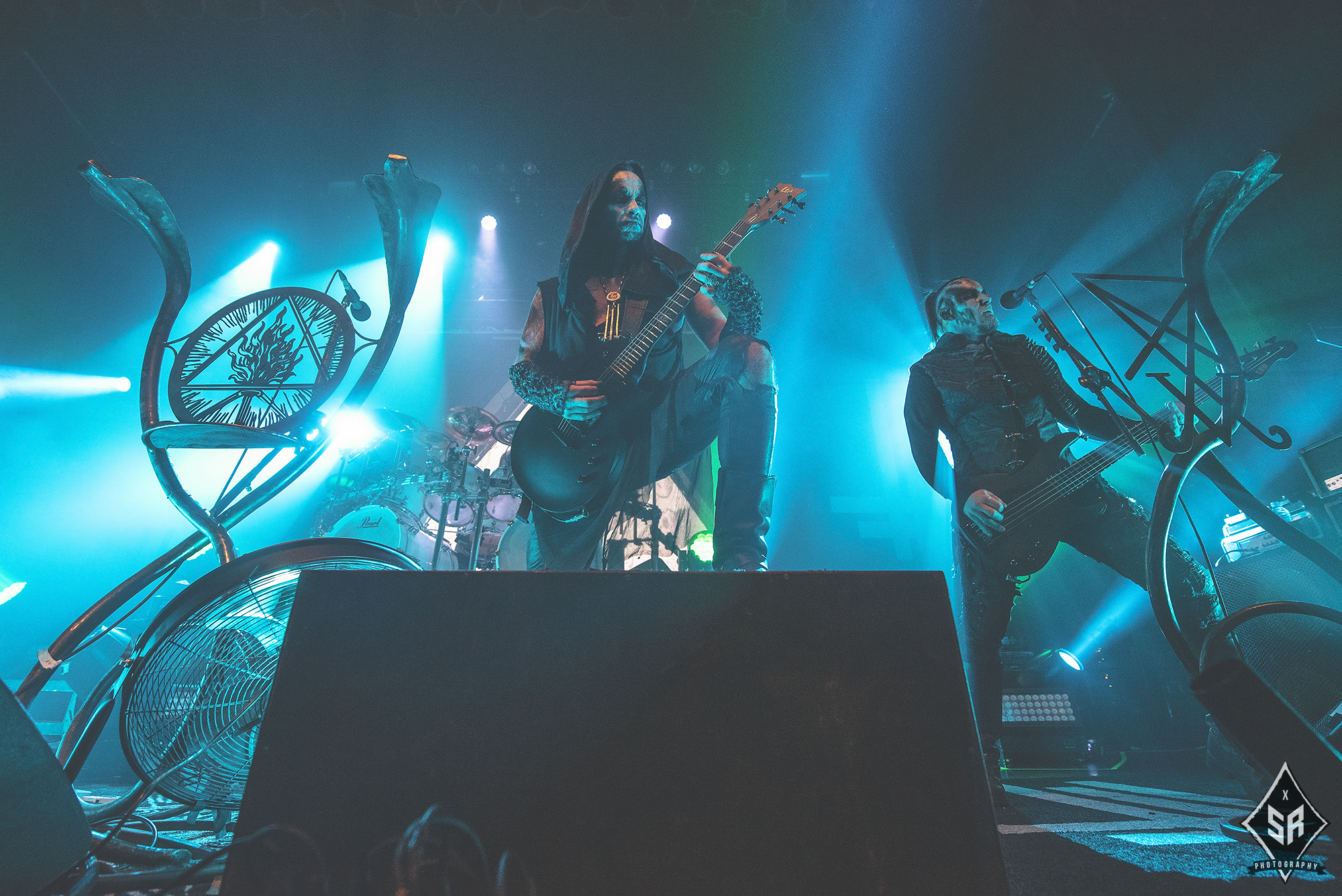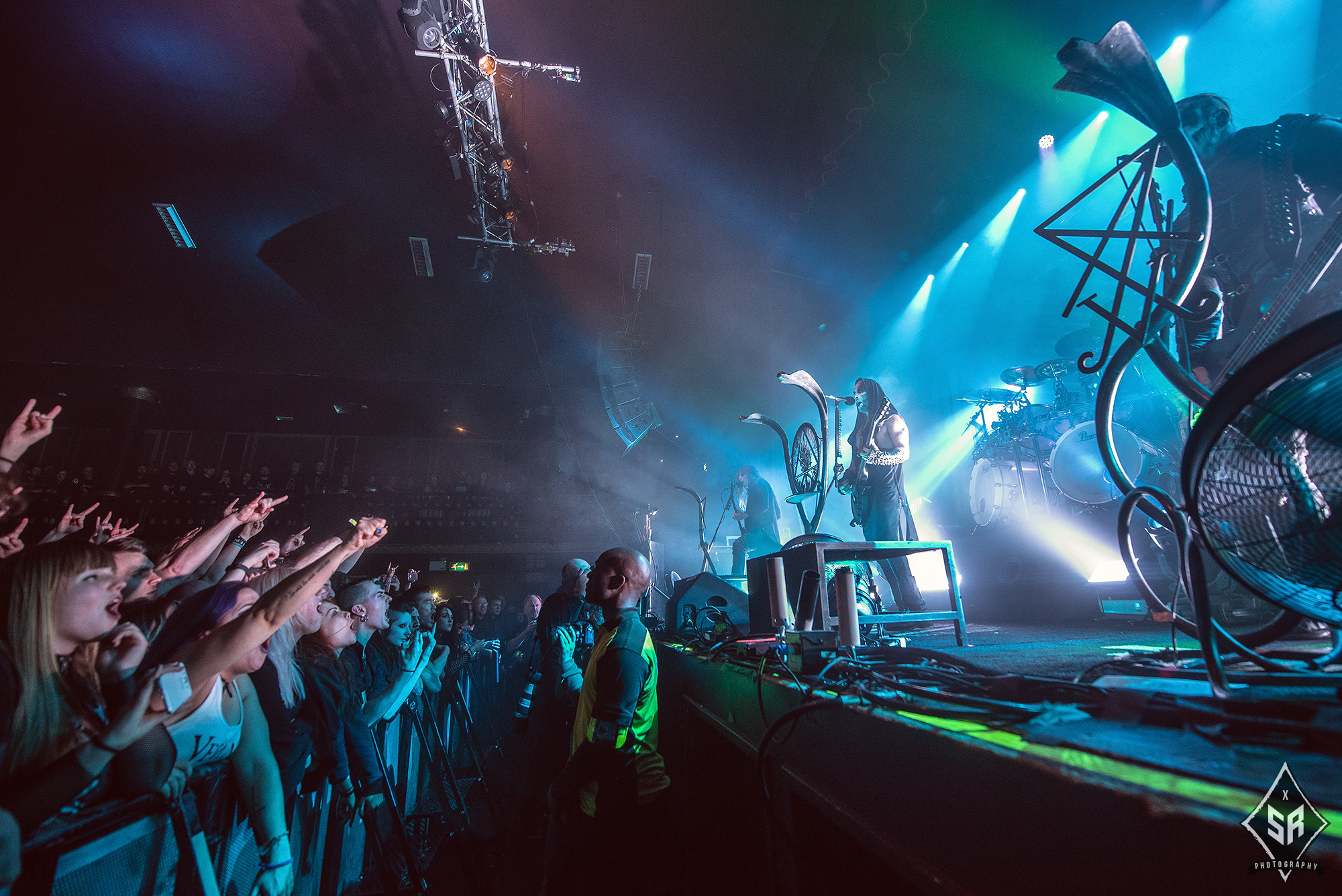 With the ominous children’s choir of “I shall not forgive, Jesus Christ”, lifted from Solve, I Loved You At Your Darkest‘s opening number, ringing out across the venue, the mood and atmosphere in anticipation for BEHEMOTH was reaching a fever-pitch. And then, as the room darkens and Poland’s finest drop the shrouded curtain and erupt into Wolves Ov Siberia, the reaction is simply jaw-dropping.