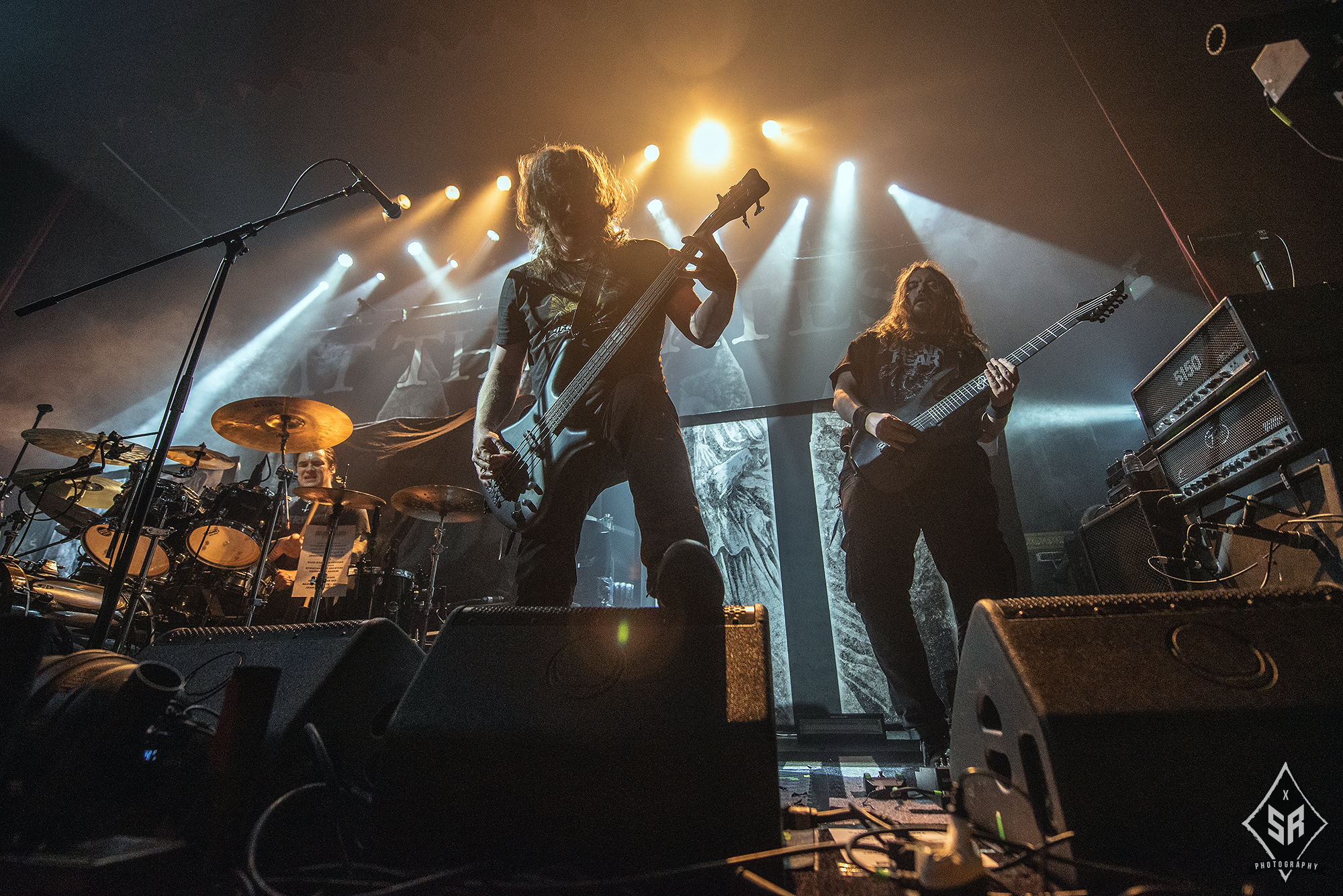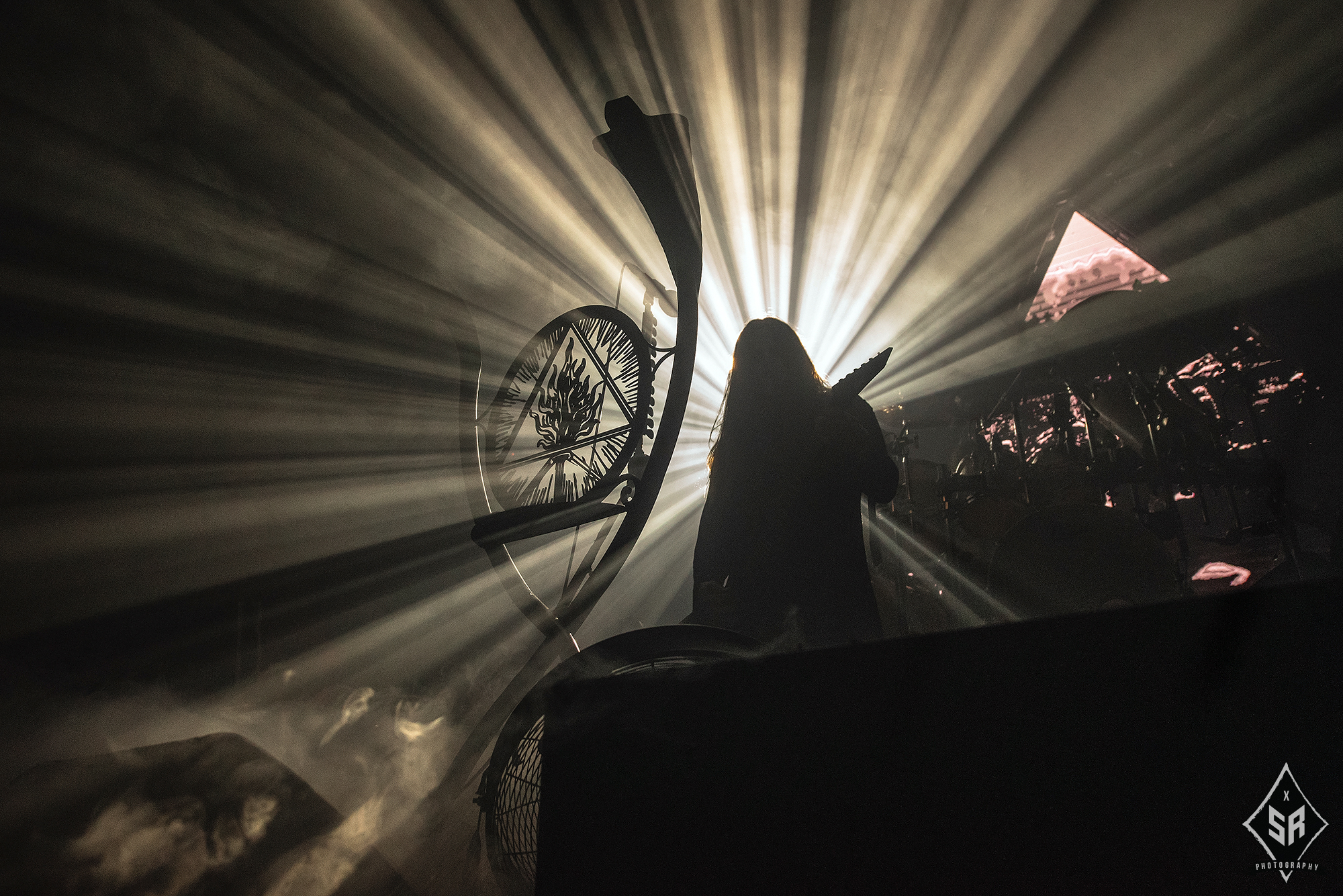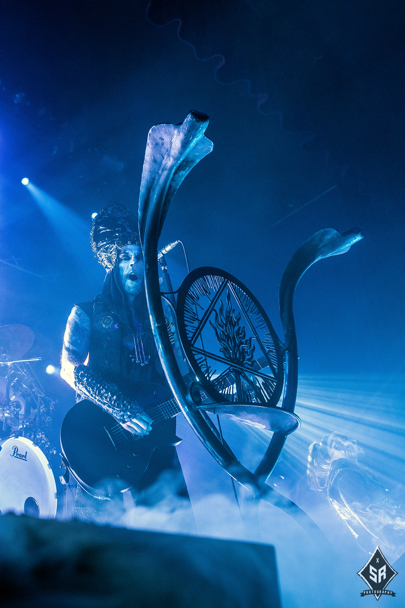 With the ominous children’s choir of “I shall not forgive, Jesus Christ”, lifted from Solve, I Loved You At Your Darkest‘s opening number, ringing out across the venue, the mood and atmosphere in anticipation for BEHEMOTH was reaching a fever-pitch. And then, as the room darkens and Poland’s finest drop the shrouded curtain and erupt into Wolves Ov Siberia, the reaction is simply jaw-dropping.