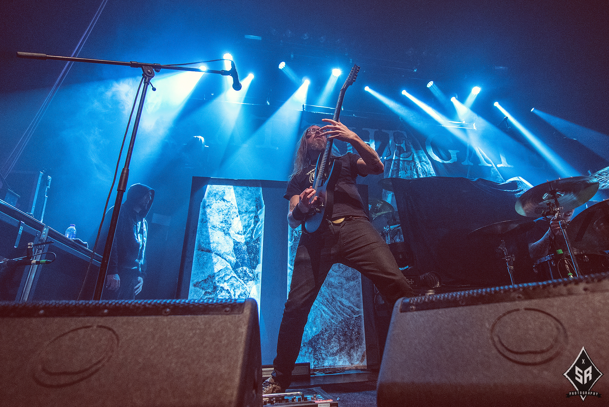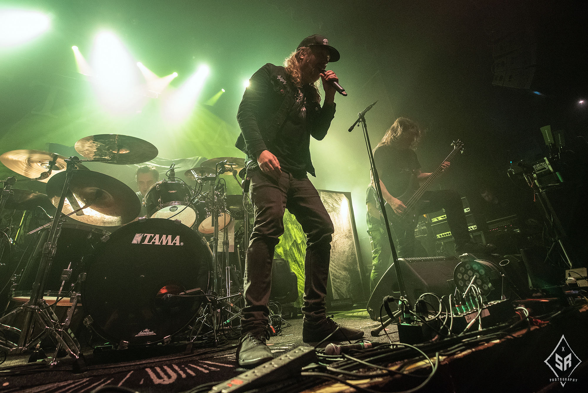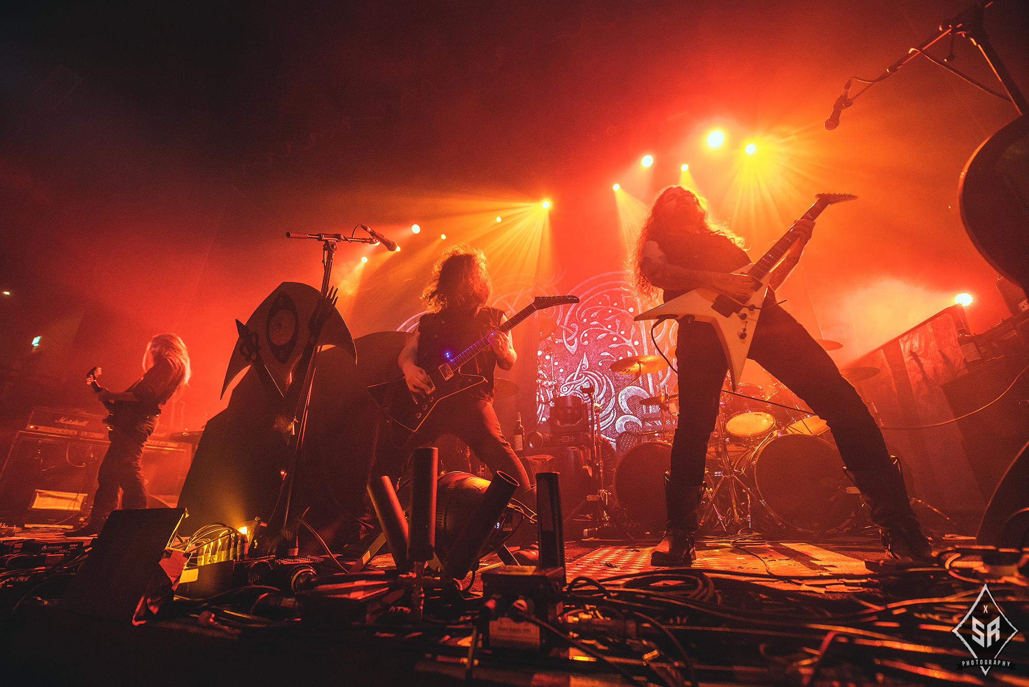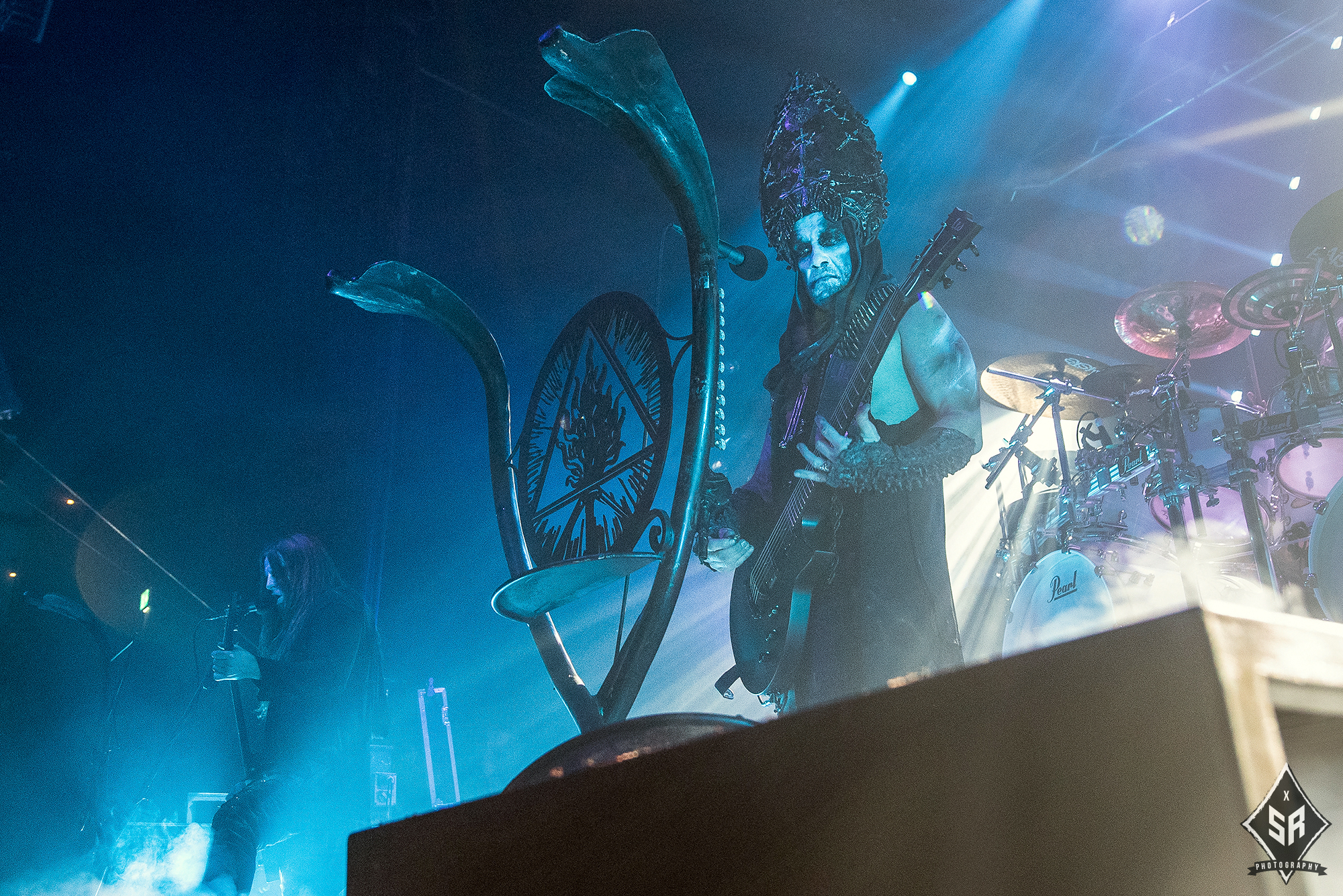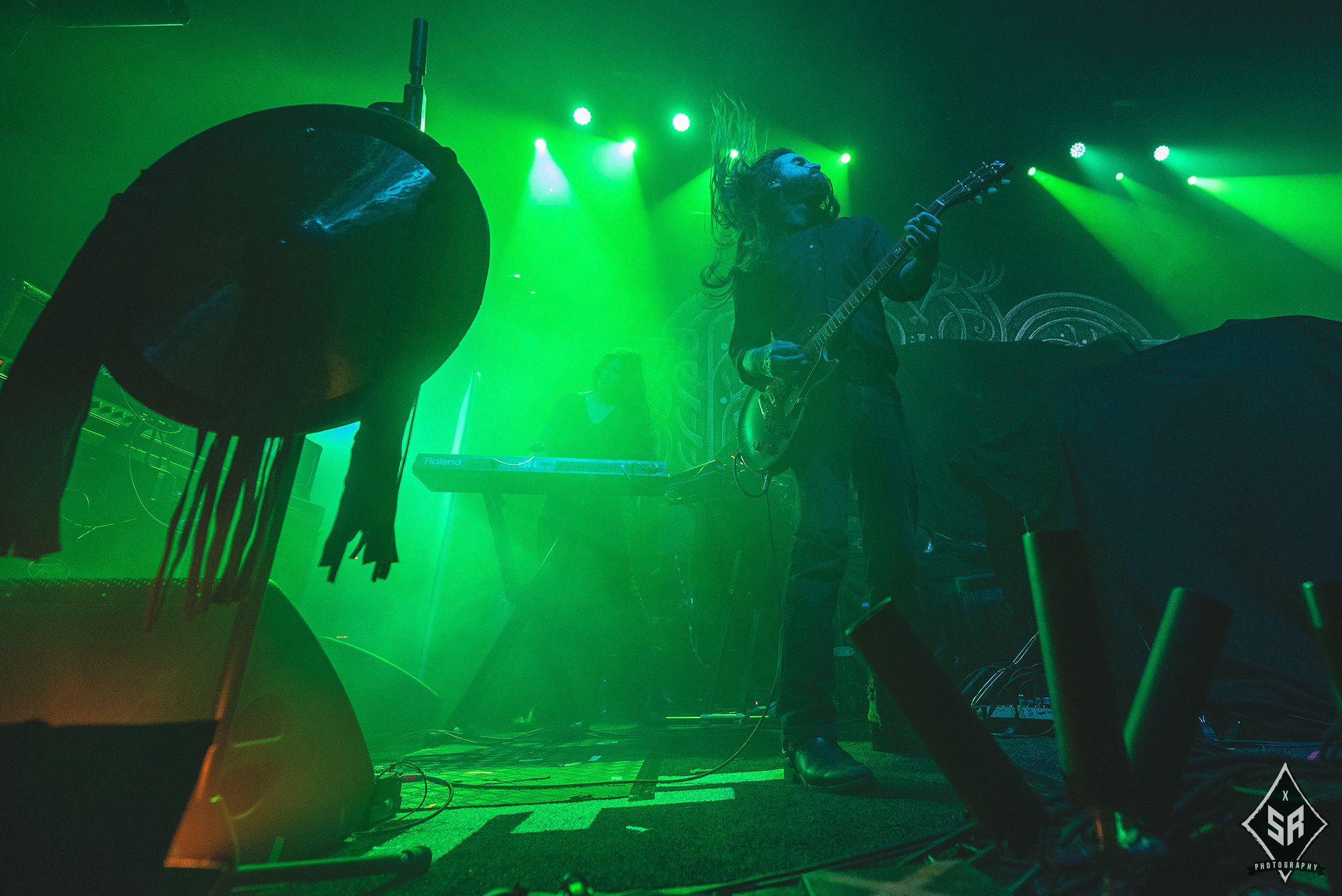 Kicking the set off with Angrboda, the band set a ferocious tone right from the off as riffs laced with frost roar and Nathan Weaver shrieks like his life depends on it before rolling into a glorious segment where the band’s more intricate elements shine. As the set progresses, it becomes increasingly apparent just how skilled and versatile WOLVES IN THE THE ROOM are, especially on the live front. Trevor Deschryver is particularly impressive behind the drums with ample double-kicks providing plenty of force and subtle flurries of percussion enhancing Brittany McConnell‘s keyboards. Their ability on their respective instruments only makes the dramatic switches of harsh and ferocious black metal to grand, sweeping moments of melody all the more impressive. The rolling doom-laden riffs of The Old Ones Are With Us gets the crowd swaying like a metronome, subsiding into a brief build-up of atmosphere through solitary guitar-work, before returning with a hair-raising finale whilst Born From The Serpent’s Eye ends the set on a resounding high as the band push a barrage of rattling riffing and thunderous drumming to the forefront. As far as opening performances go, what WOLVES IN THE THRONE ROOM gave was up there amongst the elite.