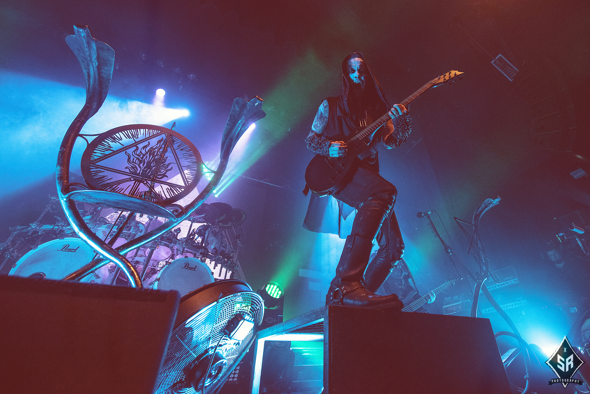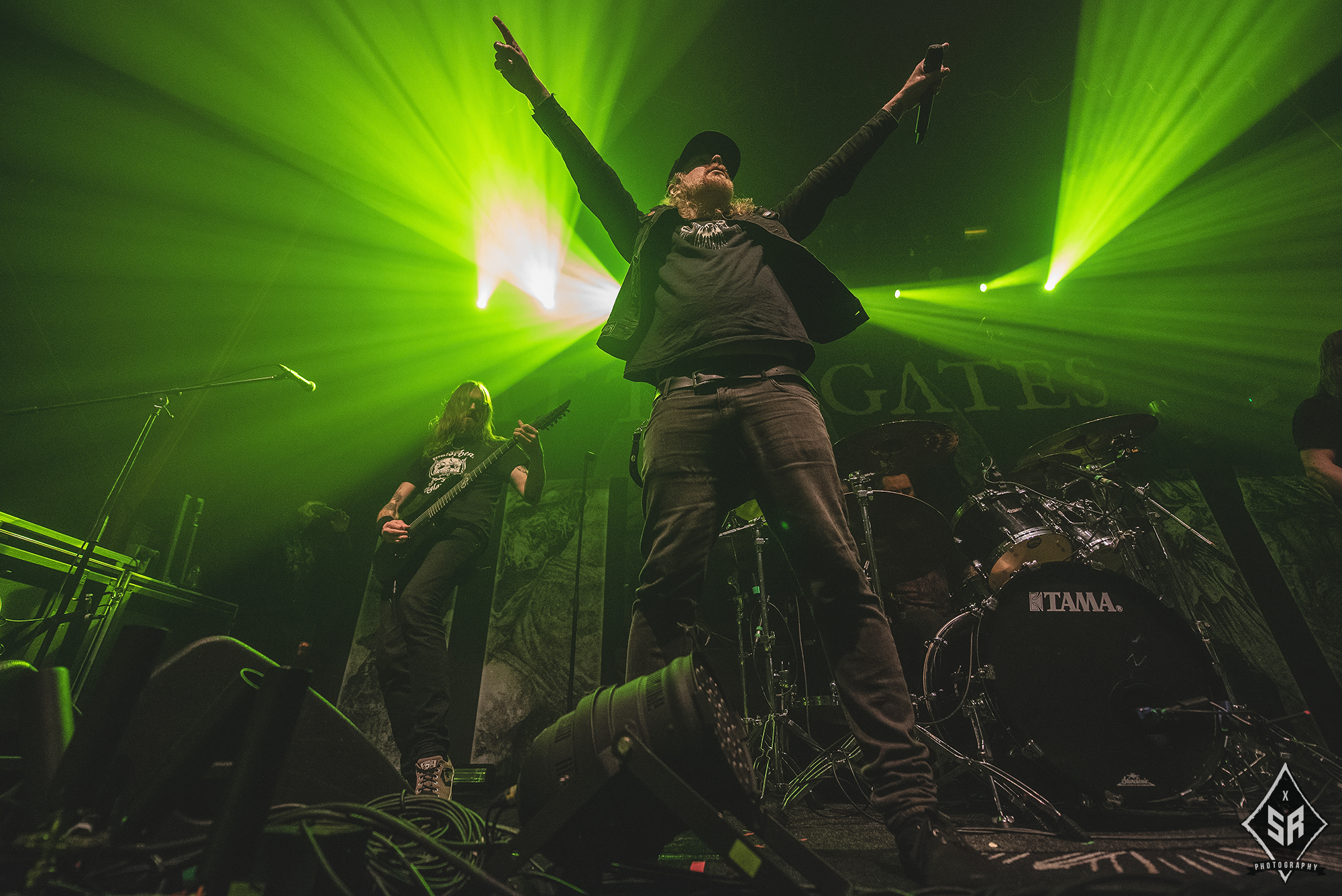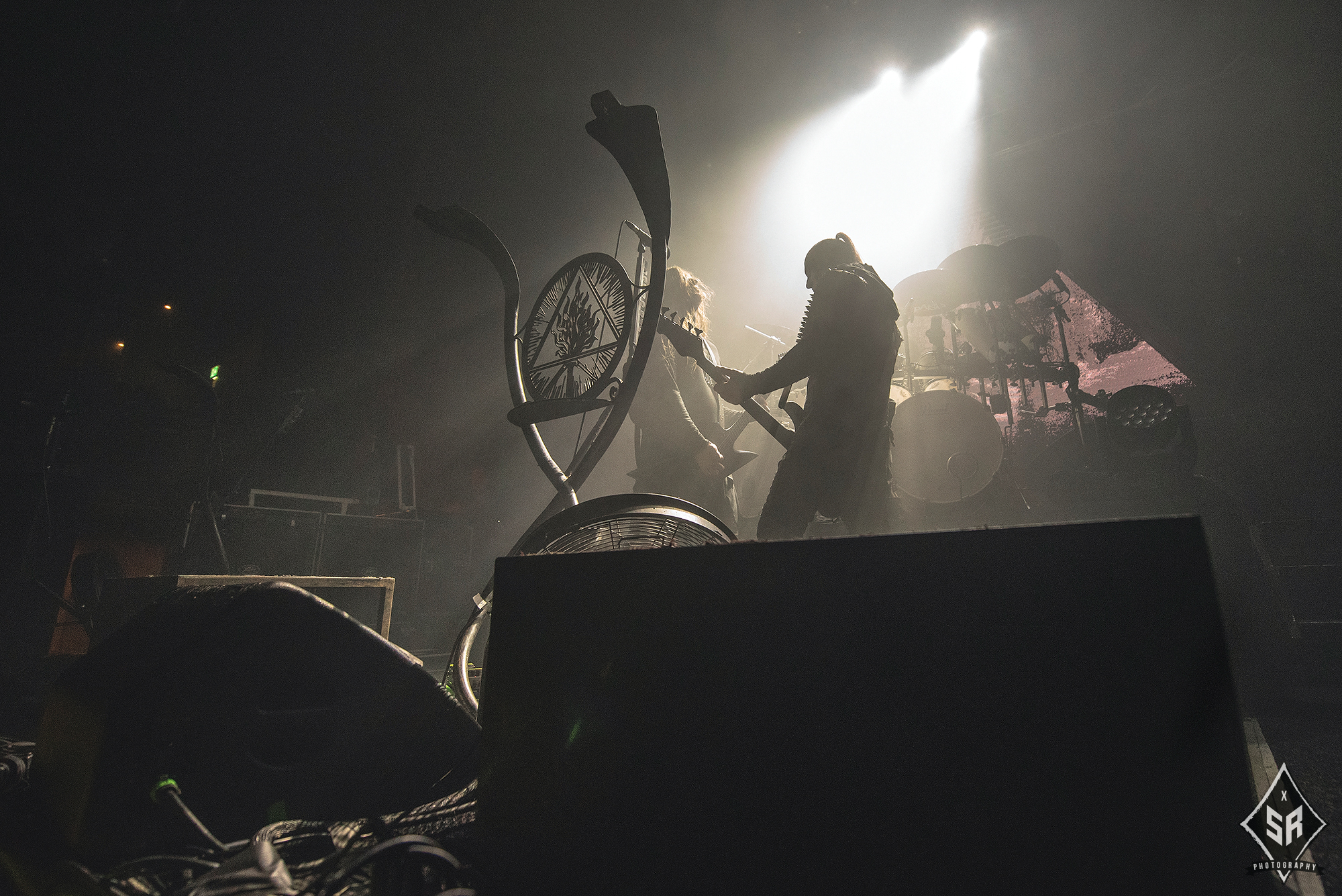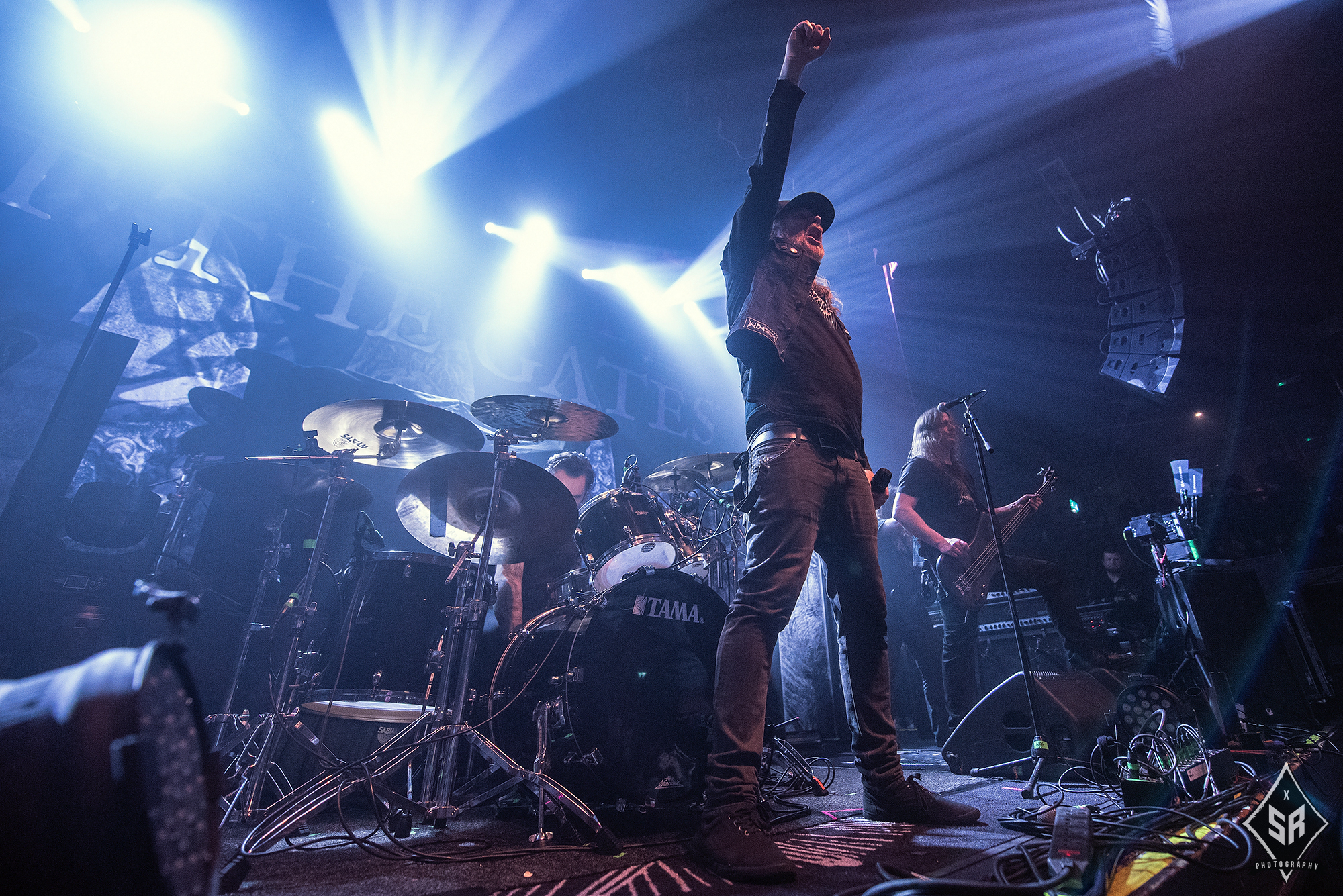 Kicking the set off with Angrboda, the band set a ferocious tone right from the off as riffs laced with frost roar and Nathan Weaver shrieks like his life depends on it before rolling into a glorious segment where the band’s more intricate elements shine. As the set progresses, it becomes increasingly apparent just how skilled and versatile WOLVES IN THE THE ROOM are, especially on the live front. Trevor Deschryver is particularly impressive behind the drums with ample double-kicks providing plenty of force and subtle flurries of percussion enhancing Brittany McConnell‘s keyboards. Their ability on their respective instruments only makes the dramatic switches of harsh and ferocious black metal to grand, sweeping moments of melody all the more impressive. The rolling doom-laden riffs of The Old Ones Are With Us gets the crowd swaying like a metronome, subsiding into a brief build-up of atmosphere through solitary guitar-work, before returning with a hair-raising finale whilst Born From The Serpent’s Eye ends the set on a resounding high as the band push a barrage of rattling riffing and thunderous drumming to the forefront. As far as opening performances go, what WOLVES IN THE THRONE ROOM gave was up there amongst the elite.