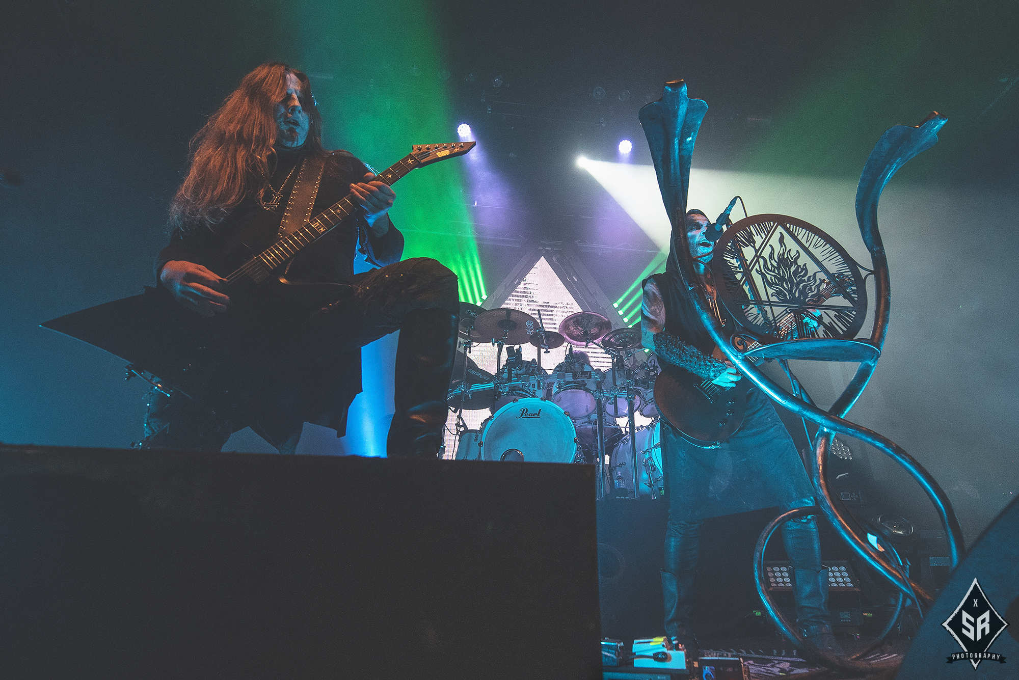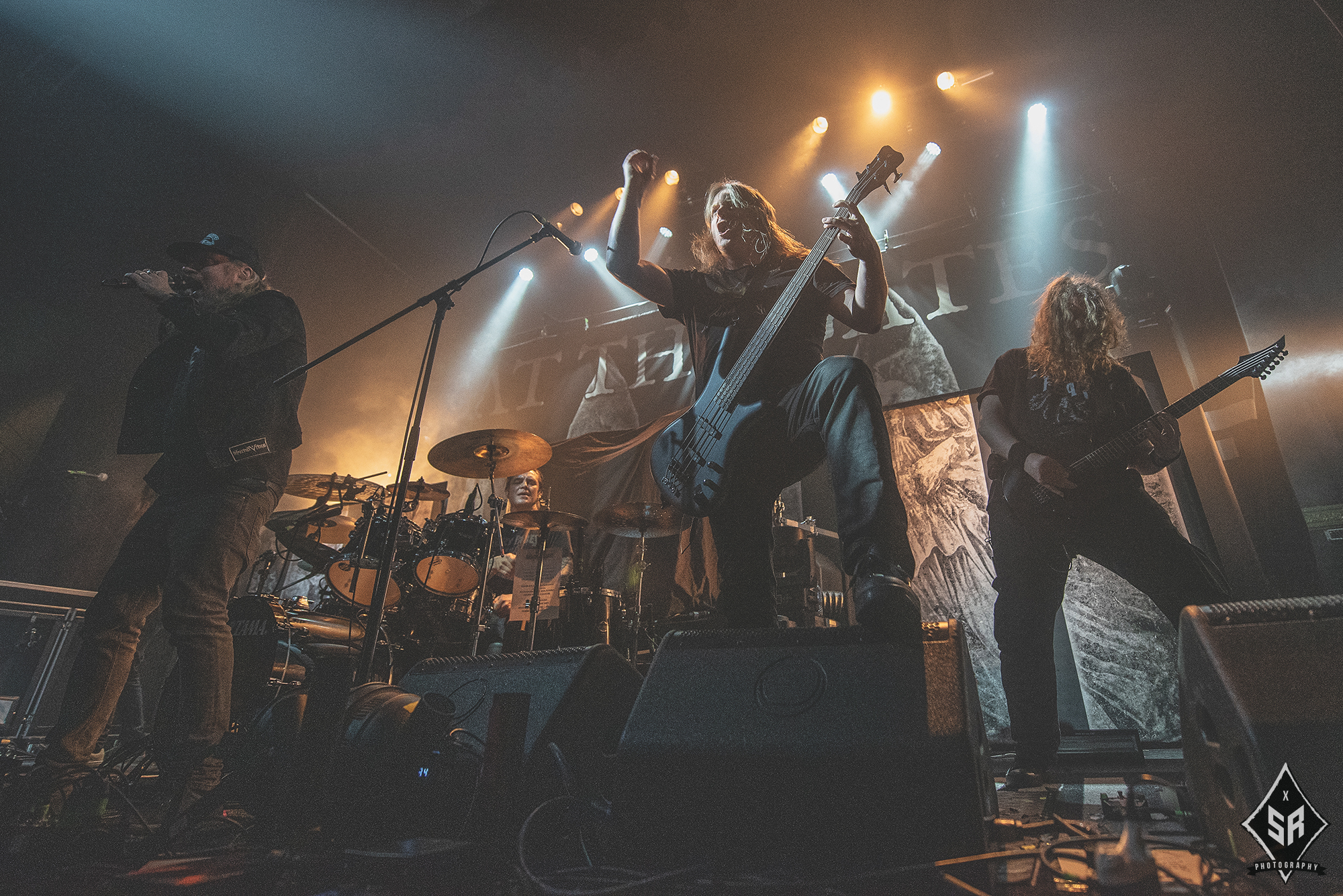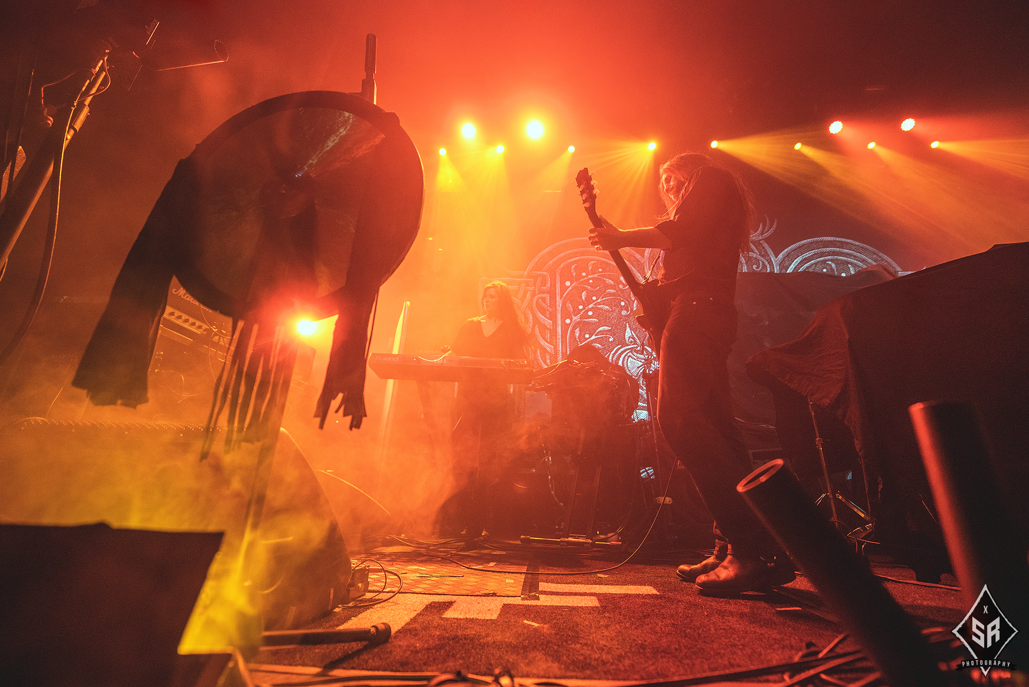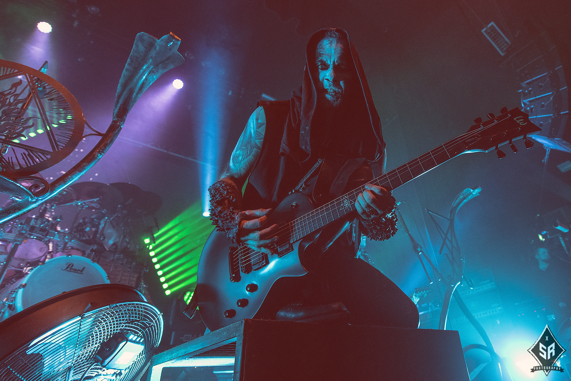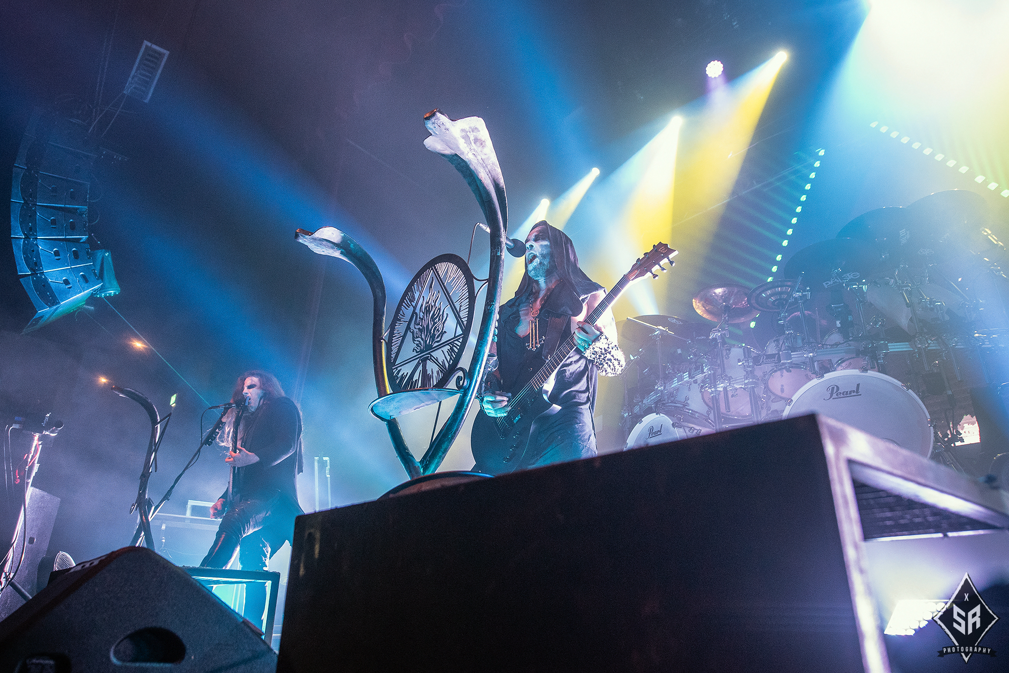 Kicking the set off with Angrboda, the band set a ferocious tone right from the off as riffs laced with frost roar and Nathan Weaver shrieks like his life depends on it before rolling into a glorious segment where the band’s more intricate elements shine. As the set progresses, it becomes increasingly apparent just how skilled and versatile WOLVES IN THE THE ROOM are, especially on the live front. Trevor Deschryver is particularly impressive behind the drums with ample double-kicks providing plenty of force and subtle flurries of percussion enhancing Brittany McConnell‘s keyboards. Their ability on their respective instruments only makes the dramatic switches of harsh and ferocious black metal to grand, sweeping moments of melody all the more impressive. The rolling doom-laden riffs of The Old Ones Are With Us gets the crowd swaying like a metronome, subsiding into a brief build-up of atmosphere through solitary guitar-work, before returning with a hair-raising finale whilst Born From The Serpent’s Eye ends the set on a resounding high as the band push a barrage of rattling riffing and thunderous drumming to the forefront. As far as opening performances go, what WOLVES IN THE THRONE ROOM gave was up there amongst the elite.