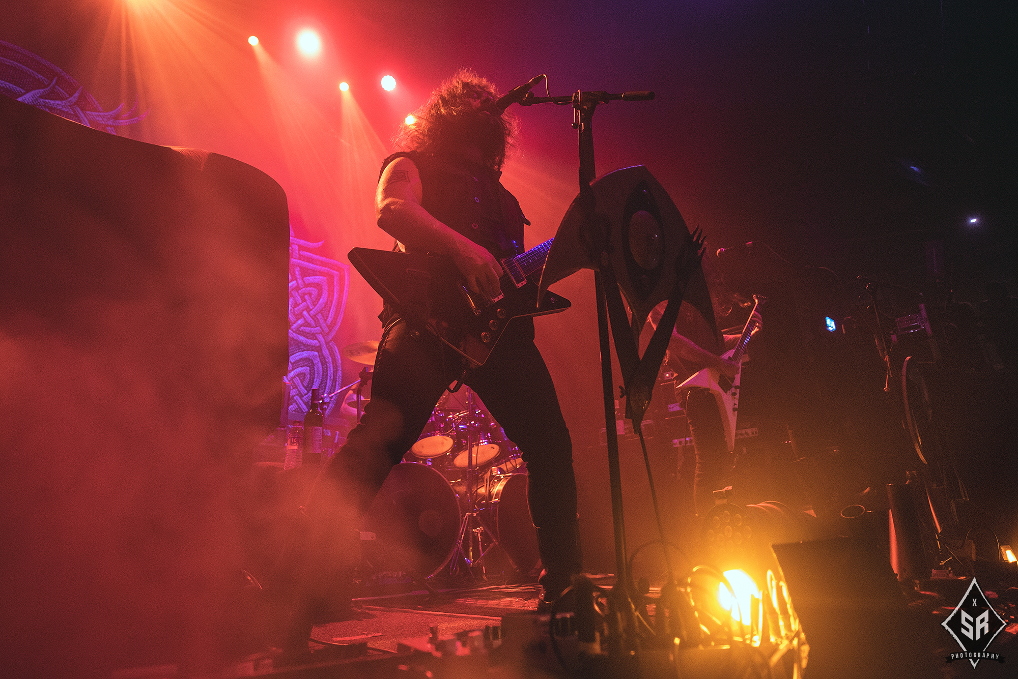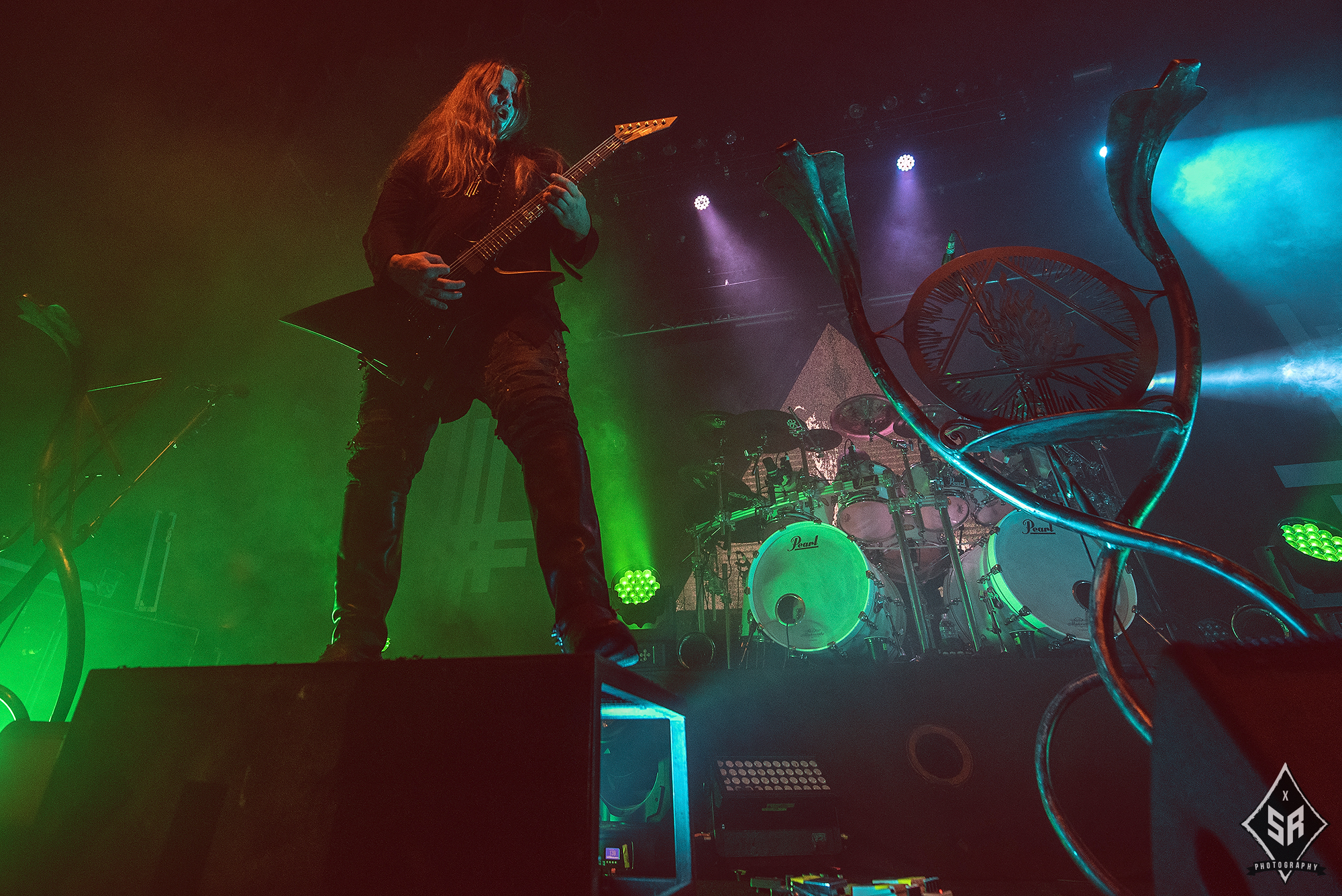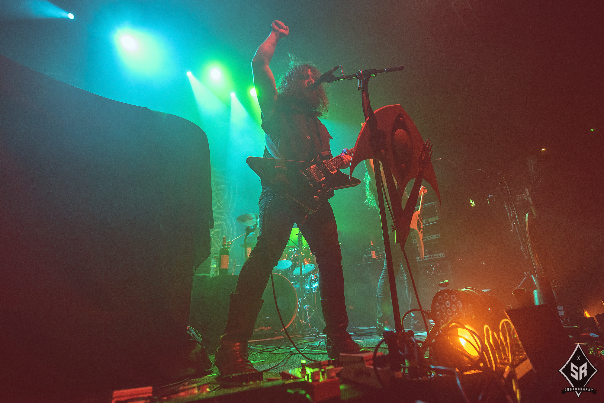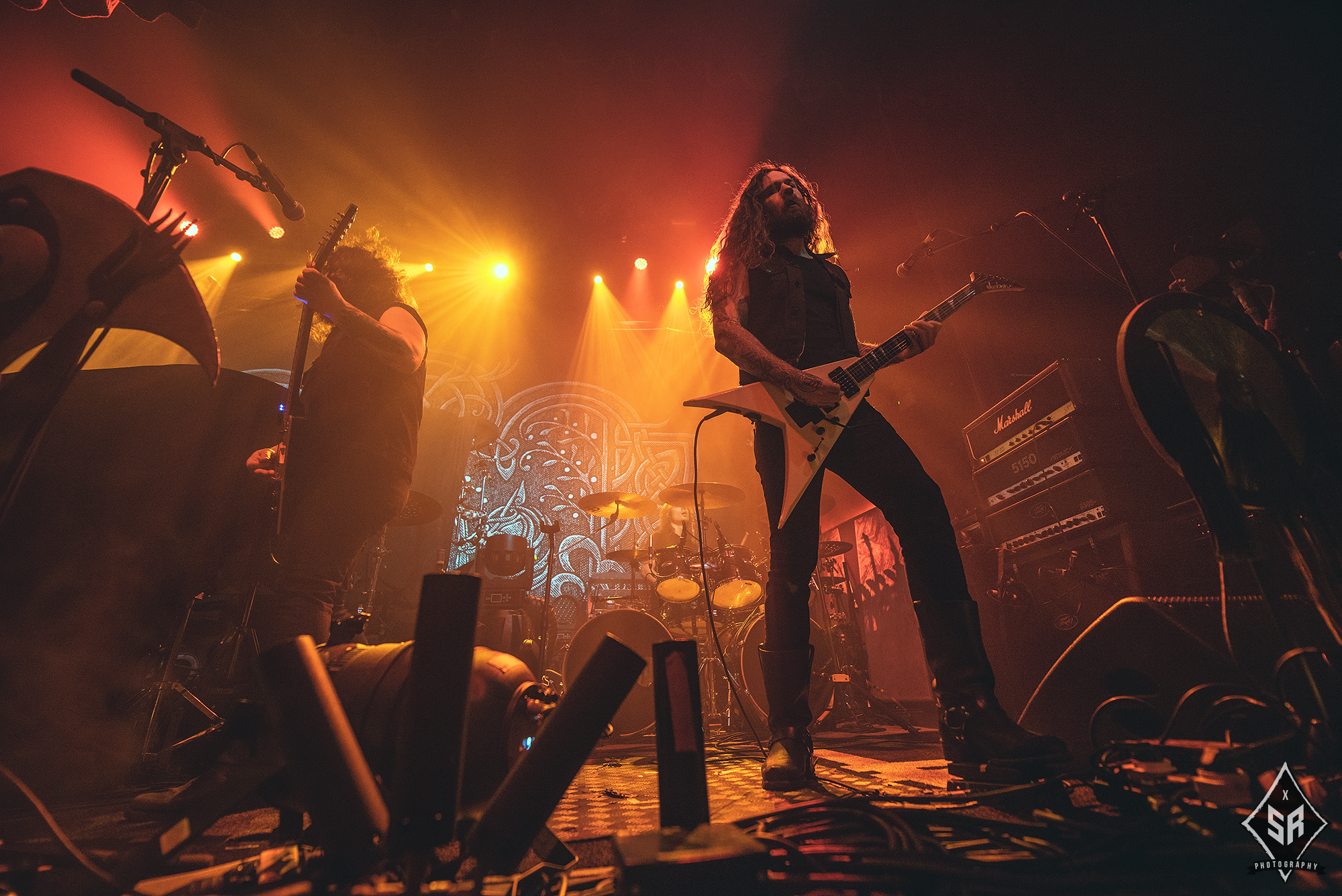 Kicking the set off with Angrboda, the band set a ferocious tone right from the off as riffs laced with frost roar and Nathan Weaver shrieks like his life depends on it before rolling into a glorious segment where the band’s more intricate elements shine. As the set progresses, it becomes increasingly apparent just how skilled and versatile WOLVES IN THE THE ROOM are, especially on the live front. Trevor Deschryver is particularly impressive behind the drums with ample double-kicks providing plenty of force and subtle flurries of percussion enhancing Brittany McConnell‘s keyboards. Their ability on their respective instruments only makes the dramatic switches of harsh and ferocious black metal to grand, sweeping moments of melody all the more impressive. The rolling doom-laden riffs of The Old Ones Are With Us gets the crowd swaying like a metronome, subsiding into a brief build-up of atmosphere through solitary guitar-work, before returning with a hair-raising finale whilst Born From The Serpent’s Eye ends the set on a resounding high as the band push a barrage of rattling riffing and thunderous drumming to the forefront. As far as opening performances go, what WOLVES IN THE THRONE ROOM gave was up there amongst the elite.