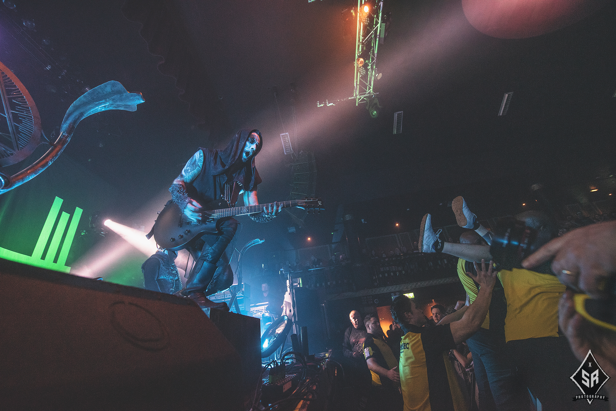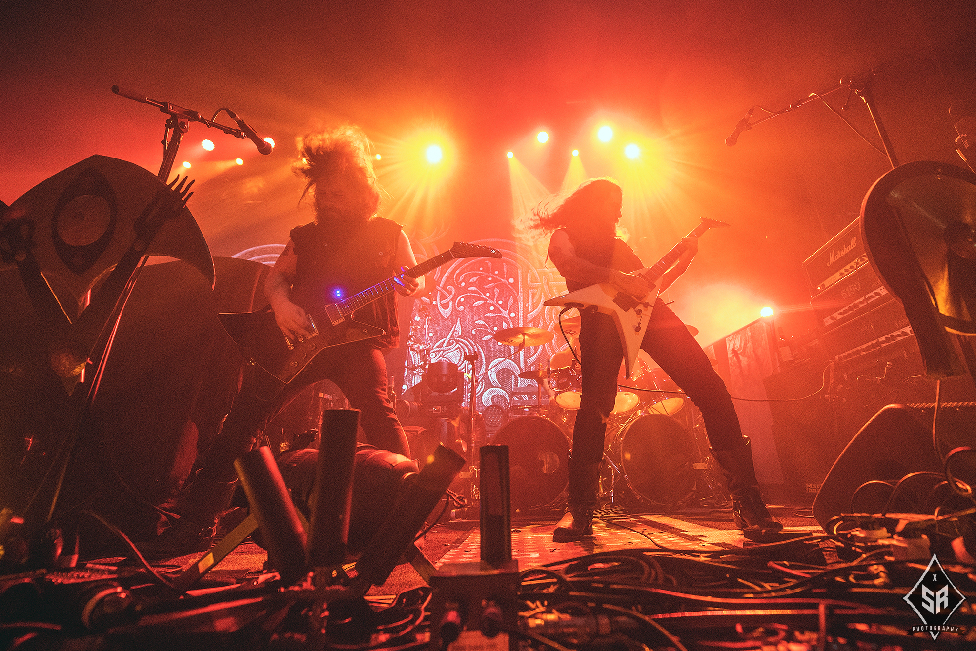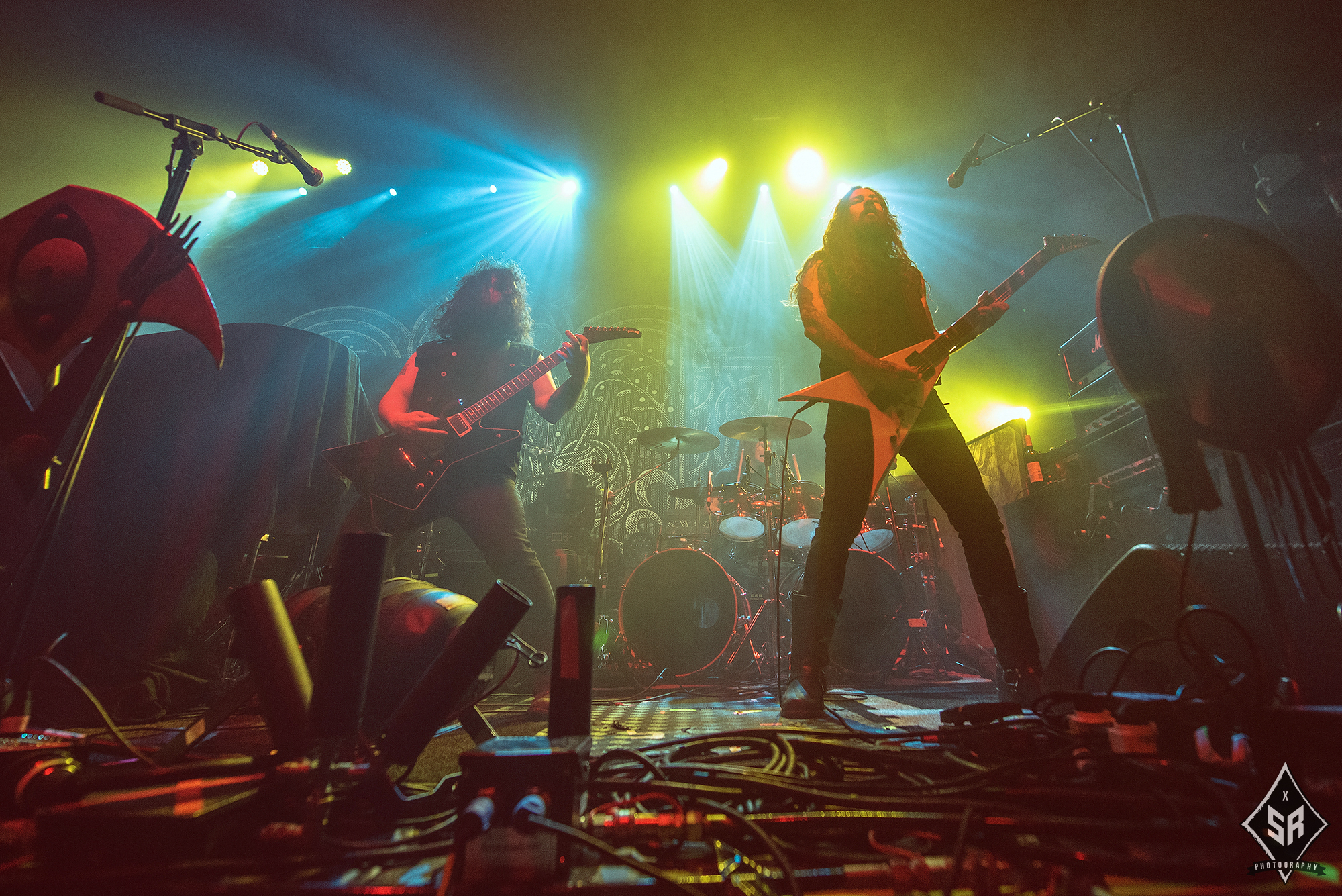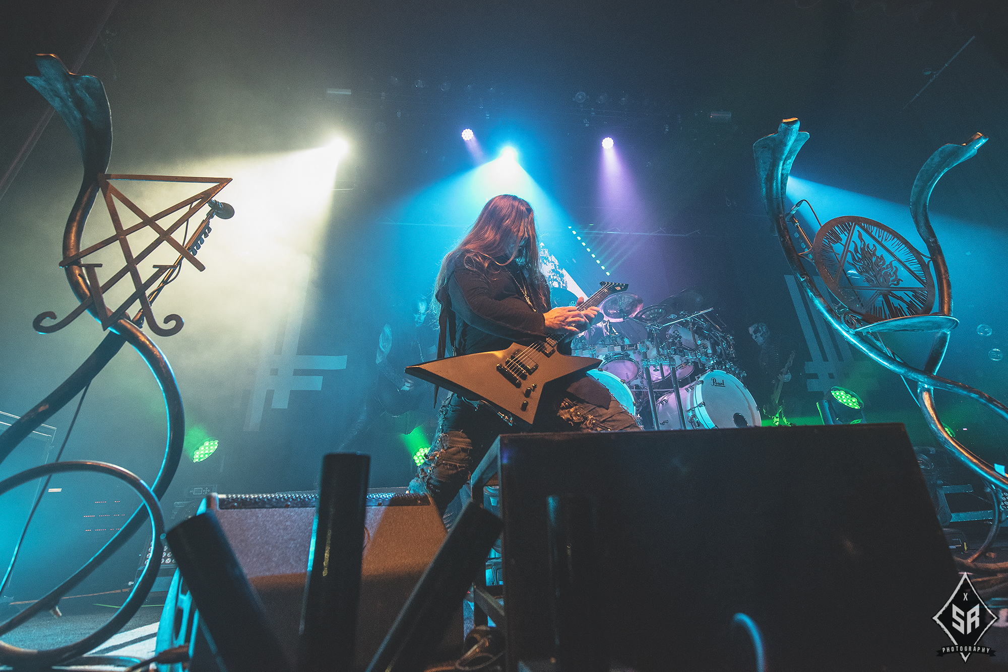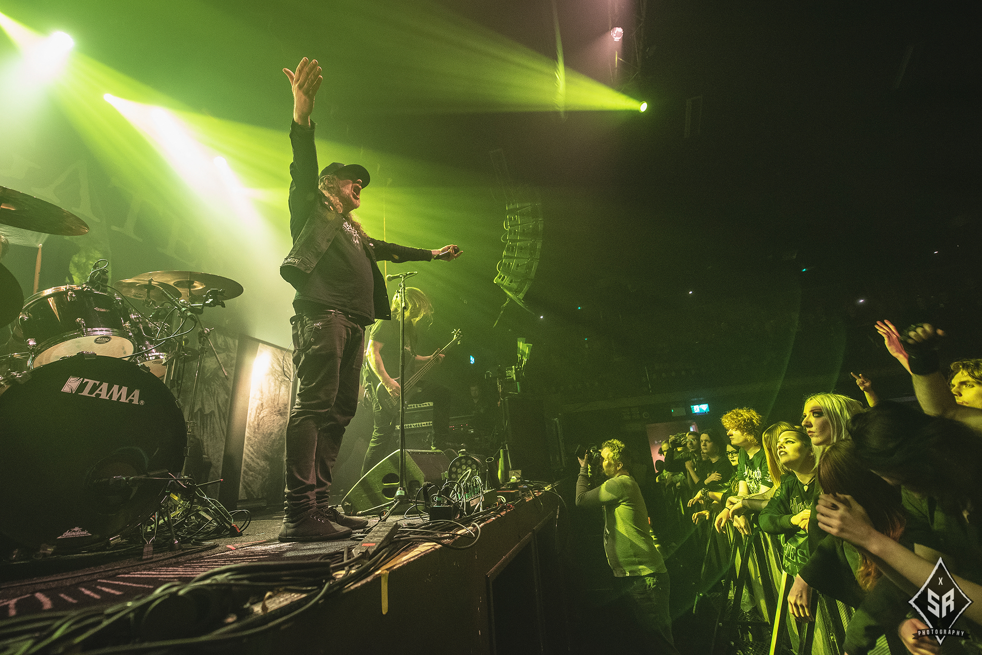 Kicking the set off with Angrboda, the band set a ferocious tone right from the off as riffs laced with frost roar and Nathan Weaver shrieks like his life depends on it before rolling into a glorious segment where the band’s more intricate elements shine. As the set progresses, it becomes increasingly apparent just how skilled and versatile WOLVES IN THE THE ROOM are, especially on the live front. Trevor Deschryver is particularly impressive behind the drums with ample double-kicks providing plenty of force and subtle flurries of percussion enhancing Brittany McConnell‘s keyboards. Their ability on their respective instruments only makes the dramatic switches of harsh and ferocious black metal to grand, sweeping moments of melody all the more impressive. The rolling doom-laden riffs of The Old Ones Are With Us gets the crowd swaying like a metronome, subsiding into a brief build-up of atmosphere through solitary guitar-work, before returning with a hair-raising finale whilst Born From The Serpent’s Eye ends the set on a resounding high as the band push a barrage of rattling riffing and thunderous drumming to the forefront. As far as opening performances go, what WOLVES IN THE THRONE ROOM gave was up there amongst the elite.