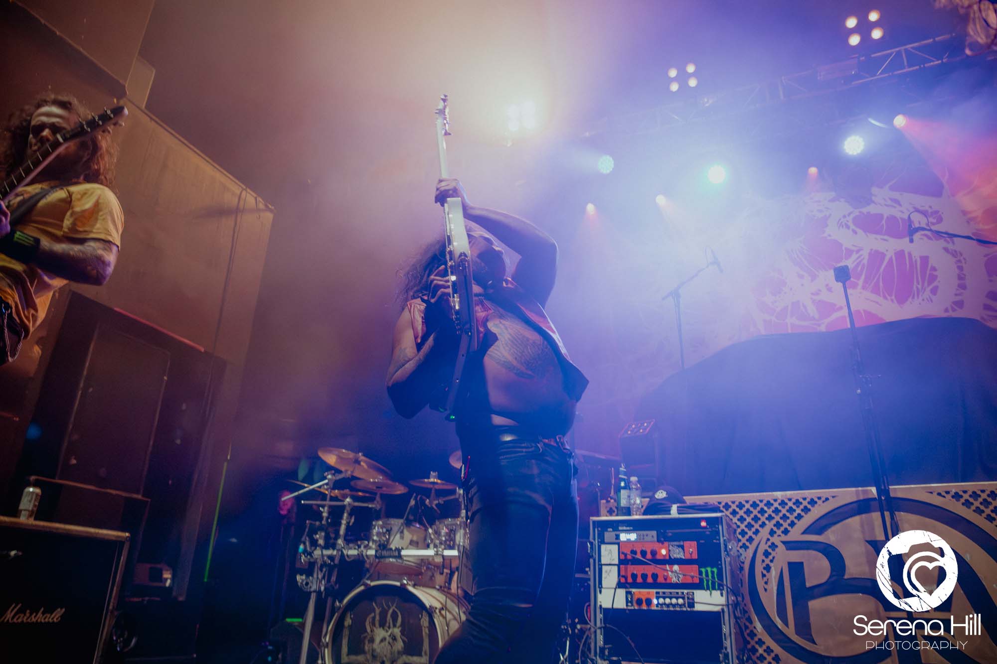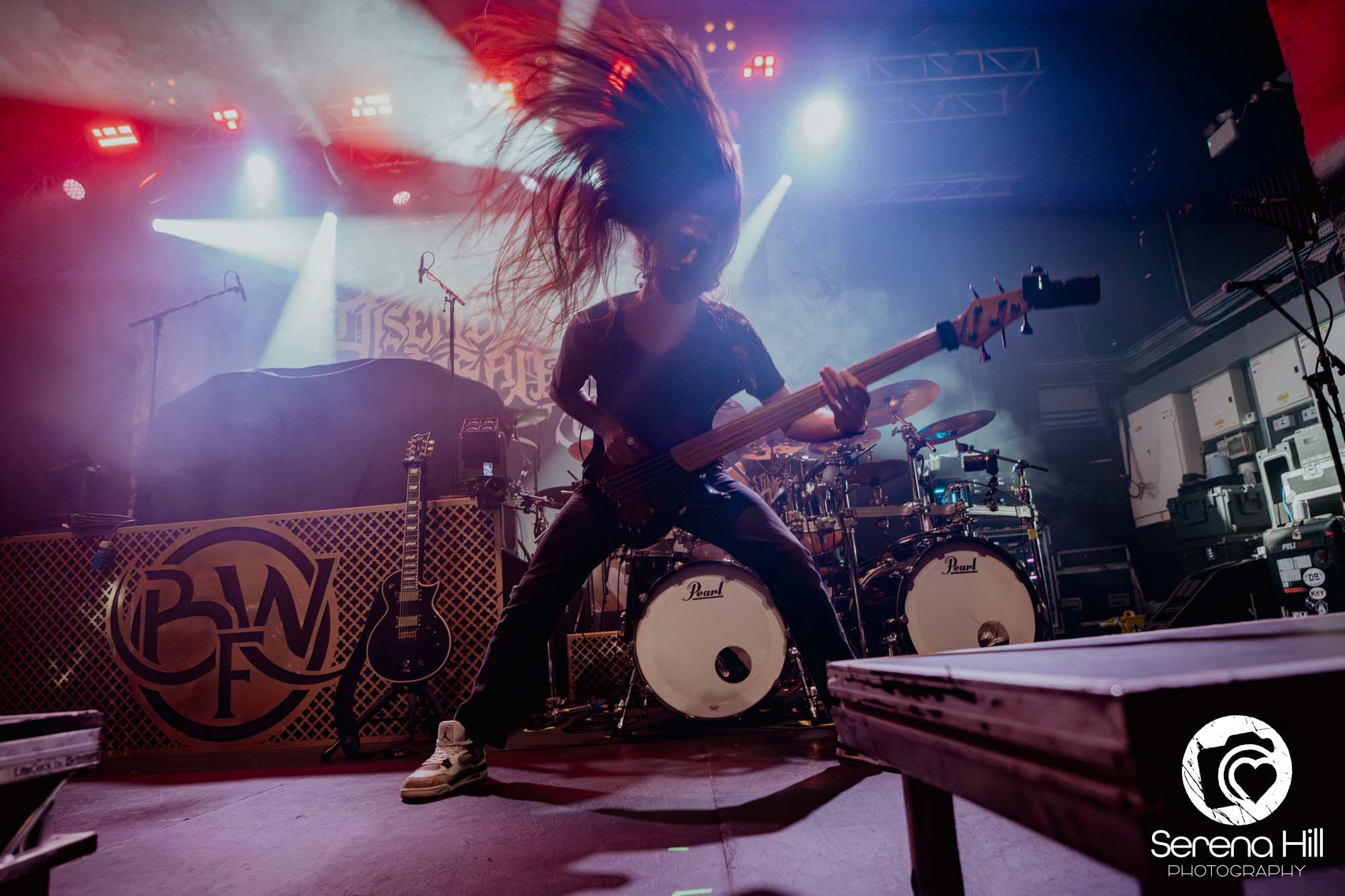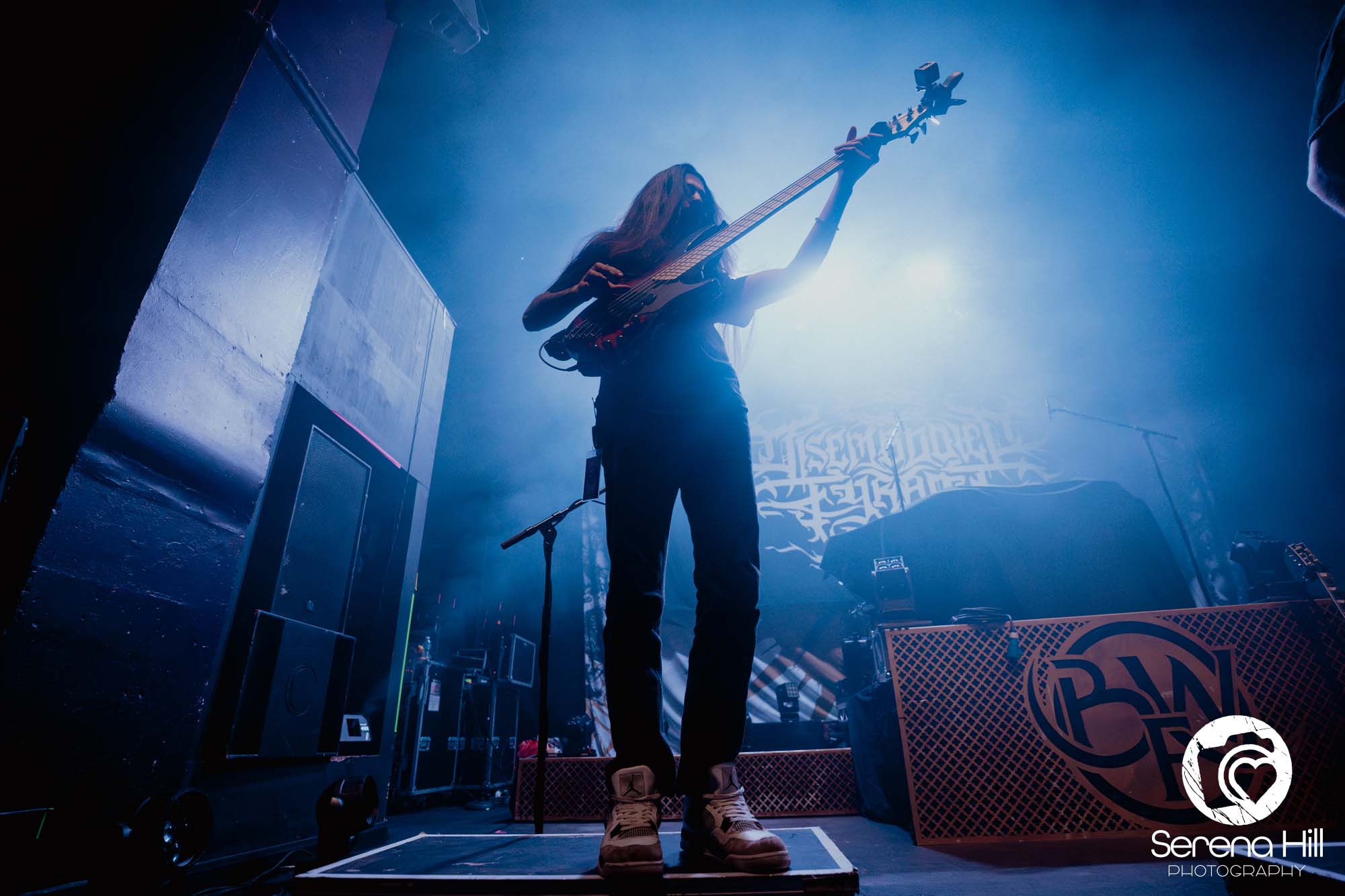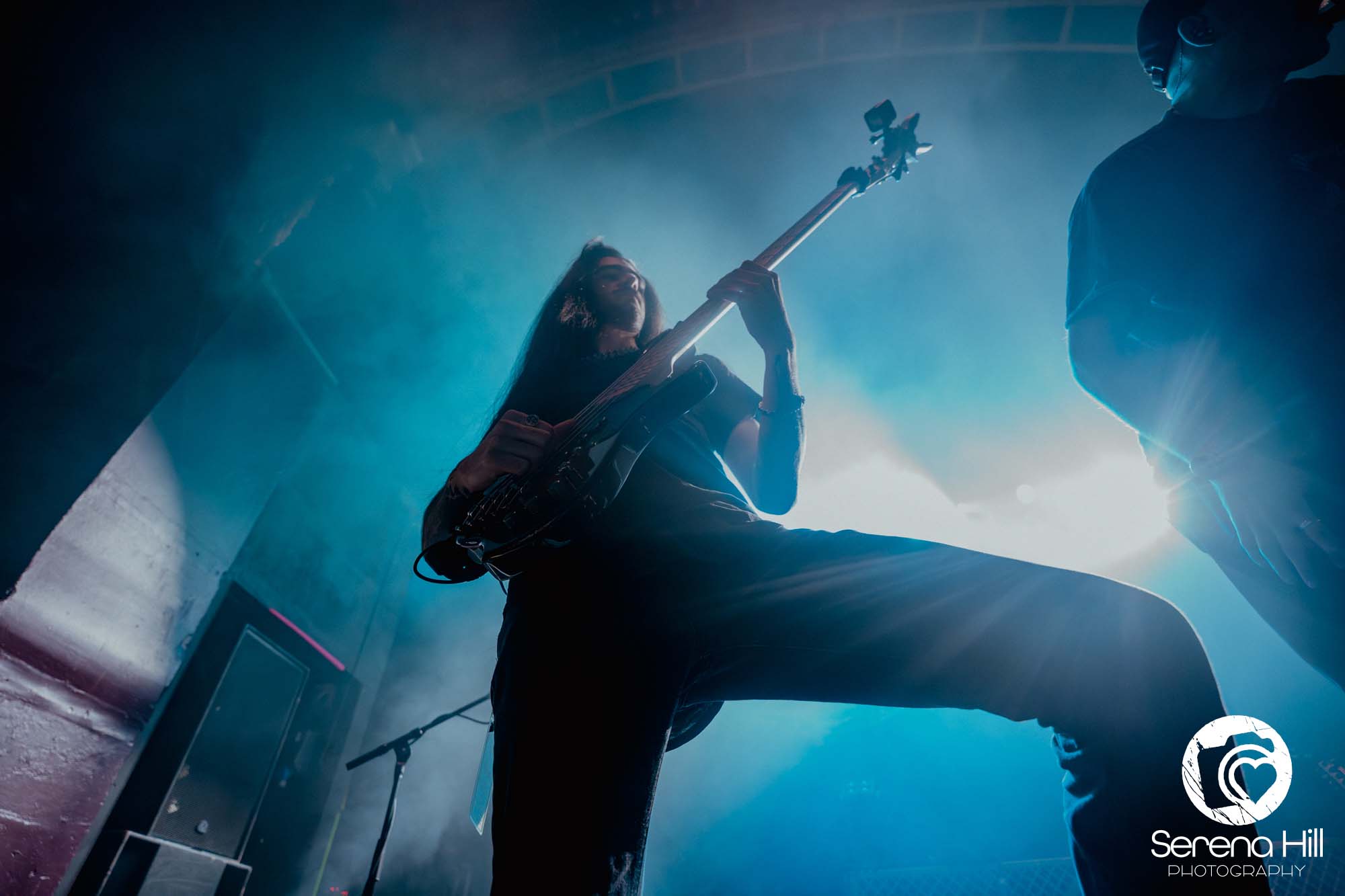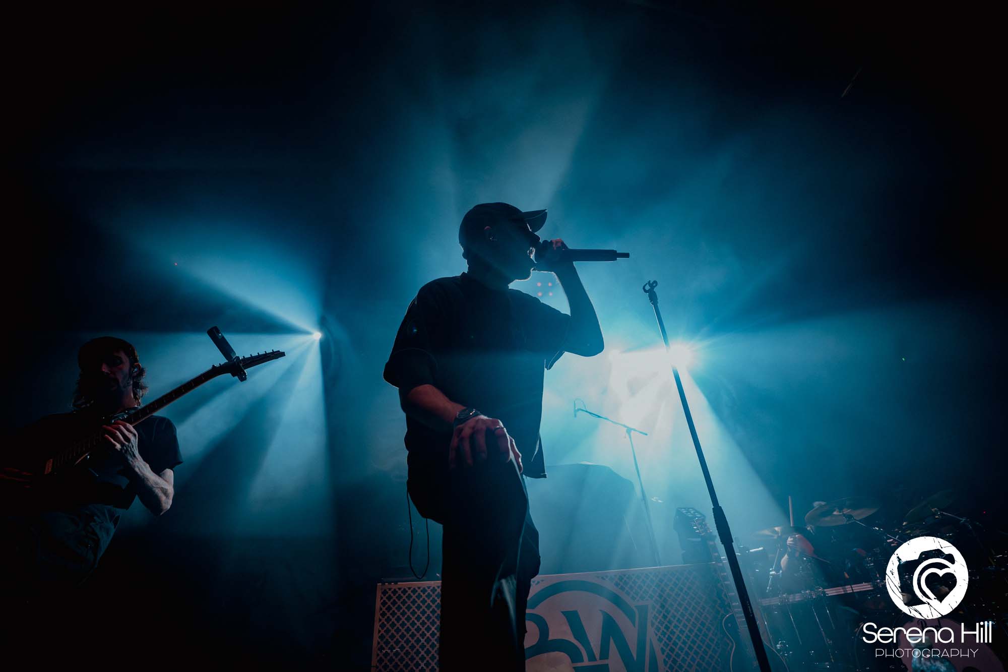 The drumming from Ali Richardson drives it all forward with a near-marching precision: relentless, pounding, impossible to ignore. It’s the backbone of the set, and it keeps the pit moving from start to finish. Midway through, there’s a rare pause. A moment to breathe and to acknowledge the people behind the scenes. The crew gets their due, including a Birmingham local who steps up for a quick word, proudly representing the city. It’s a small touch, but it adds to the sense that tonight isn’t just a show, it’s a shared moment amongst every single person in the room.