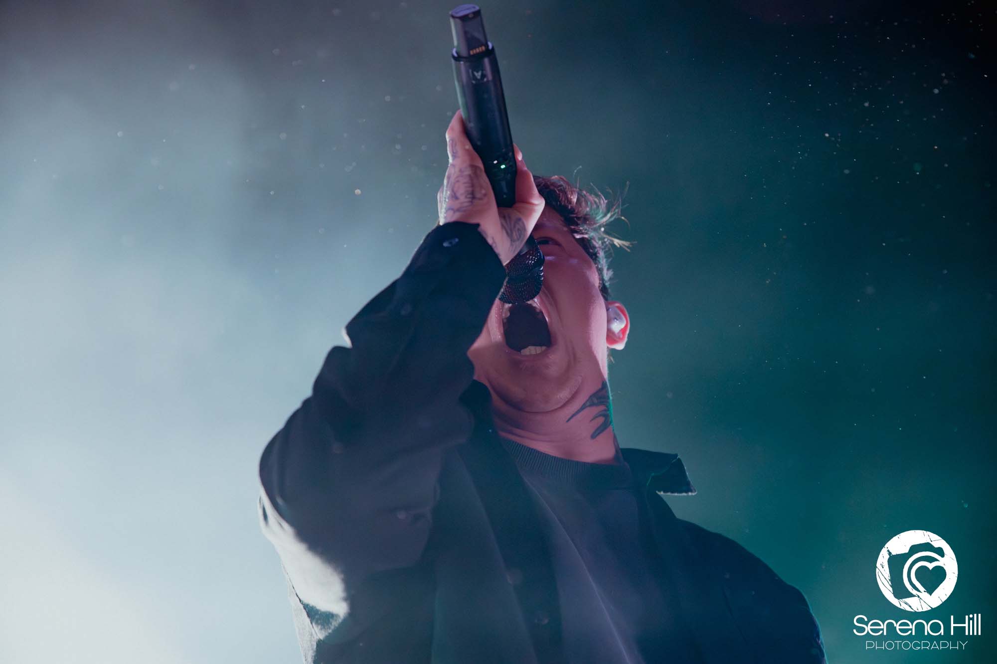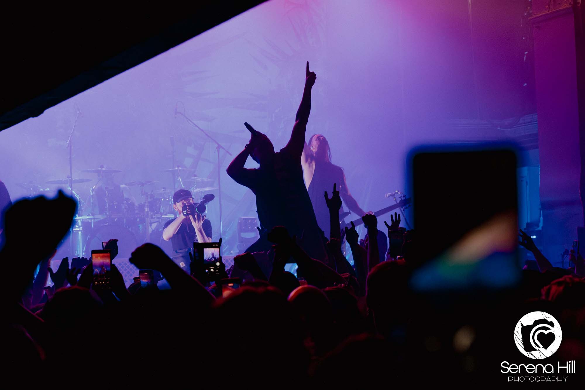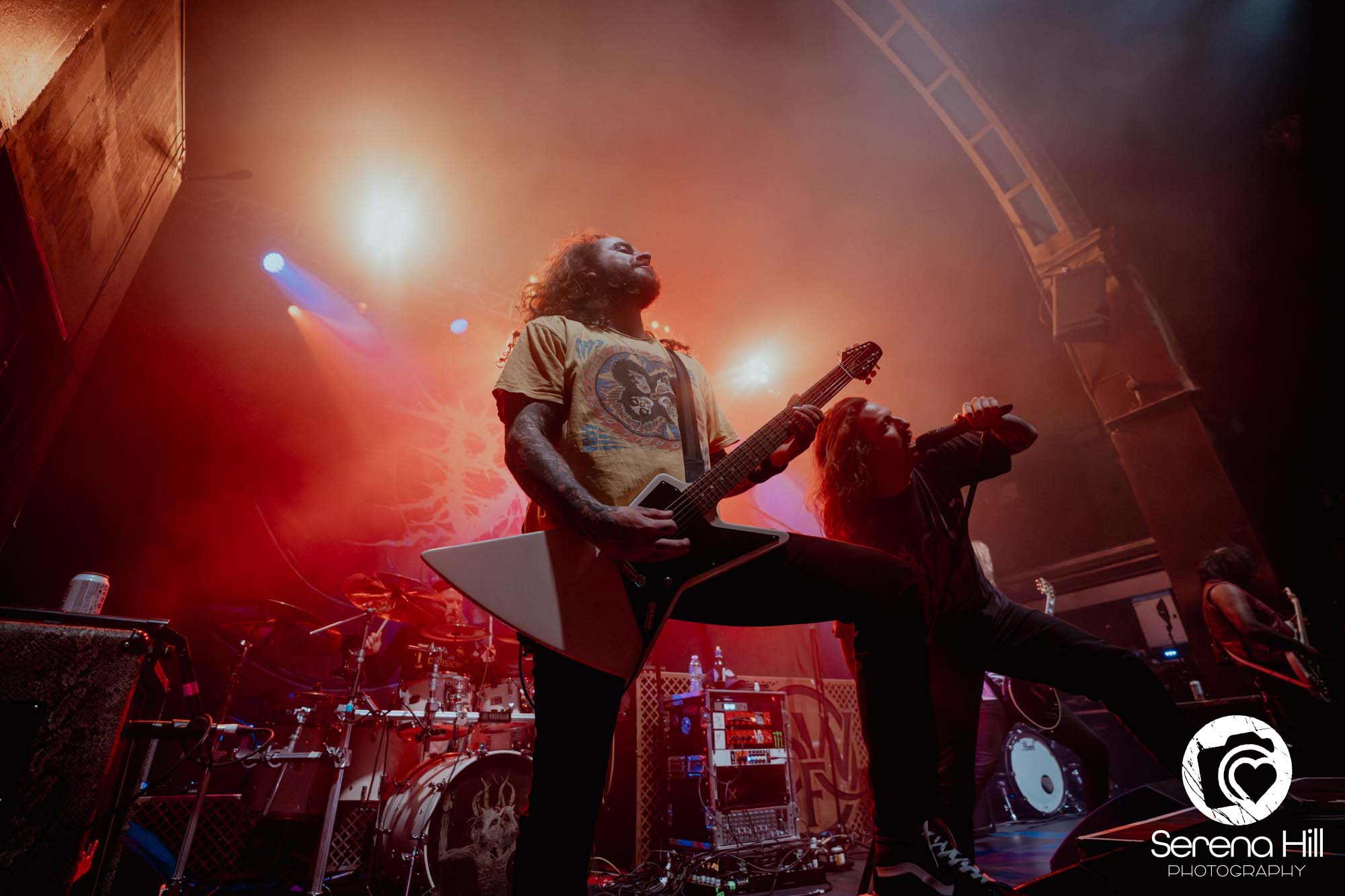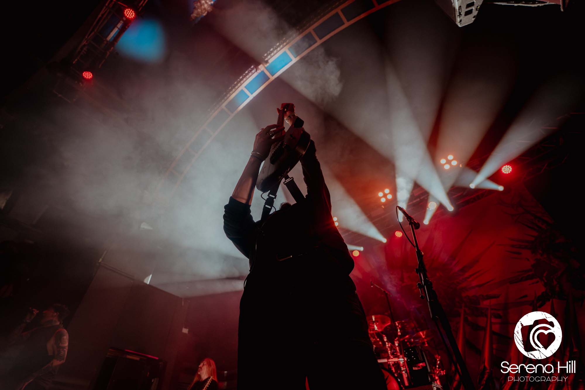 The drumming from Ali Richardson drives it all forward with a near-marching precision: relentless, pounding, impossible to ignore. It’s the backbone of the set, and it keeps the pit moving from start to finish. Midway through, there’s a rare pause. A moment to breathe and to acknowledge the people behind the scenes. The crew gets their due, including a Birmingham local who steps up for a quick word, proudly representing the city. It’s a small touch, but it adds to the sense that tonight isn’t just a show, it’s a shared moment amongst every single person in the room.