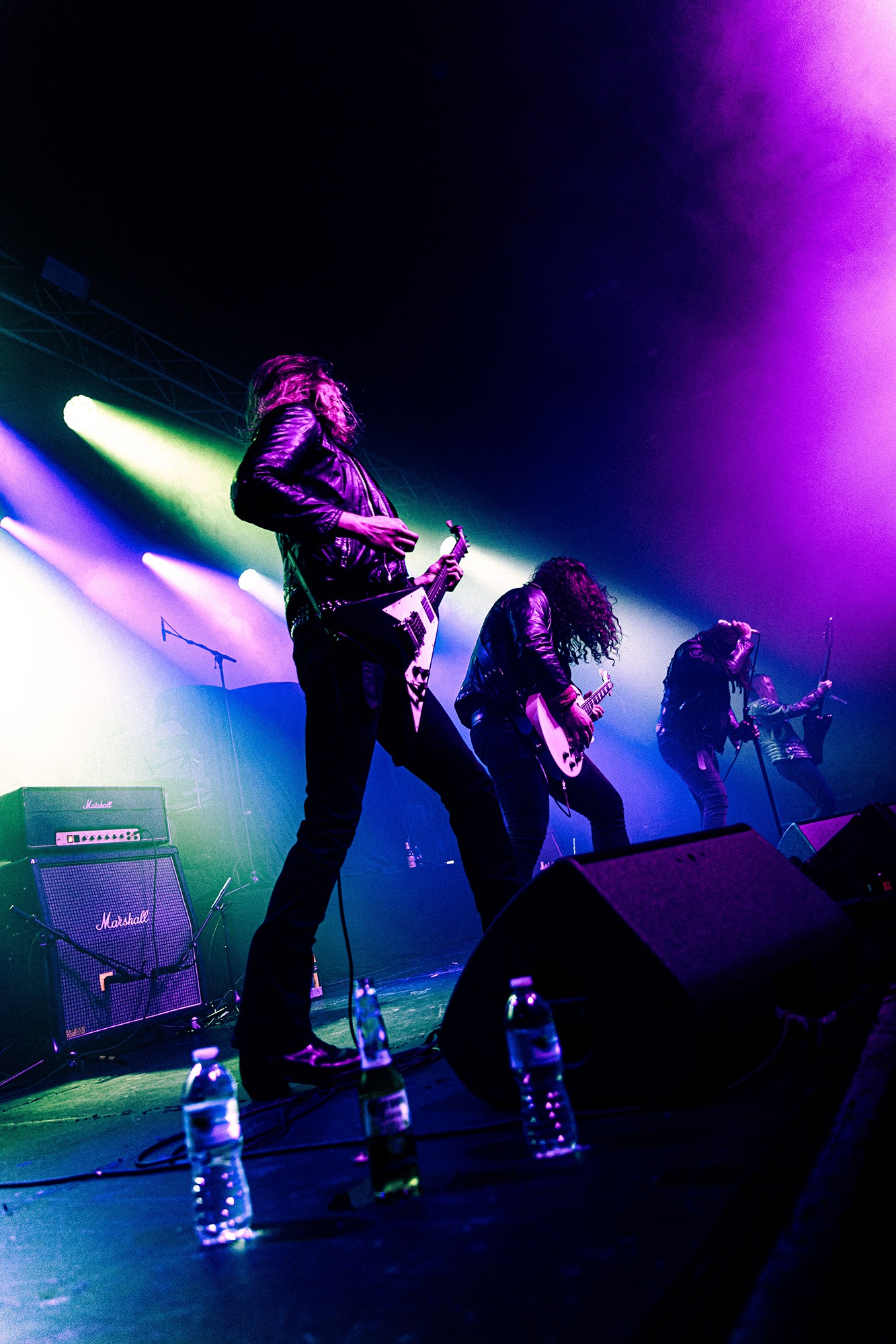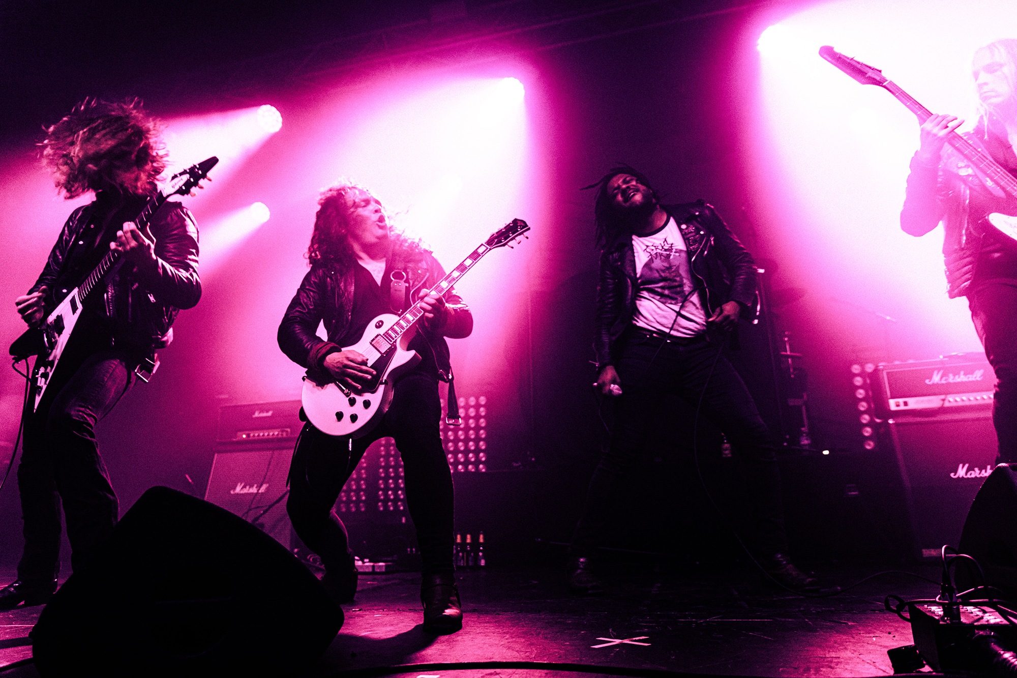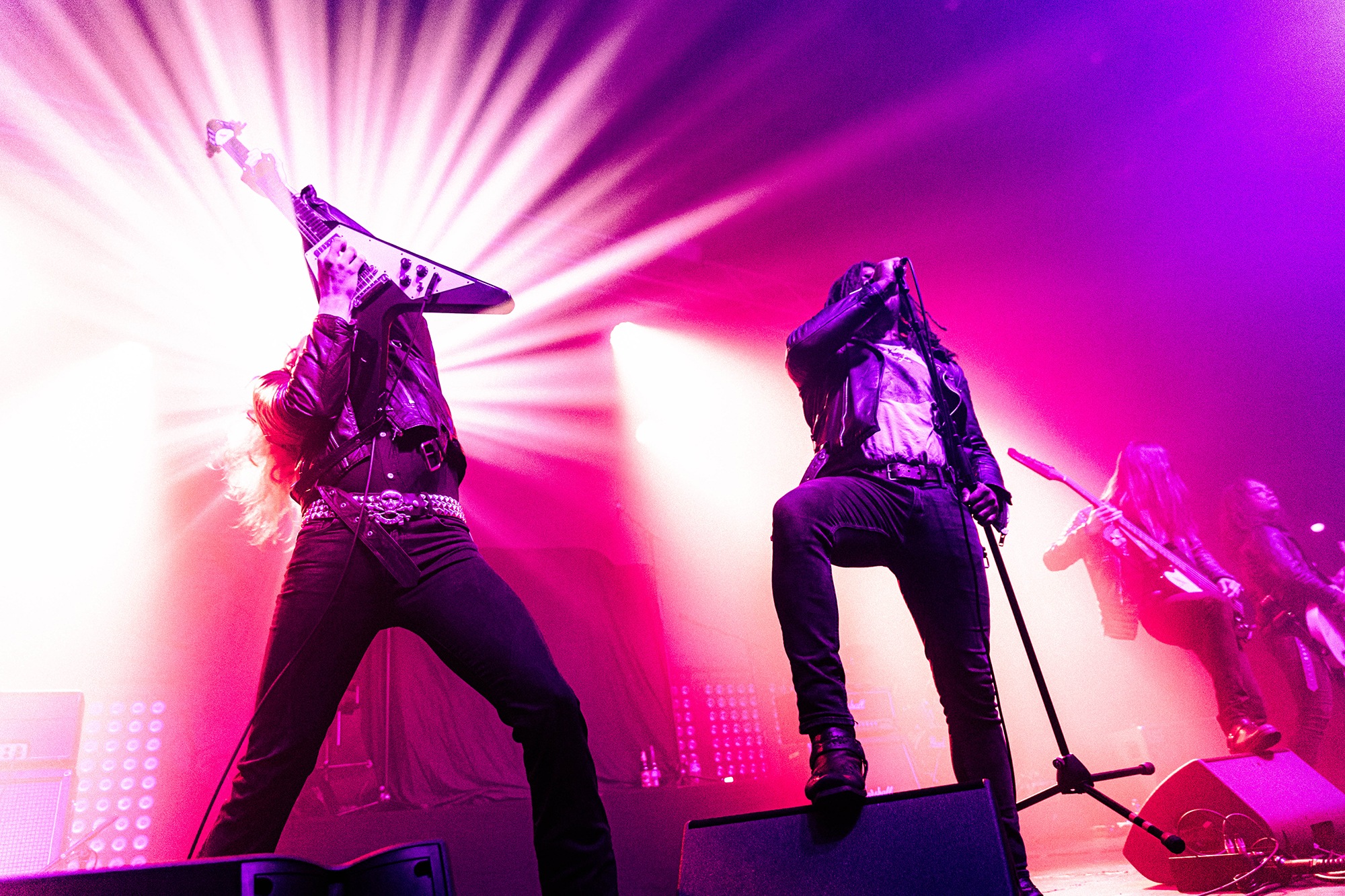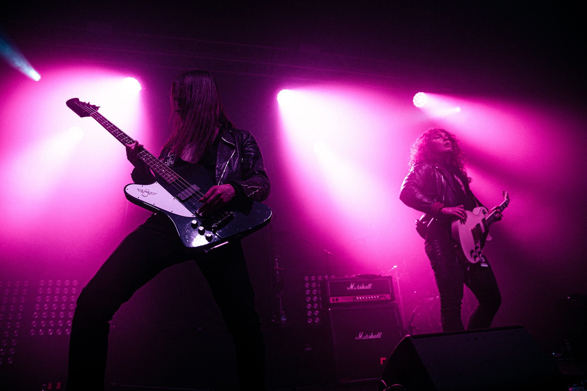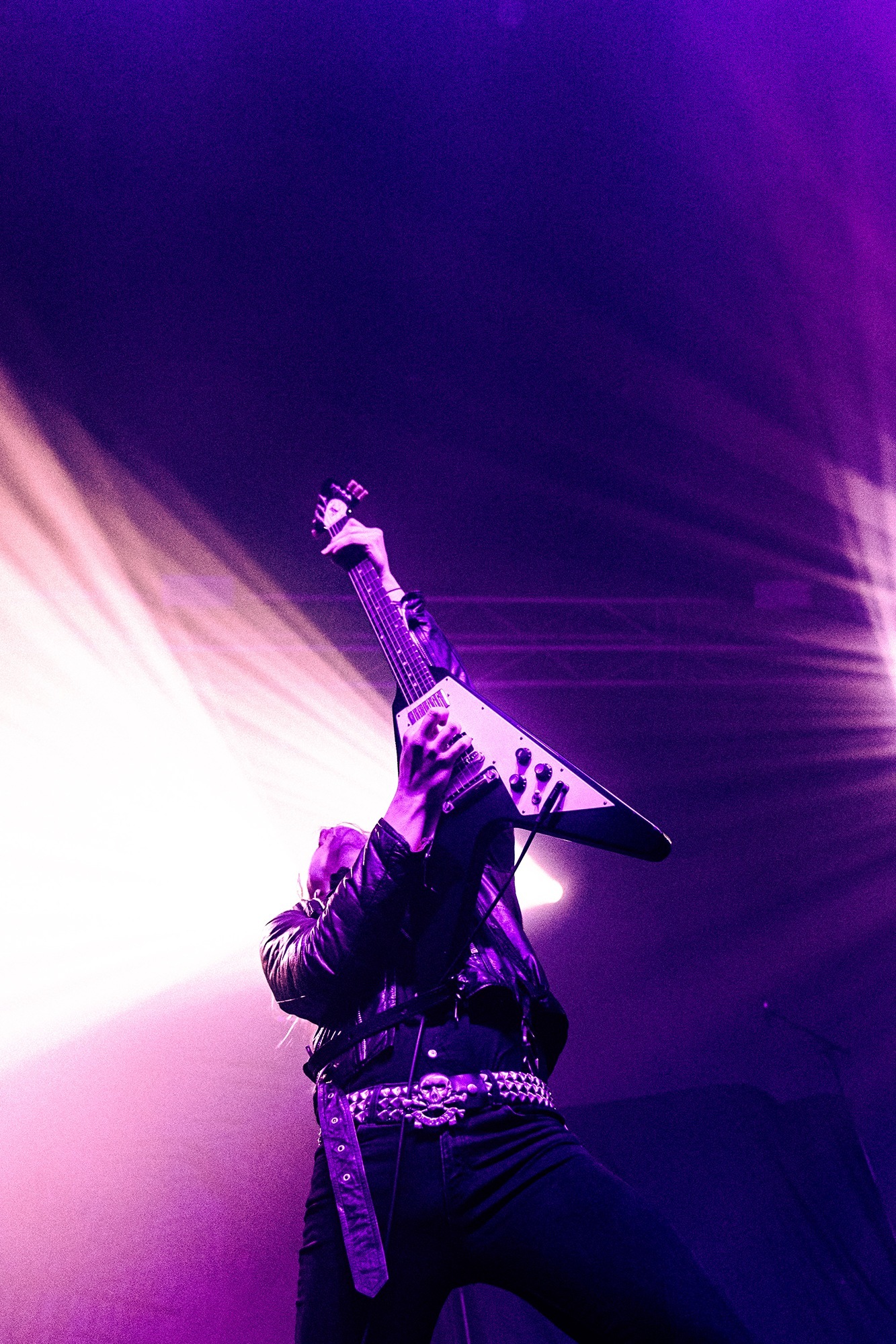 As sole support, there’s a lot riding on fellow countrymen THE NIGHT ETERNAL to kick start the evening with a bang and with a sizeable crowd inside Manchester’s Academy to greet them, it could have been easy for the Germans to wilt under the pressure. But thanks a bombastic, no-nonsense thrills homage to 80s heavy metal, the band hit the ground running. Over the course of their eight song set, guitarists Rob Richter and Henry Käseberg dual and gallop as they deploy riff after riff and in Ricardo Baum, the frontman channels the heroes of yesteryear with an energetic stage presence and soaring vocals to boot. Whilst their sound is far from ground-breaking or truly innovative, THE NIGHT ETERNAL deliver denim and leather in fine fashion and their warm reception from the crowd amassed in front of them shows they will be welcome back on our shores with open arms.