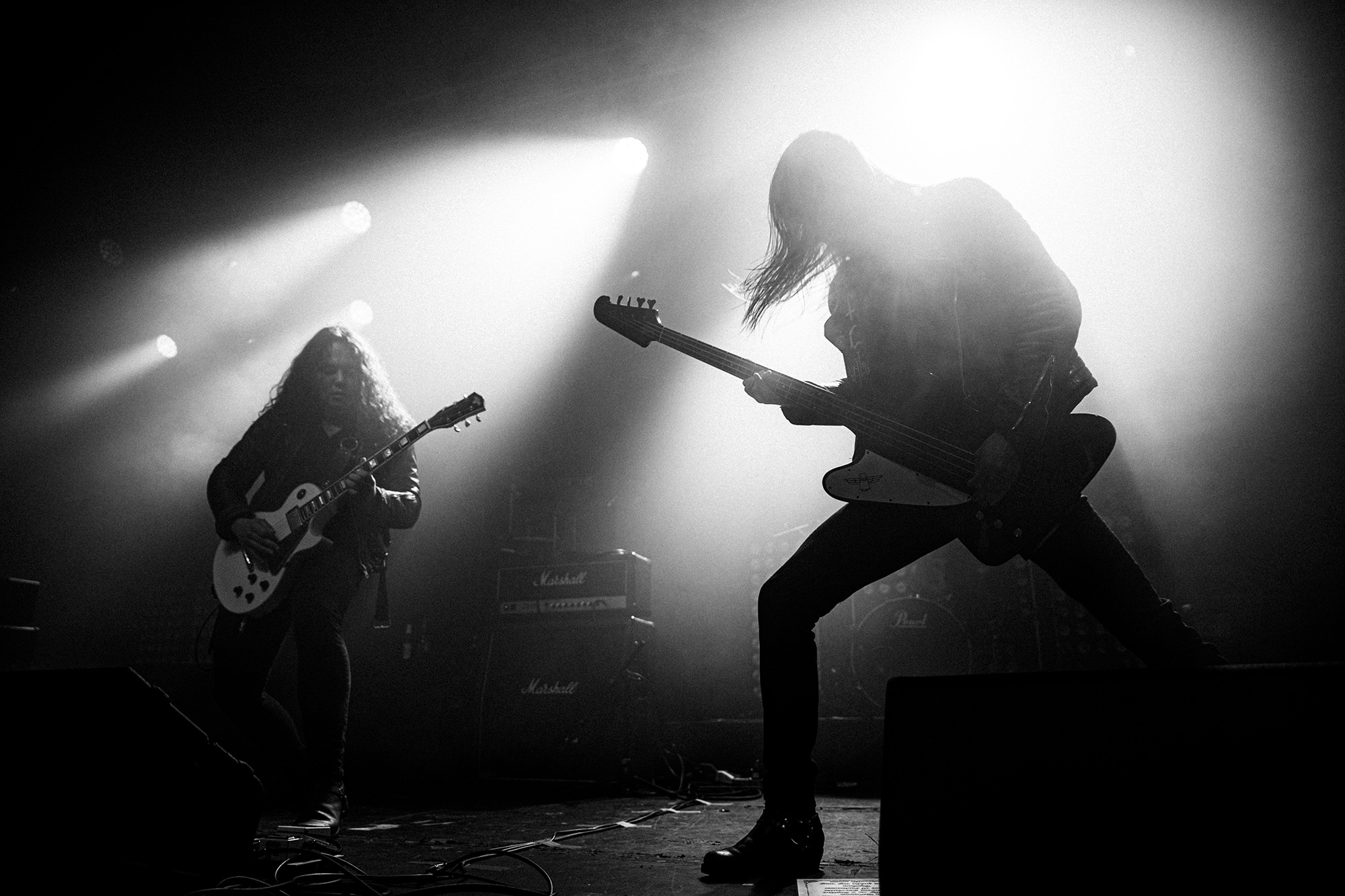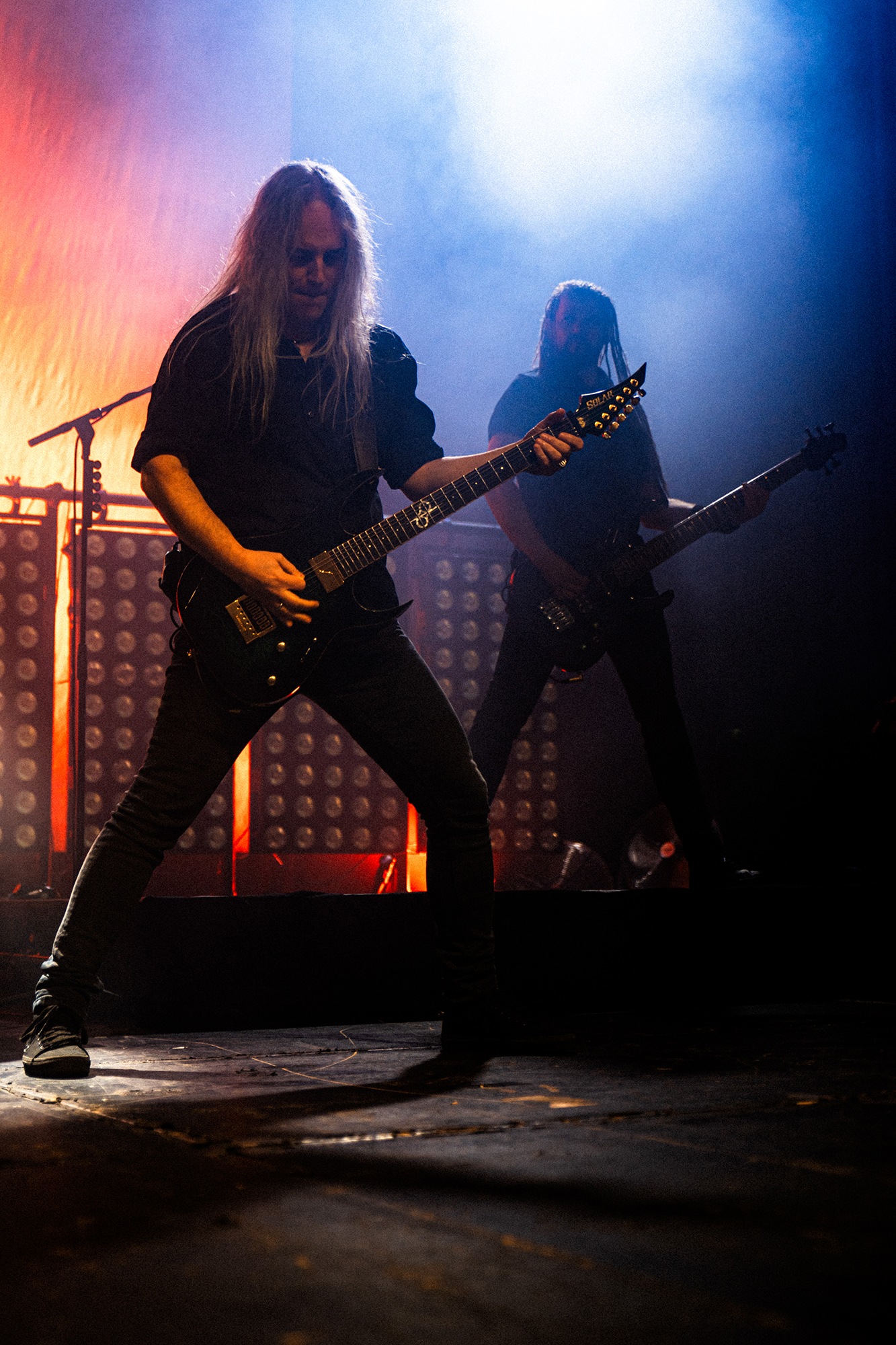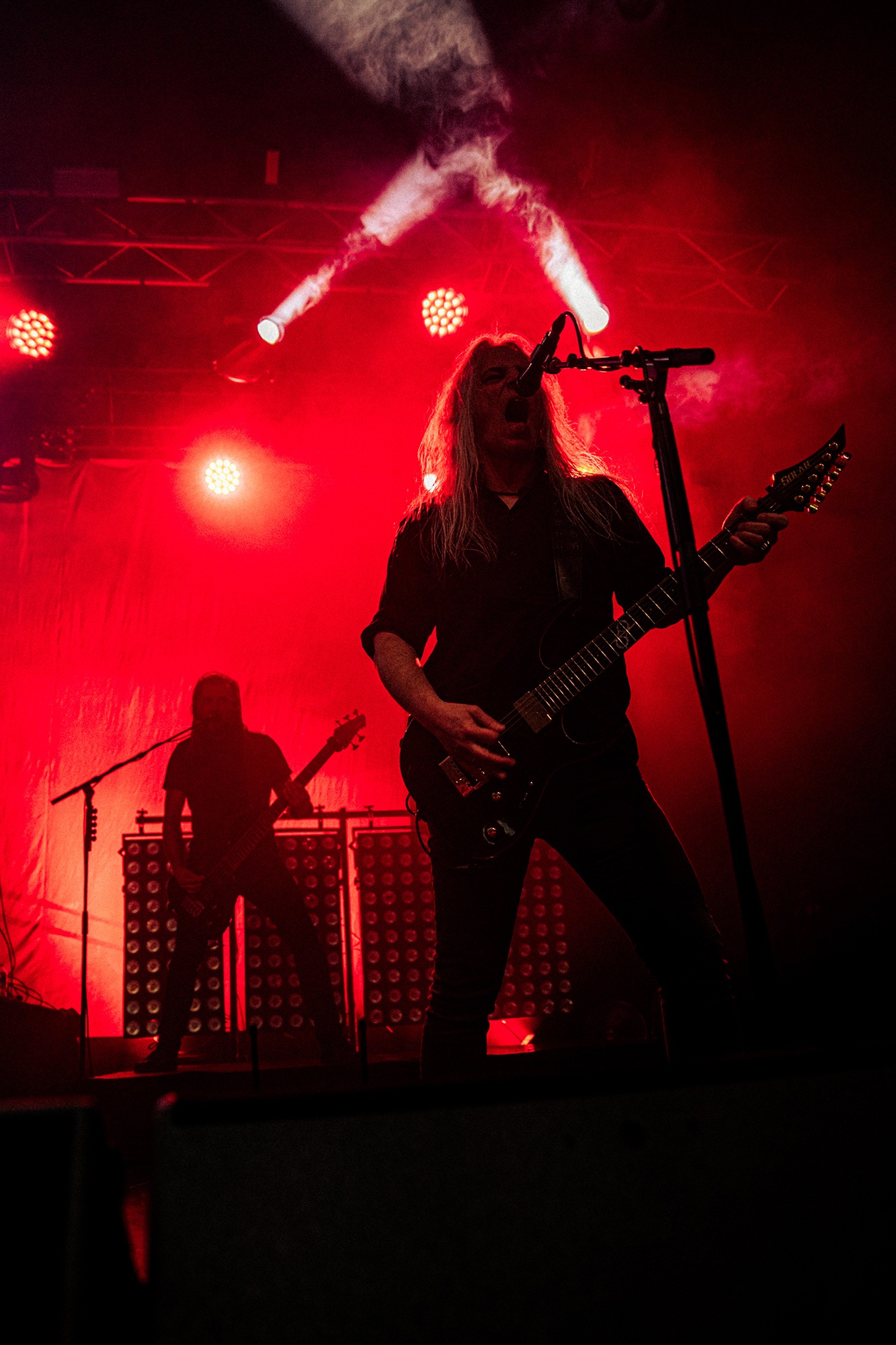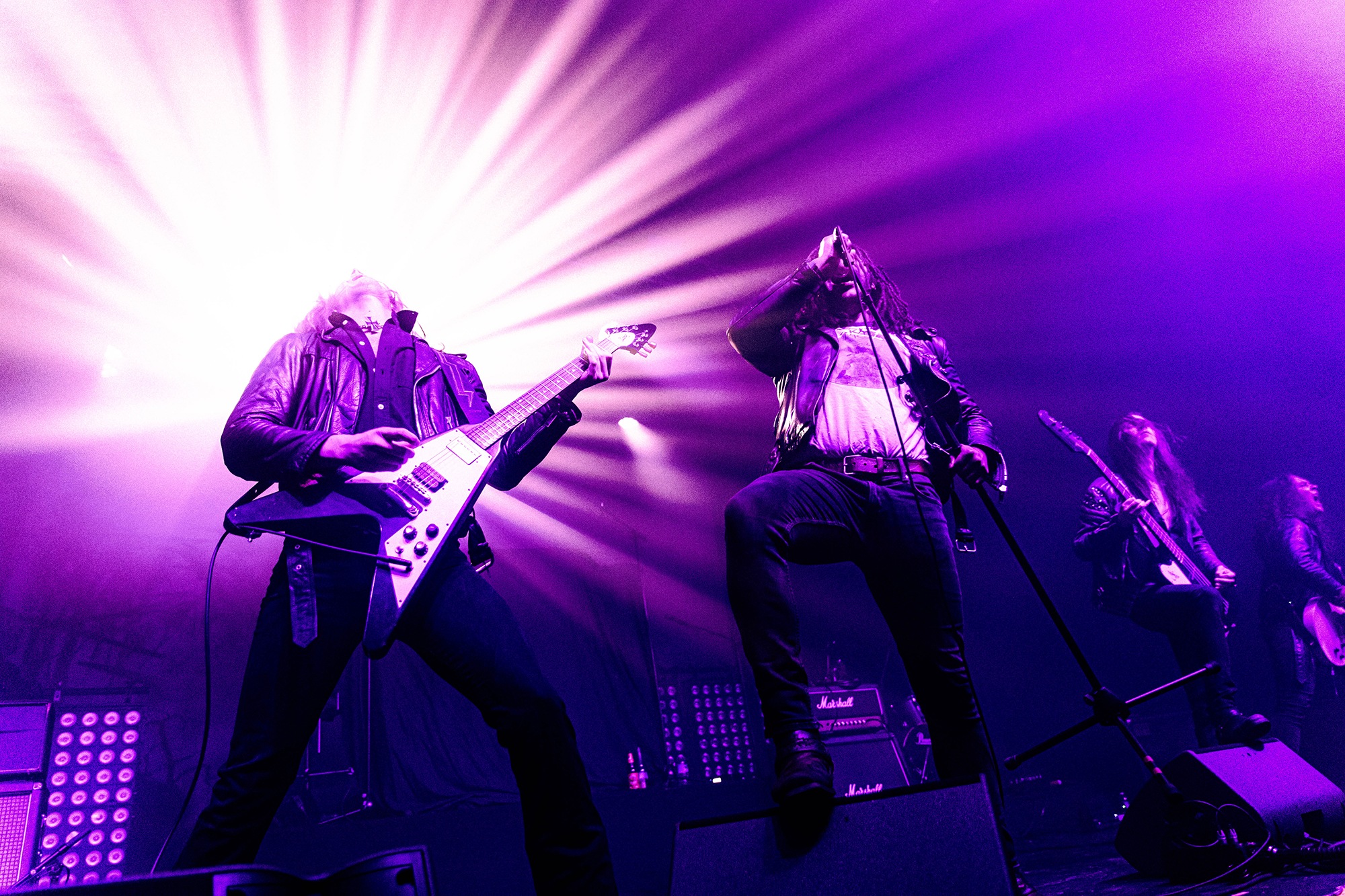 As sole support, there’s a lot riding on fellow countrymen THE NIGHT ETERNAL to kick start the evening with a bang and with a sizeable crowd inside Manchester’s Academy to greet them, it could have been easy for the Germans to wilt under the pressure. But thanks a bombastic, no-nonsense thrills homage to 80s heavy metal, the band hit the ground running. Over the course of their eight song set, guitarists Rob Richter and Henry Käseberg dual and gallop as they deploy riff after riff and in Ricardo Baum, the frontman channels the heroes of yesteryear with an energetic stage presence and soaring vocals to boot. Whilst their sound is far from ground-breaking or truly innovative, THE NIGHT ETERNAL deliver denim and leather in fine fashion and their warm reception from the crowd amassed in front of them shows they will be welcome back on our shores with open arms.