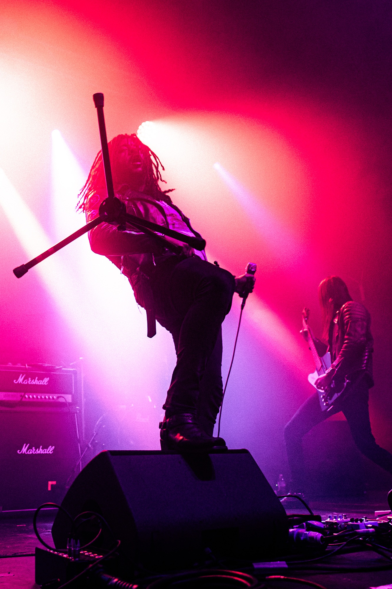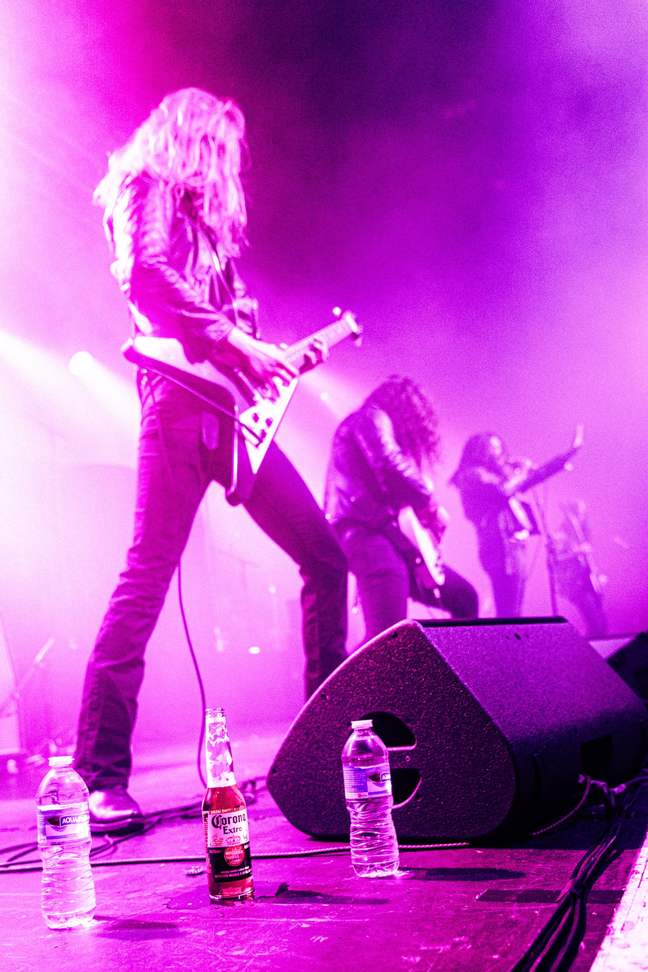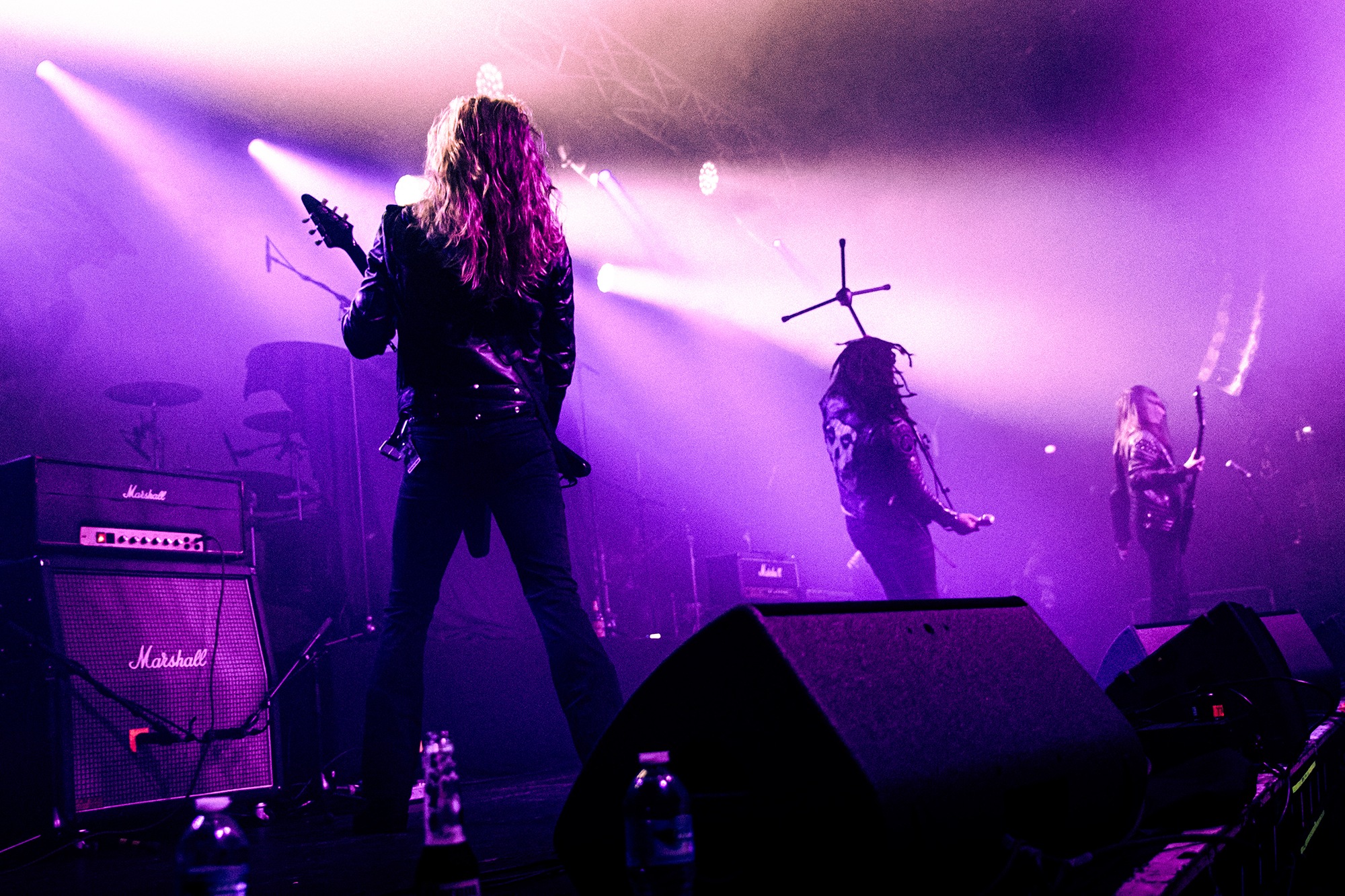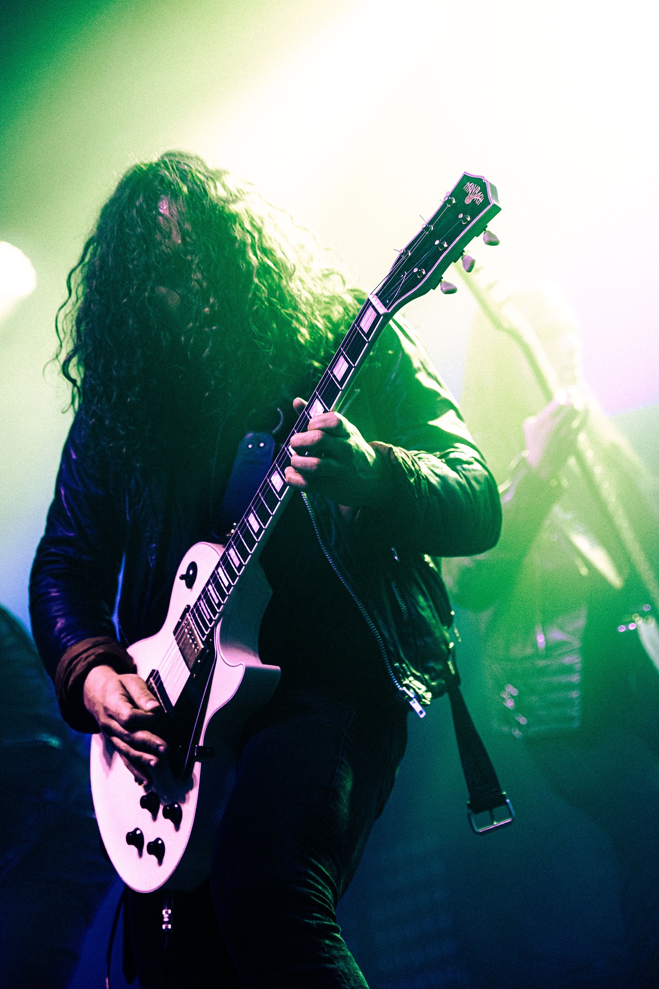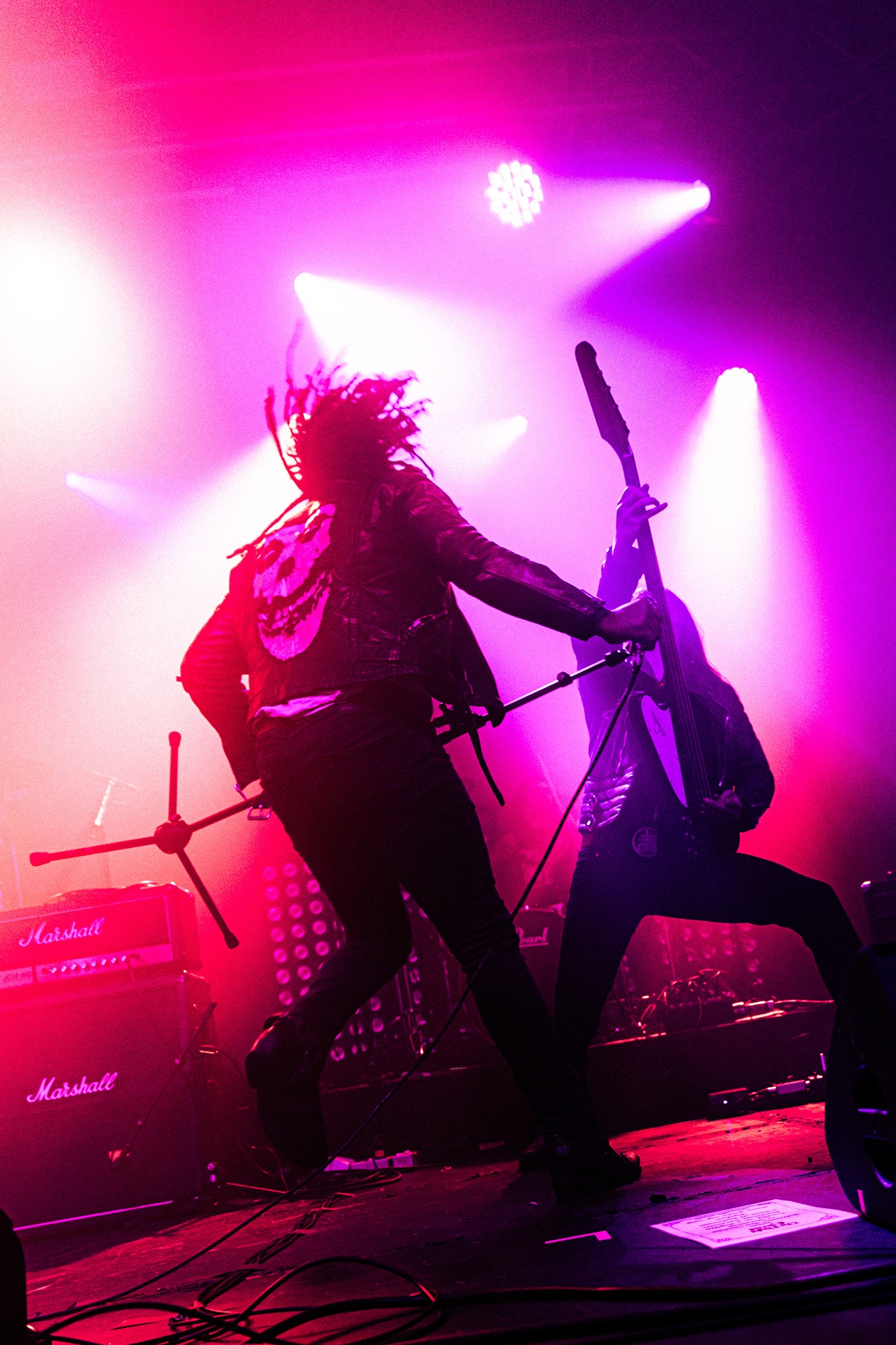 As sole support, there’s a lot riding on fellow countrymen THE NIGHT ETERNAL to kick start the evening with a bang and with a sizeable crowd inside Manchester’s Academy to greet them, it could have been easy for the Germans to wilt under the pressure. But thanks a bombastic, no-nonsense thrills homage to 80s heavy metal, the band hit the ground running. Over the course of their eight song set, guitarists Rob Richter and Henry Käseberg dual and gallop as they deploy riff after riff and in Ricardo Baum, the frontman channels the heroes of yesteryear with an energetic stage presence and soaring vocals to boot. Whilst their sound is far from ground-breaking or truly innovative, THE NIGHT ETERNAL deliver denim and leather in fine fashion and their warm reception from the crowd amassed in front of them shows they will be welcome back on our shores with open arms.