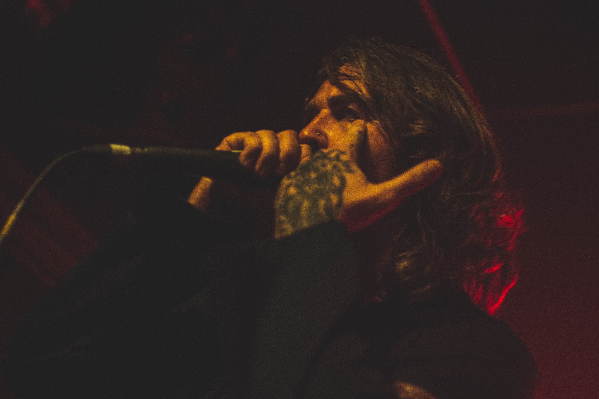 Next to the stage are Northern metallic hardcore mob DIVINE HATRED. From the start you’re lured into a false sense of security as frontman Bradlee Clarkson dances around on stage during the intro with a huge grin on his face before the band kick things up a notch and the crowd is met with a scathing roar. The guitars and bass are as punishing as the drums are fast and pounding, all of this ties together wonderfully to deliver an unrelenting onslaught to the sense that leaves you craving just a little bit more.