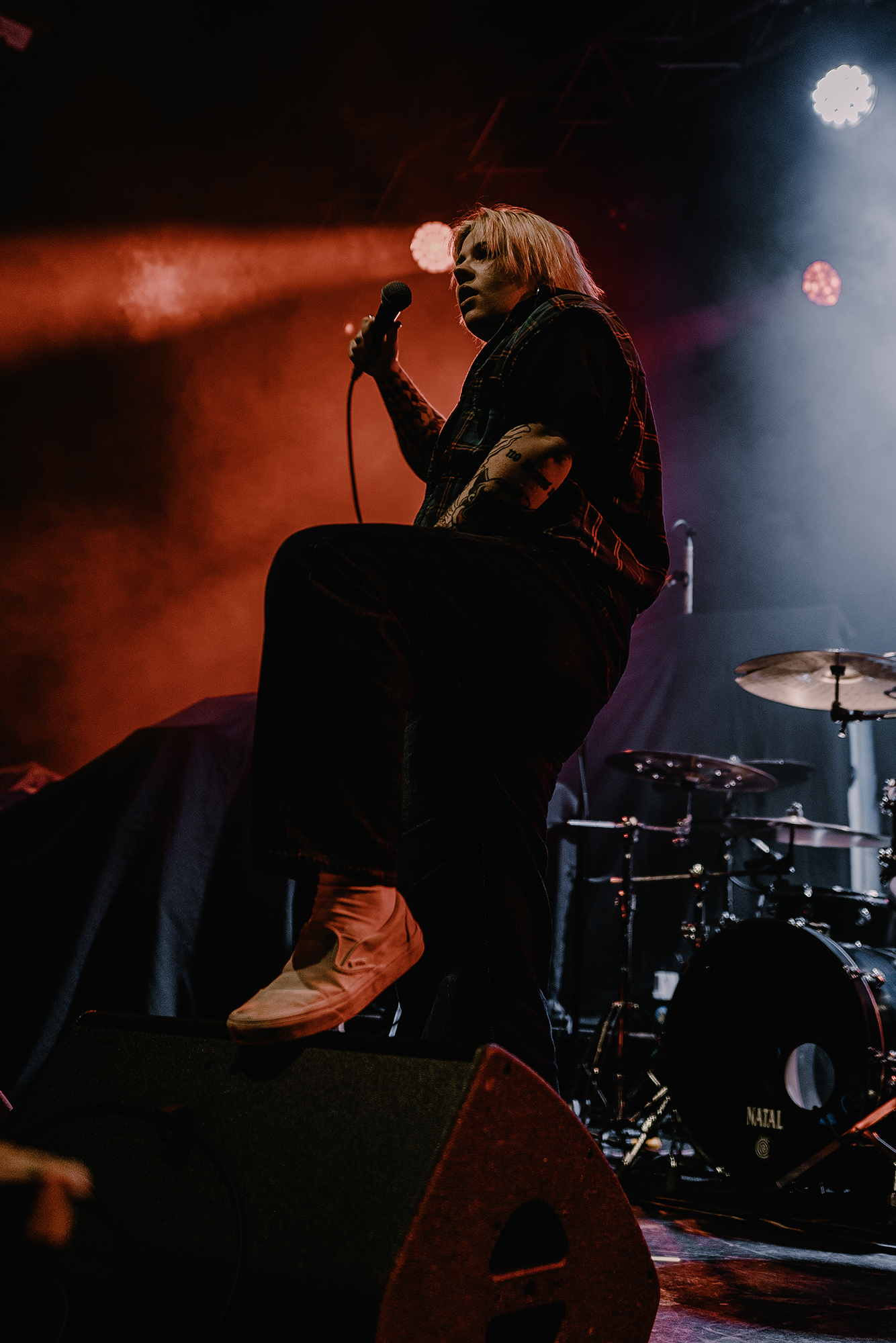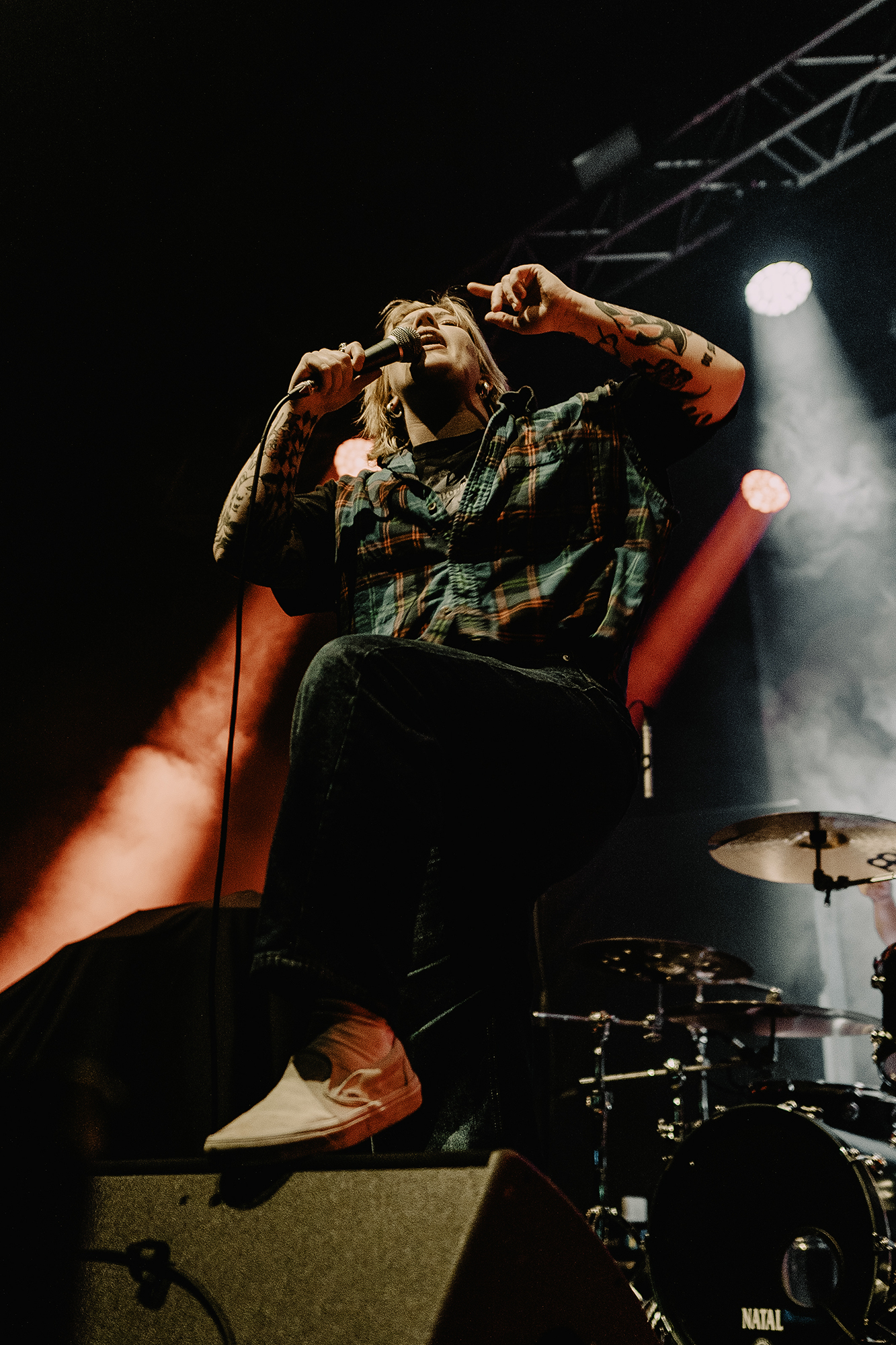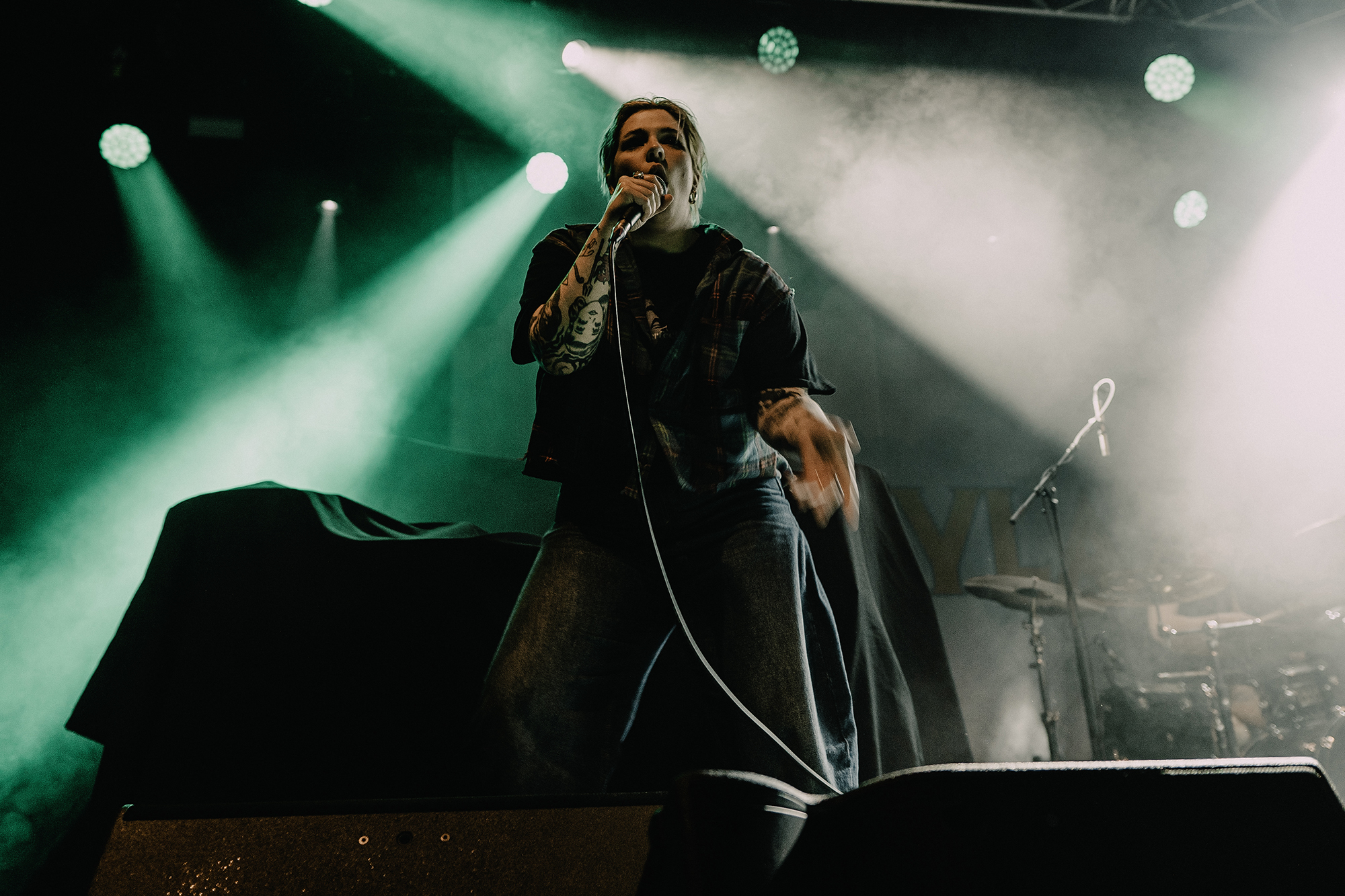 Brighton-based trio CLT DRP (pronounced “clit drip”) opened the night with a unique blend of punk, electronica, and heavy pop that hit the crowd like a shot of adrenaline. As the audience filtered in, lead singer Annie Dorrett took command of the stage with fierce, shouty vocals that rippled through the room, setting the perfect tone for the night. Their sound was both raw and refined, filling the big stage effortlessly, and they slotted into this line up perfectly. Having previously toured with bands like WARGASM and HERIOT, CLT DRP are clearly carving their own path—and judging by this set, it’s one you don’t want to miss. The band wrapped up their set with one of my stand out songs of their set, Nothing Clever, Just Feelings, a gritty, electronic tune which features the lyrics, “I’m still trying to win you over.” As the final notes rang out, the singer asked, “What do you say, Manchester? Did we win you over?”, and we can confidently say they did.