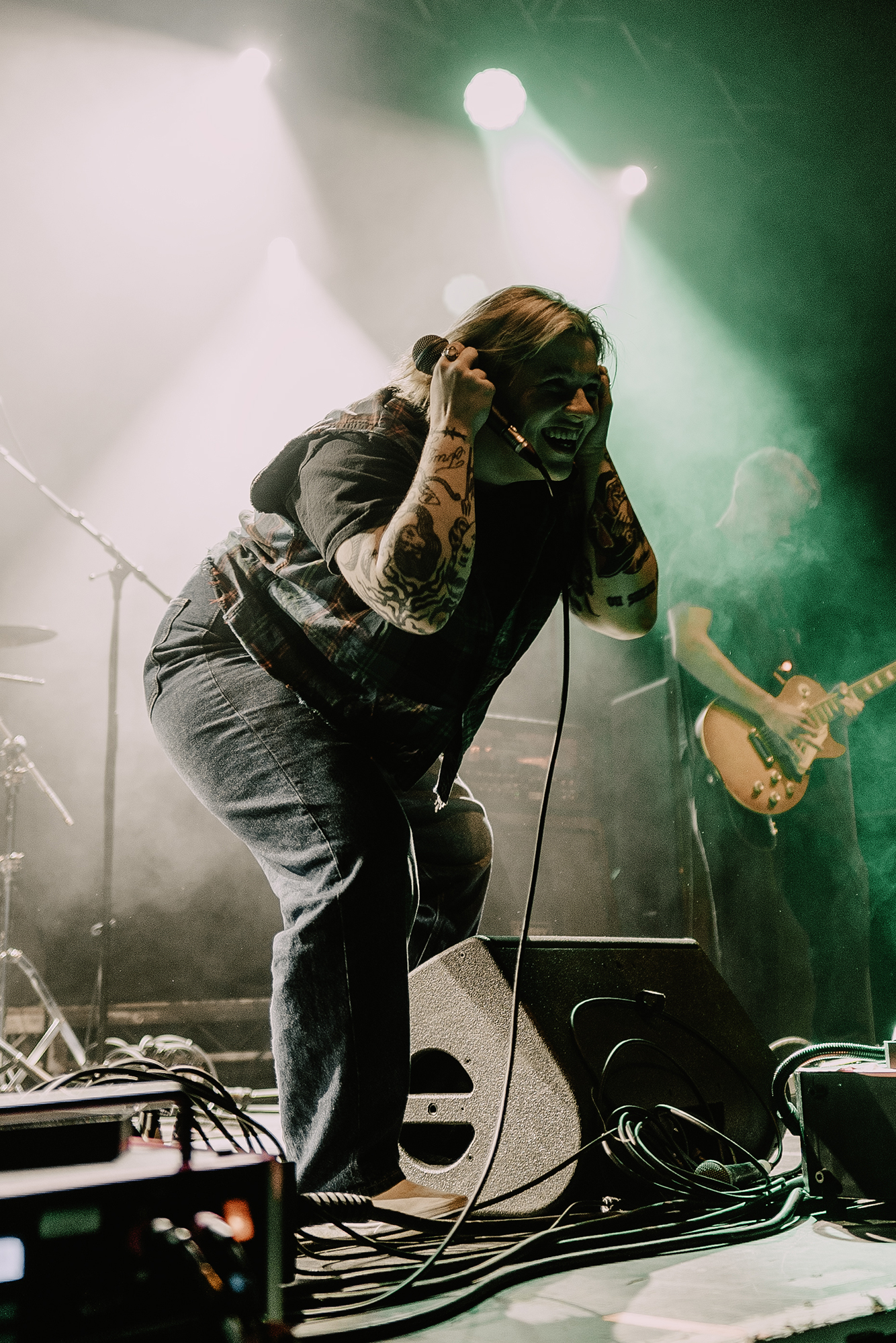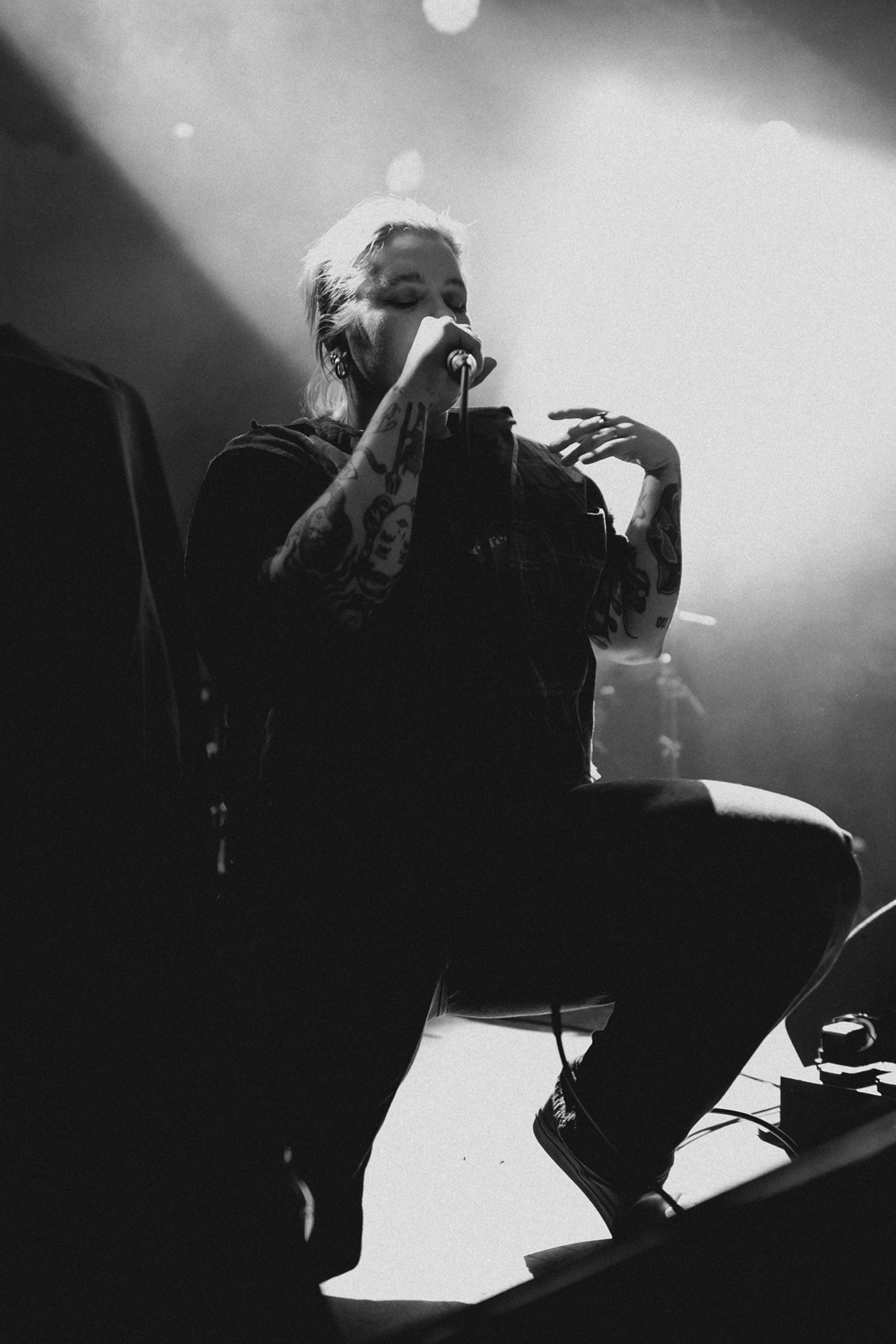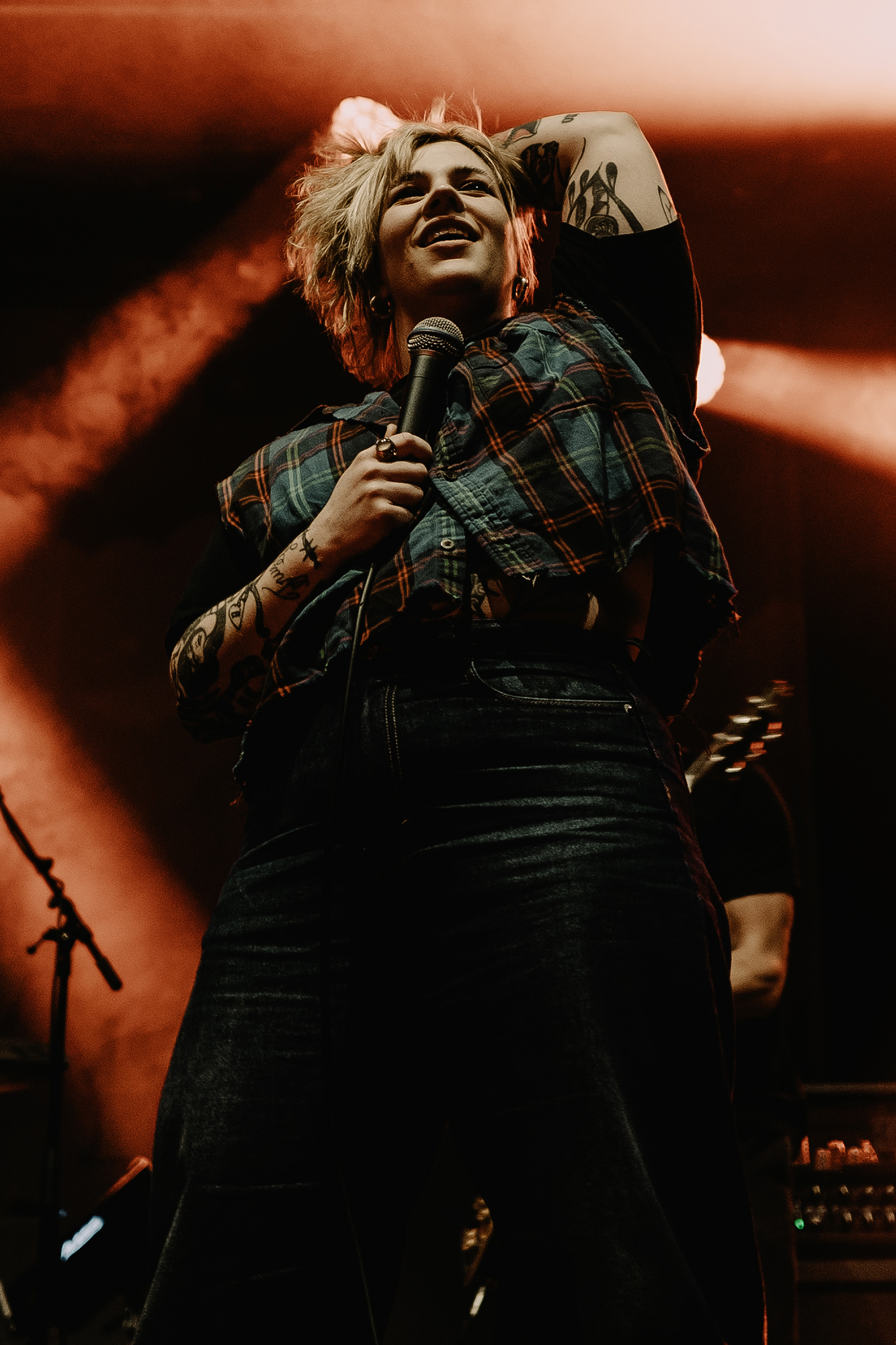 Brighton-based trio CLT DRP (pronounced “clit drip”) opened the night with a unique blend of punk, electronica, and heavy pop that hit the crowd like a shot of adrenaline. As the audience filtered in, lead singer Annie Dorrett took command of the stage with fierce, shouty vocals that rippled through the room, setting the perfect tone for the night. Their sound was both raw and refined, filling the big stage effortlessly, and they slotted into this line up perfectly. Having previously toured with bands like WARGASM and HERIOT, CLT DRP are clearly carving their own path—and judging by this set, it’s one you don’t want to miss. The band wrapped up their set with one of my stand out songs of their set, Nothing Clever, Just Feelings, a gritty, electronic tune which features the lyrics, “I’m still trying to win you over.” As the final notes rang out, the singer asked, “What do you say, Manchester? Did we win you over?”, and we can confidently say they did.