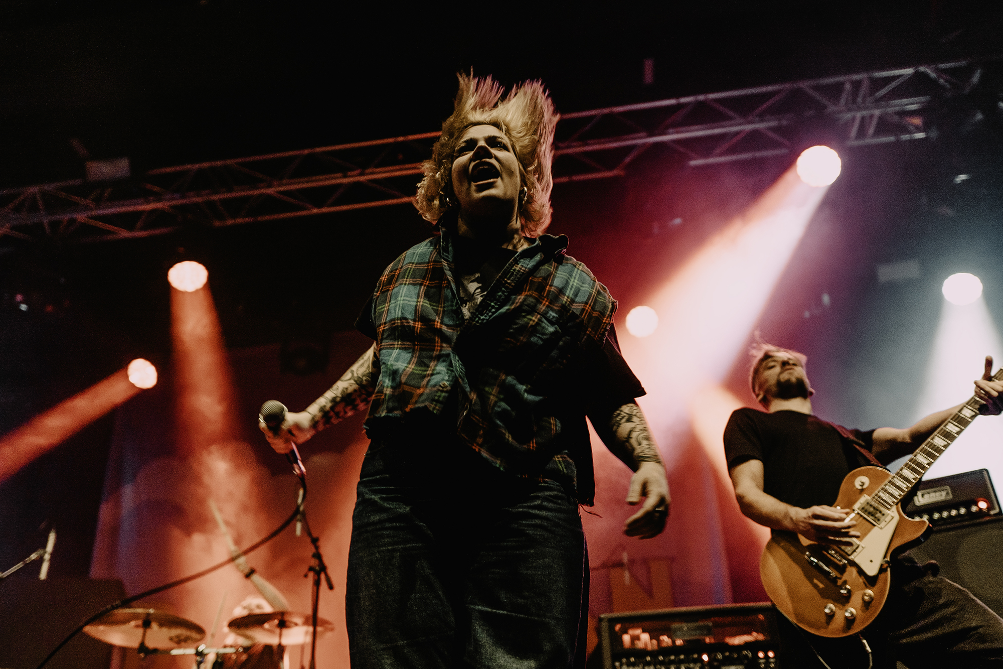 Finally, the moment everyone’s been waiting for – BOB VYLAN took the stage, and the energy is instant. Entering to THE BEATLES Here Comes The Sun, which perfectly nods to their latest album and reason for this tour, Humble As The Sun, and kicks off the set with a sense of bright anticipation. They open, as all BOB VYLAN shows do, with a unique warm-up: light stretching and a brief guided meditation. It’s a surprising ritual for a punk gig, but the crowd embraces it, swaying, toe-tapping along and gearing up for what’s clearly the calm before the storm.