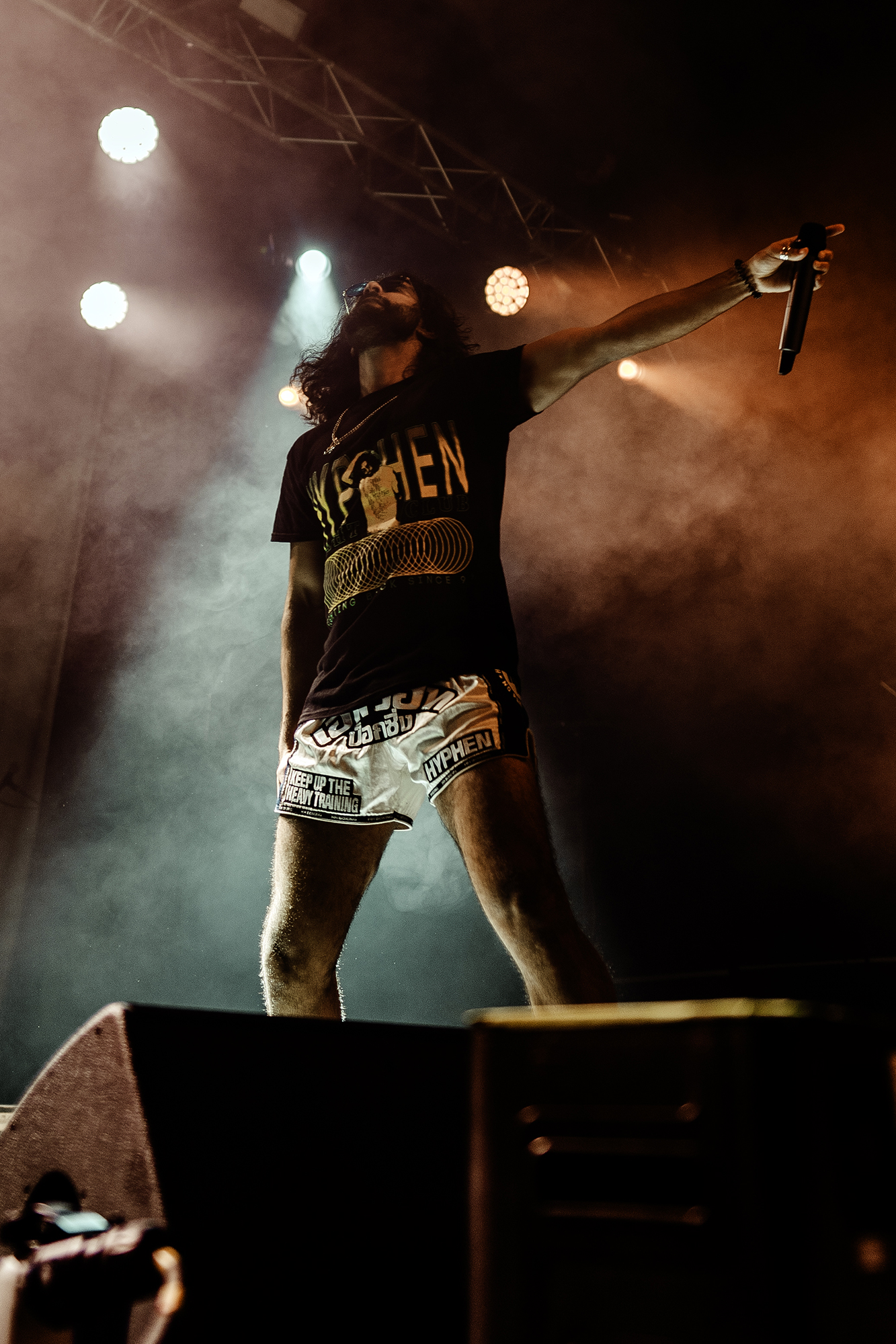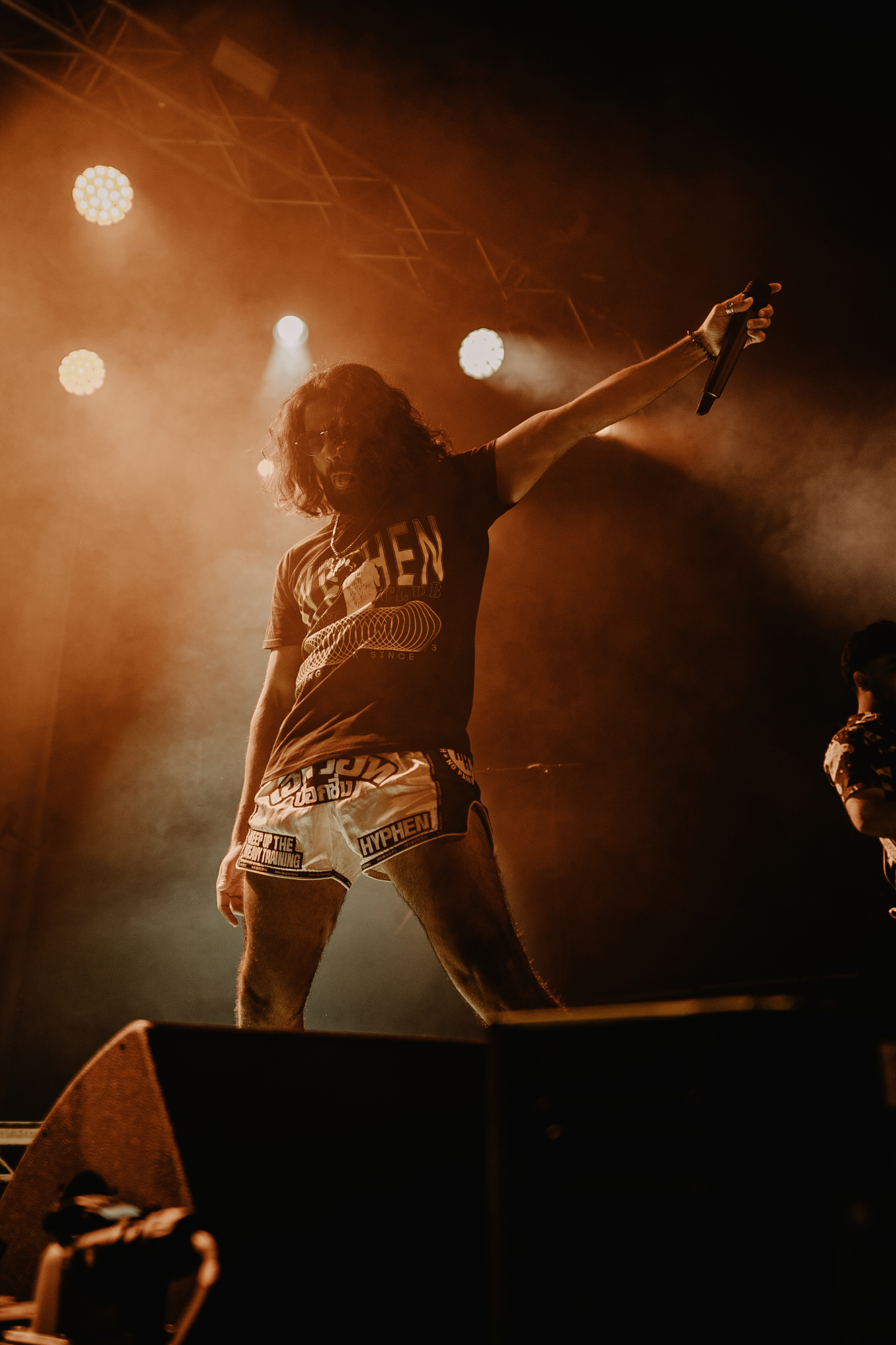 If there was any doubt HYPHEN would leave an impression, they shattered it the second they walked on stage to the sounds of the BACKSTREET BOYS, with their singer, Mr Hyphen himself, rocking some gloriously tiny shorts. From the get-go, this band had personality – and they weren’t shy about it. HYPHEN brought a refreshing blend of rap and hip-hop, as well as punk, and indie themes to the stage, delivering a brilliantly passionate set that crackled with energy and authenticity.