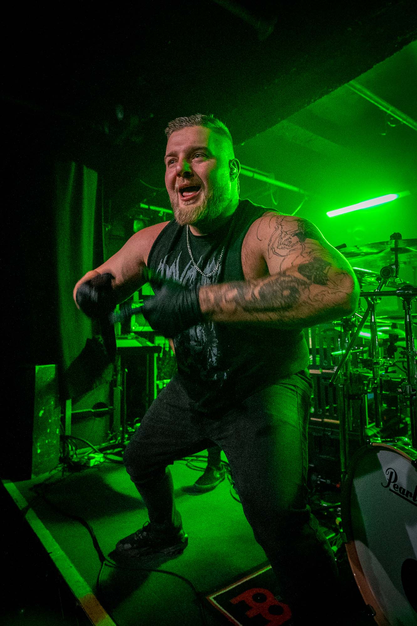 LARCENIA ROE, emerging from the vibrant landscape of North Carolina, delivered an unapologetic set that transfixed the Mancunian audience. Their sound, a visceral amalgamation of ferocious energy and elemental rawness, took the deathcore genre into their creative. Unlike their touring counterparts, who emphasised technical dexterity, the four-piece fully immersed themselves in a style that paid homage to the unrestrained brutality of early deathcore. With piercing, almost otherworldly screams resonating through the venue, they crafted an unsettling yet electrifying atmosphere that enveloped the cold night, leaving an indelible impression on all who witnessed it.