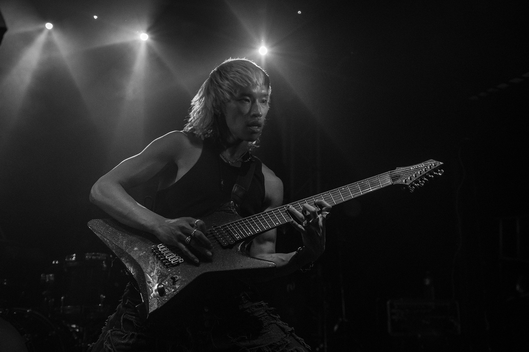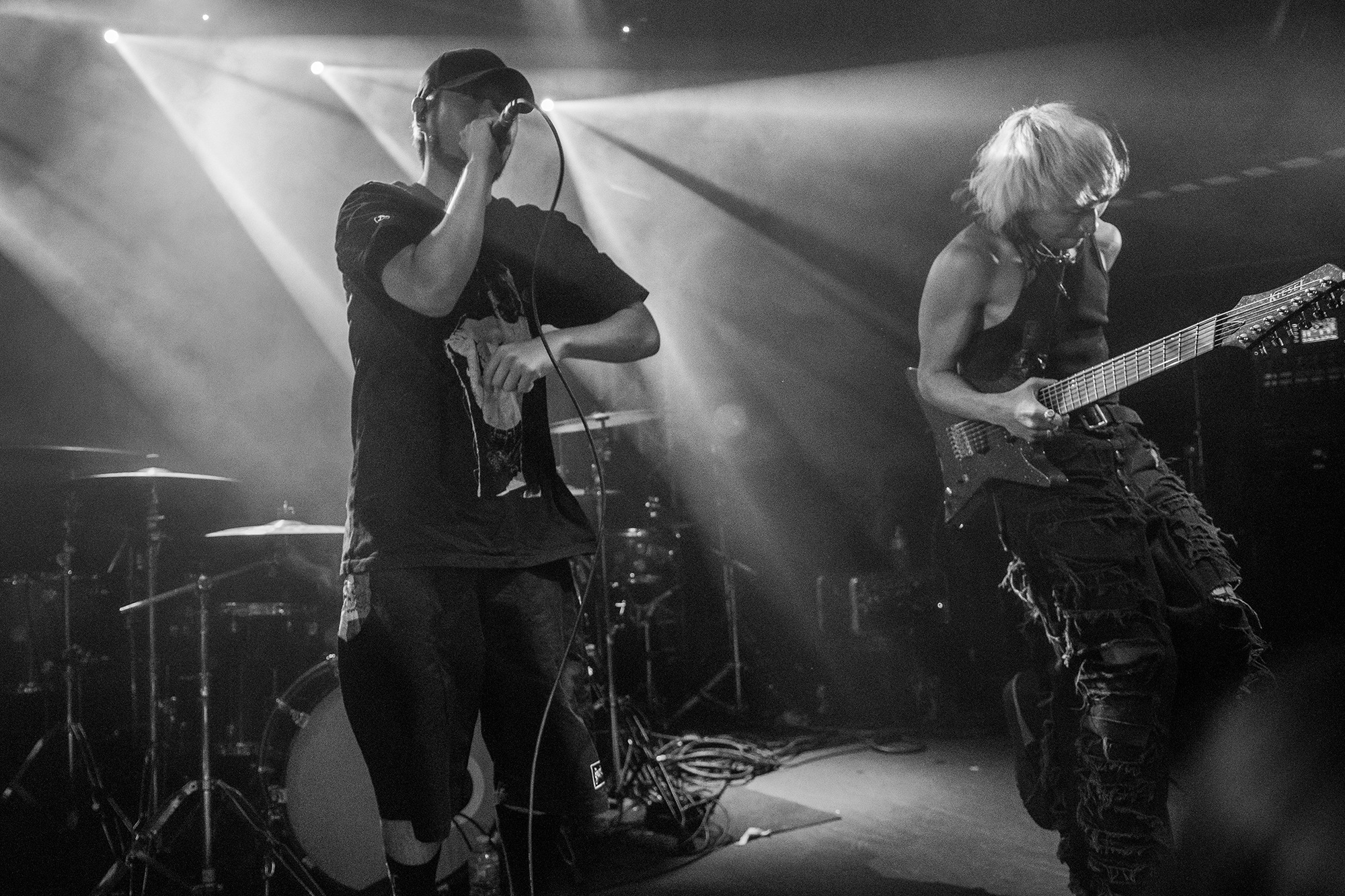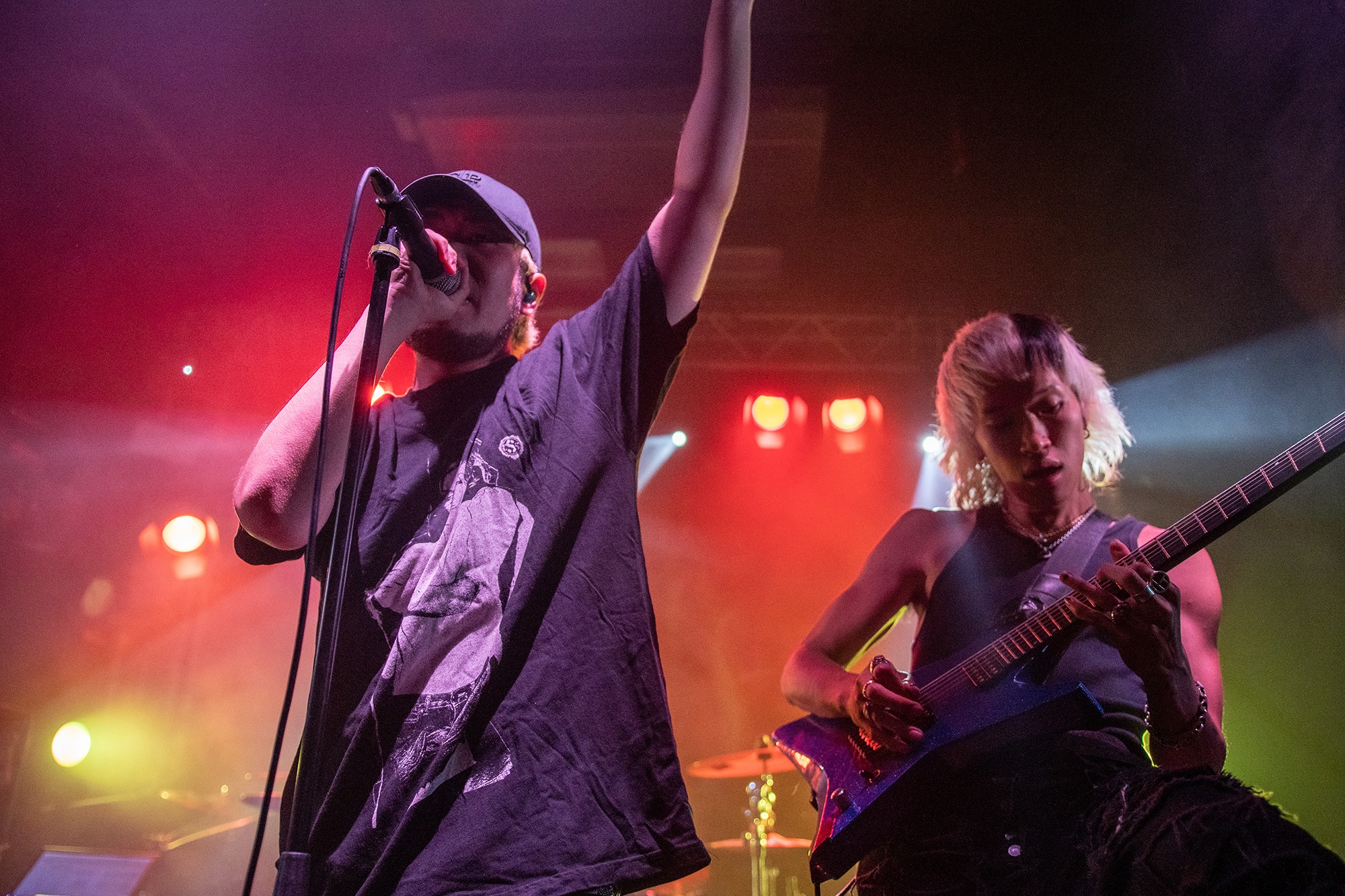 Japan’s PALEDUSK are following up the last of these supporting gigs with a handful of UK headline shows, but they’re not taking these performances on with an air that they’re just warm ups – they want to upstage everyone. Coming on to EMINEM‘s forever great Lose Yourself is an interesting and somewhat comical opening, but it pays off as people laugh instead of cringe, before they’re blasted by nu-metalcore juggernaut Area PD. Like a lot of bands from the Land of the Rising Sun, PALEDUSK are technically proficient, especially guitarist Daisuke Ehara who shreds his ace with expert precision. Not everything hits the spot – Slay!!, featuring rapper Hideyoshi, is a mismatch of styles that doesn’t work and latest single I’m Ready To Die For My Friends is equally as directionless, but by this point PALEDUSK have won everyone over and made an army of new friends.