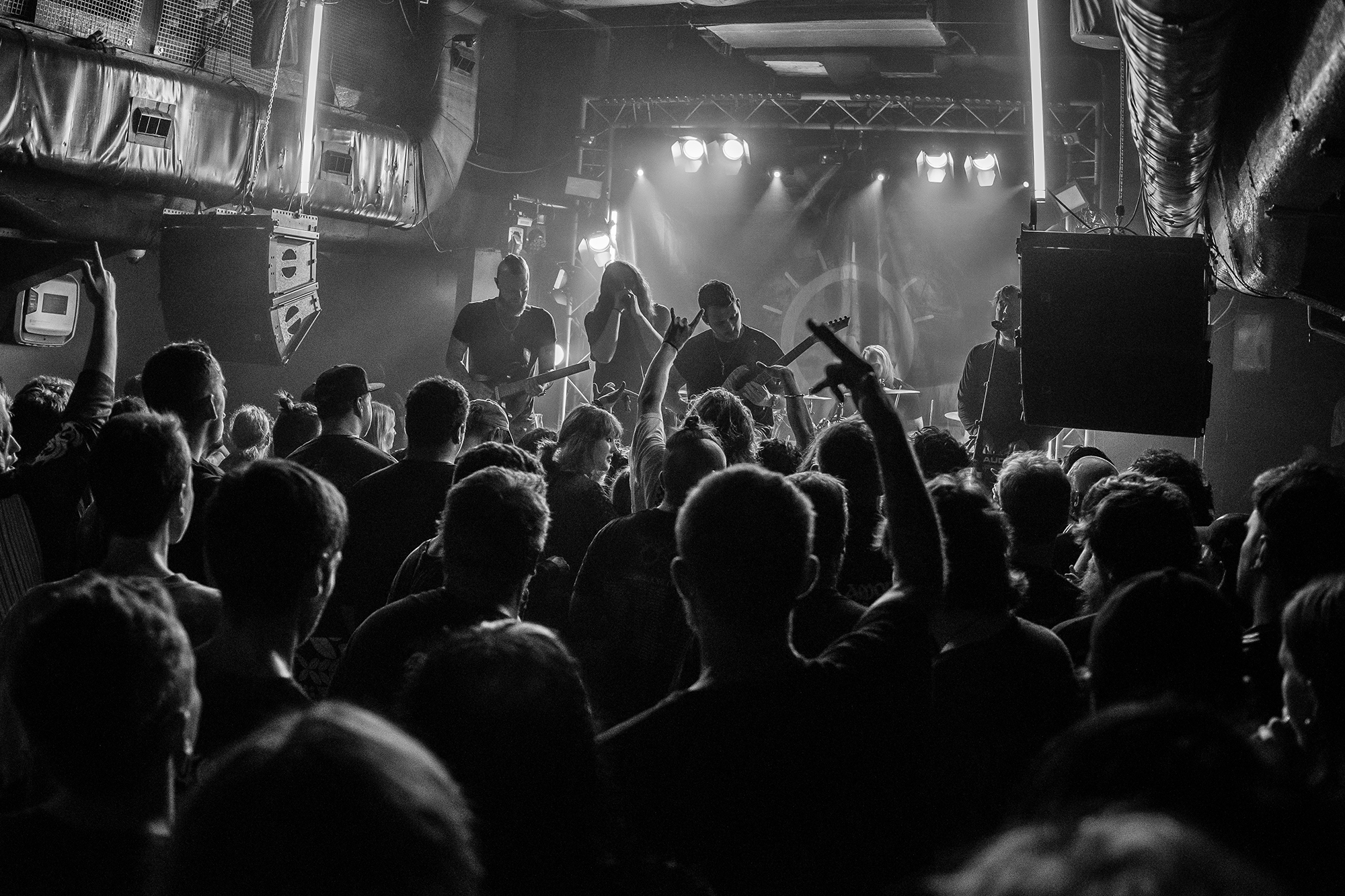 Mondays are difficult, aren’t they? End of the weekend, back to work or education and, in the case of this one on the first full week of July, a change in the weather; the clouds are swirling and growing greyer, with unsettled conditions forecast for the days ahead. Thank goodness, therefore, for this – the final date of a UK leg that has been popping off on every date so far and, although not a sell out, the confines of Bristol’s famous boat venue are packed and full of chatter for BORN OF OSIRIS.