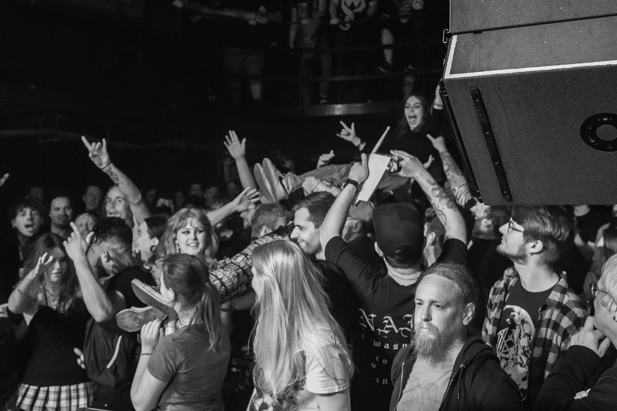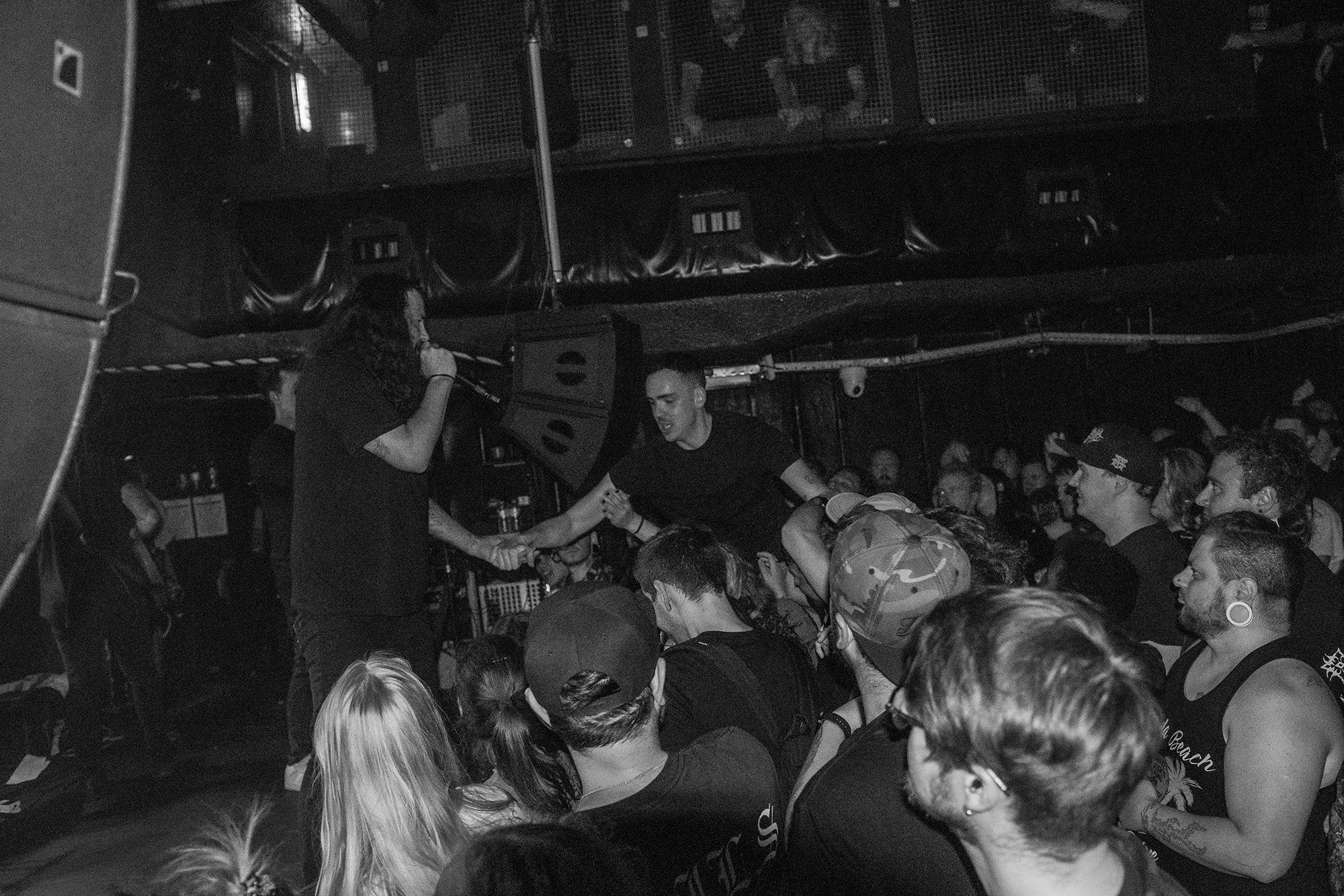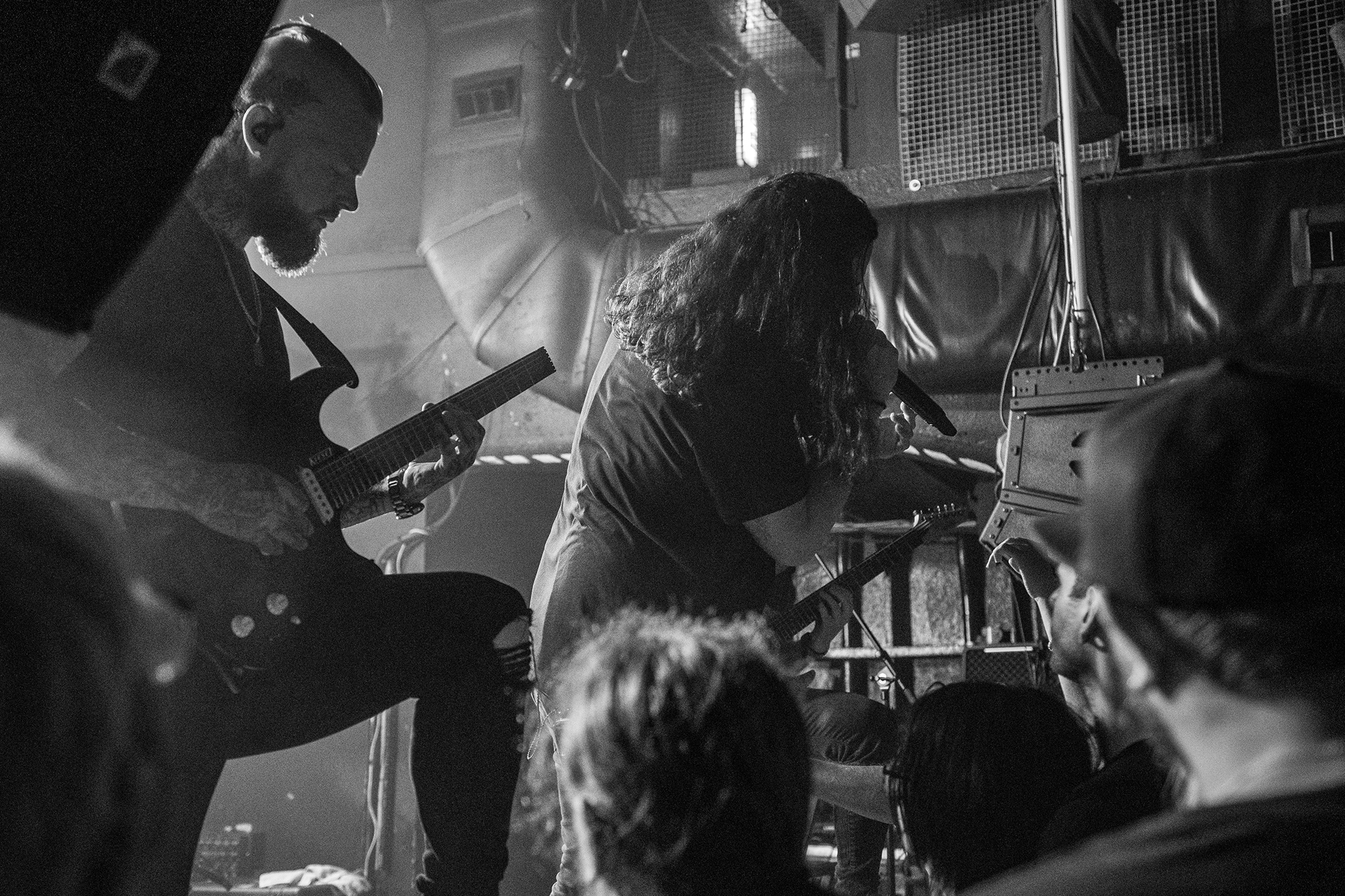 The British flavour on the bill comes in the guise of Birmingham’s OCEANS ATE ALASKA, who receive a hero’s welcome on their entry and the opening double salvo of Metamorph and Paradigm from last year’s Disparity album make for a strong beginning to their 35 minutes of metalcore. However, when Vultures And Sharks from 2015 debut Lost Isles kicks in, that’s when the band go up a gear; it’s followed swiftly by Blood Brothers from the same record and, by now, the room is bouncing, a sea of bodies crashing into one another and giving everything they’ve got – when Shallow Graves drops, the pit reaches it’s most potent and nobody standing within six feet of the edge is safe. Hansha provides a huge singalong and the closing duo of Nova and Escapist bring OCEANS ATE ALASKA back to their present day. Three albums down, they’ve still got a bright future ahead of them.