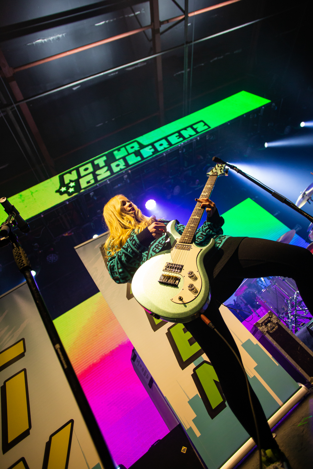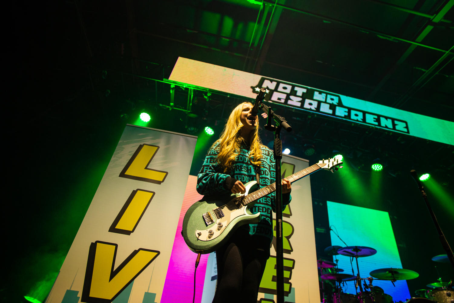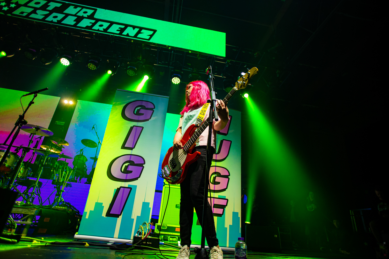 Song About You goes down an absolute treat with its’ instantaneously catchy chorus, as does newer track Game Over, but it’s the opening notes of MY CHEMICAL ROMANCE’s iconic I’m Not Okay (I Promise) that really force the entire room to pay attention, as Haynes’ considerable vocal talents propel the cover along in a slightly differently-paced, but nonetheless vibrant and exciting way. The momentum fully maintains from here on too, as seconds later, the trio change tact to a full-on lights-in-the-air power-balladry of Somehow, without missing a step, before rather appropriately powering onward into the punky stomp of Never Stop. It really speaks to the confidence and ability of the band too, that following No One Asked You Anyway, they bring things to a cheekily satisfying close by cranking out a solid rendition of SPICE GIRLS mega-hit Wannabe, to the apparent delight of about three-quarters of the room, and bemusement of the other quarter. Their set finally at an end, the trio leave the stage seemingly grinning just as much as the O2 Victoria Warehouse crowd. They might be young, but make no mistake, when it comes to classic pop-punk, NOT UR GIRLFRENZ are the real deal.