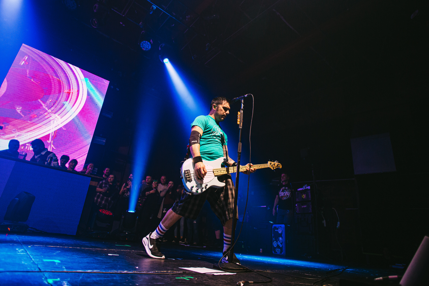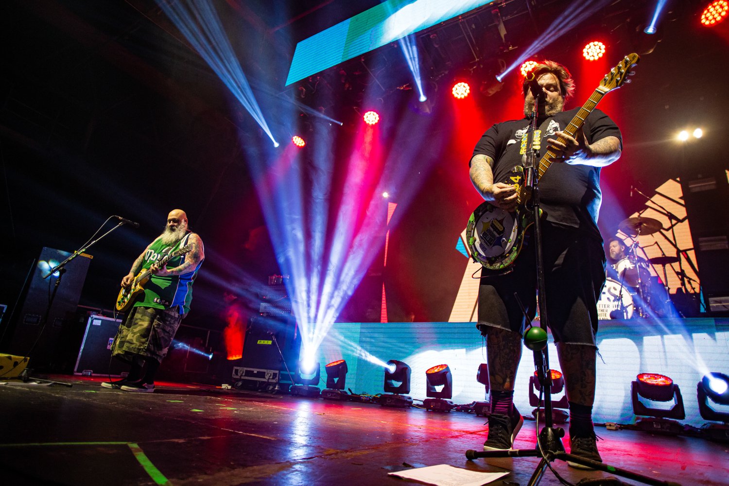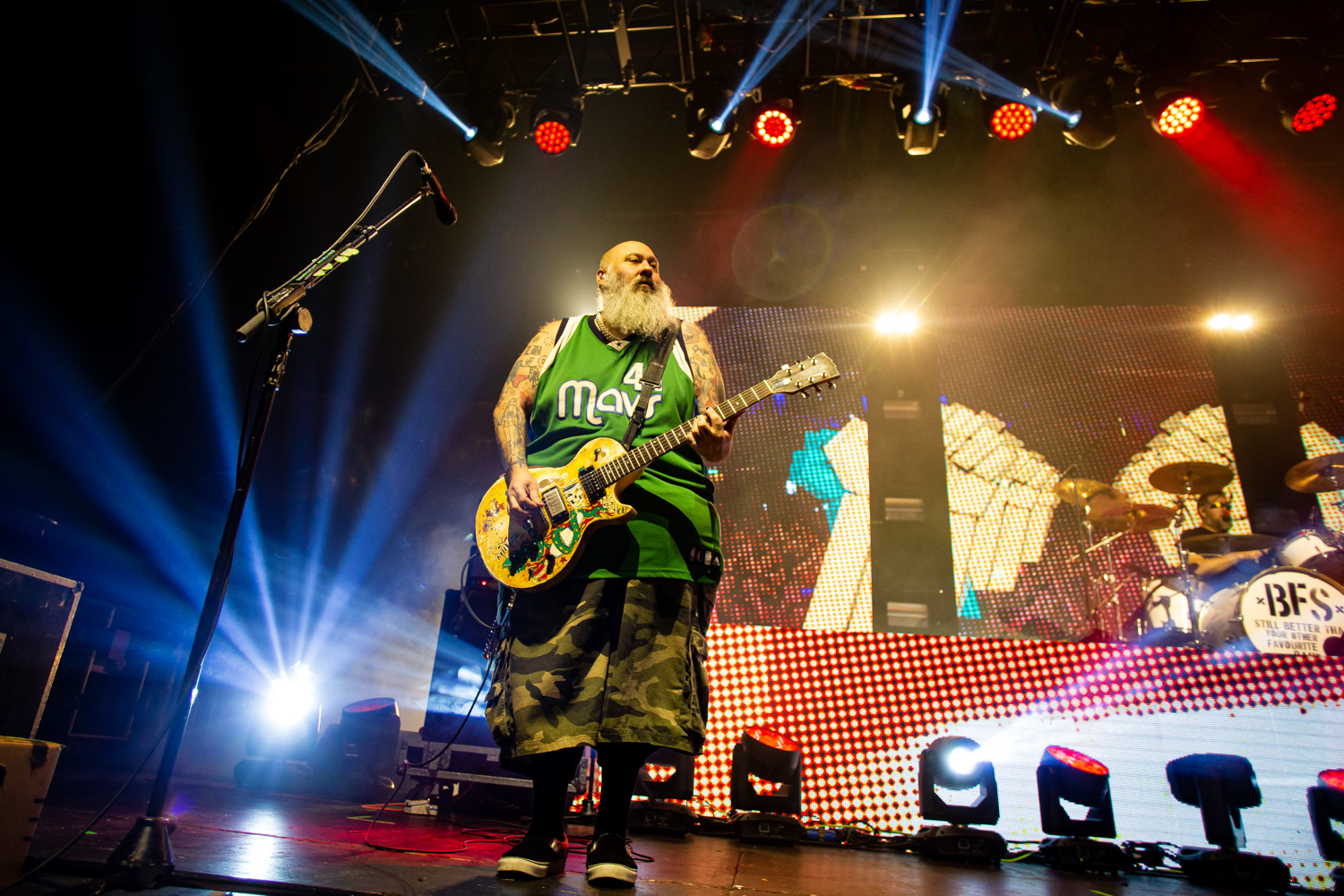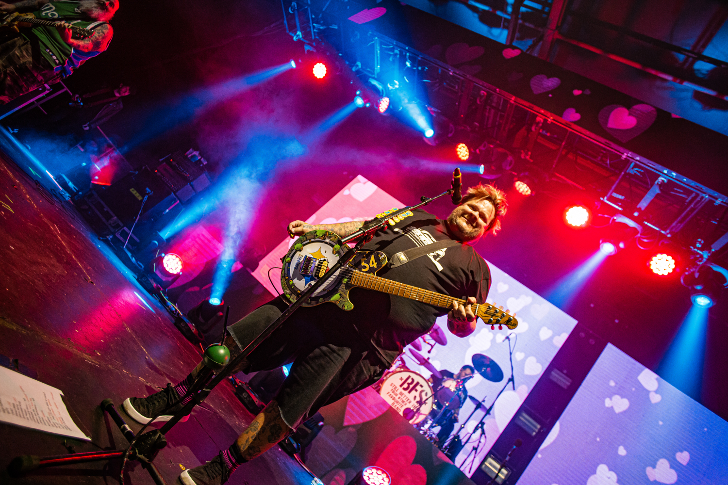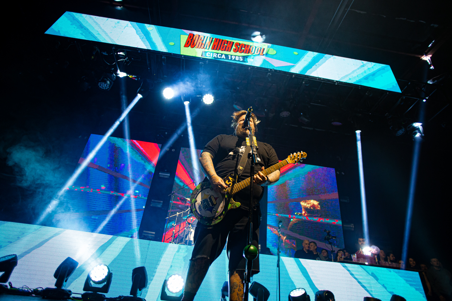 Brand new single Alexa Bliss, penned in tribute to the WWE Superstar of the same name and released just a week prior to this evening’s show, already has multitudes of fans singing every single lyric too, as the band are flanked by enormous images of Bliss herself during the song’s emphatic chorus. From here on out, the evening becomes pretty much a wall-to-wall greatest hits performance, with everything from anthemic heavyweights The Bitch Song and Smoothie King, to tear-jerker ballad When We Die and the “theme song to the greatest cartoon in the world”, Today Is Gonna Be A Great Day (of Phineas & Ferb fame), getting an airing across a set that seems to be packing limitless amounts of pop-punk bangers.