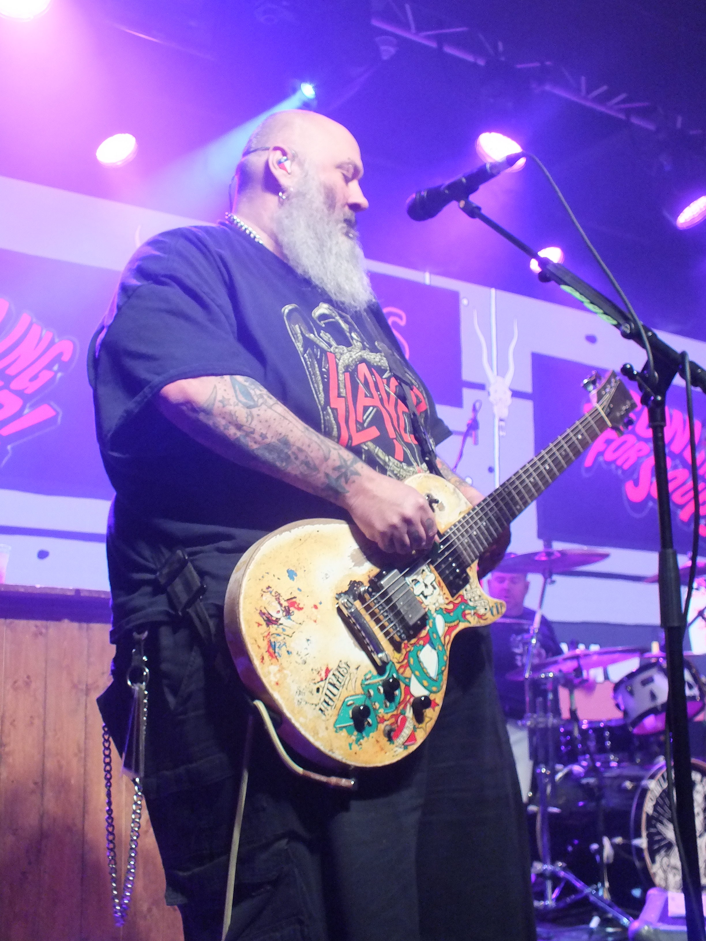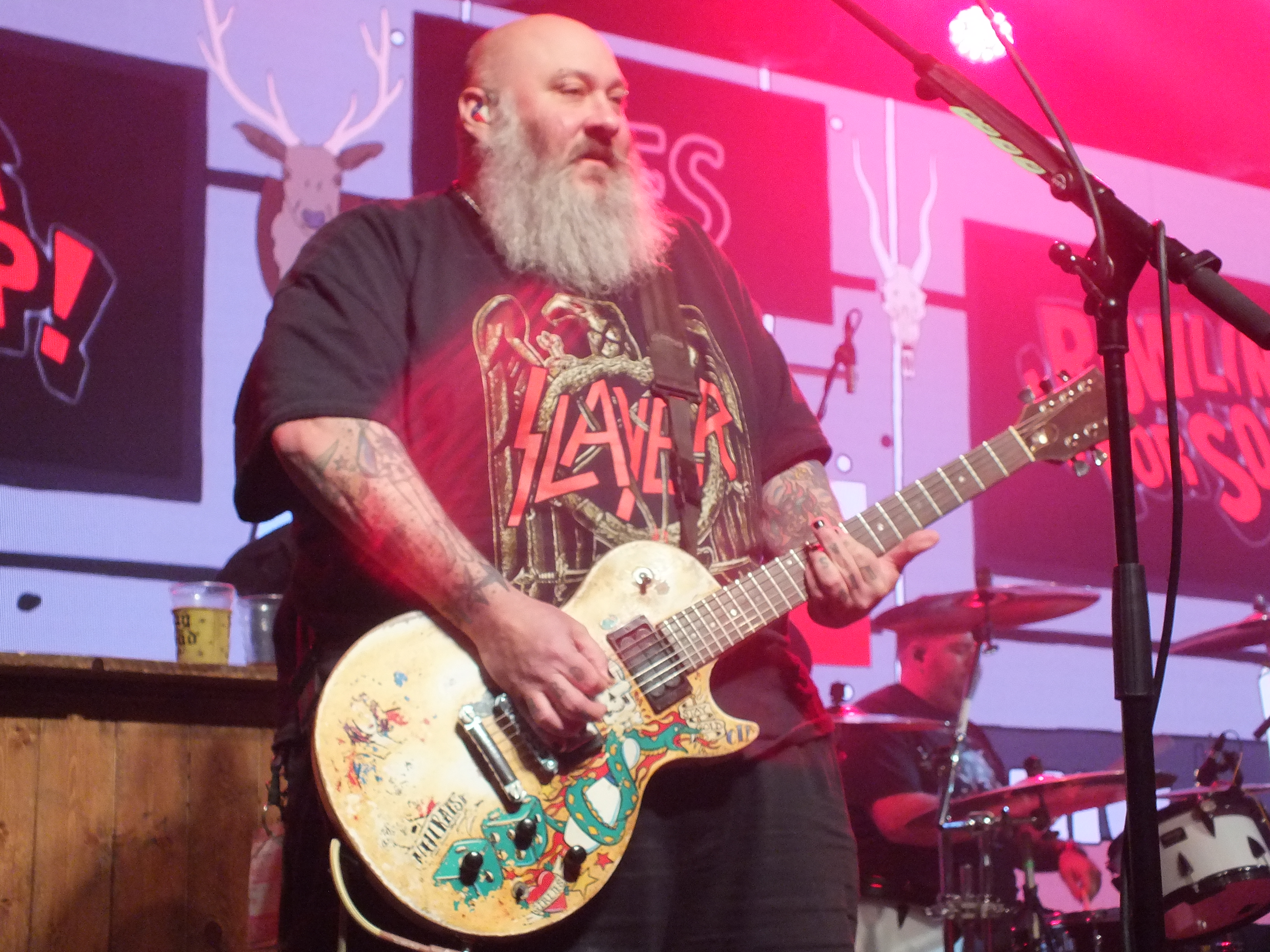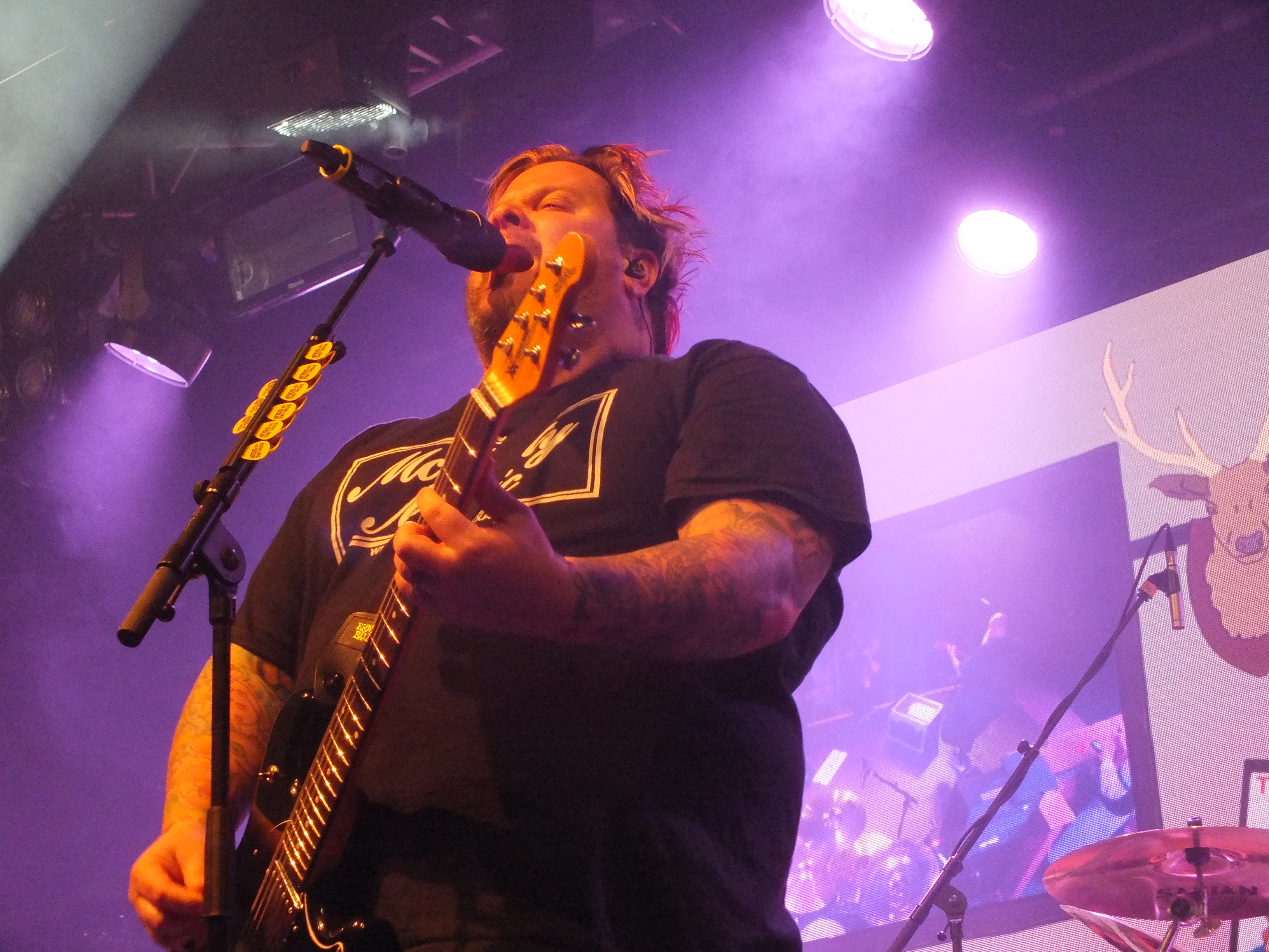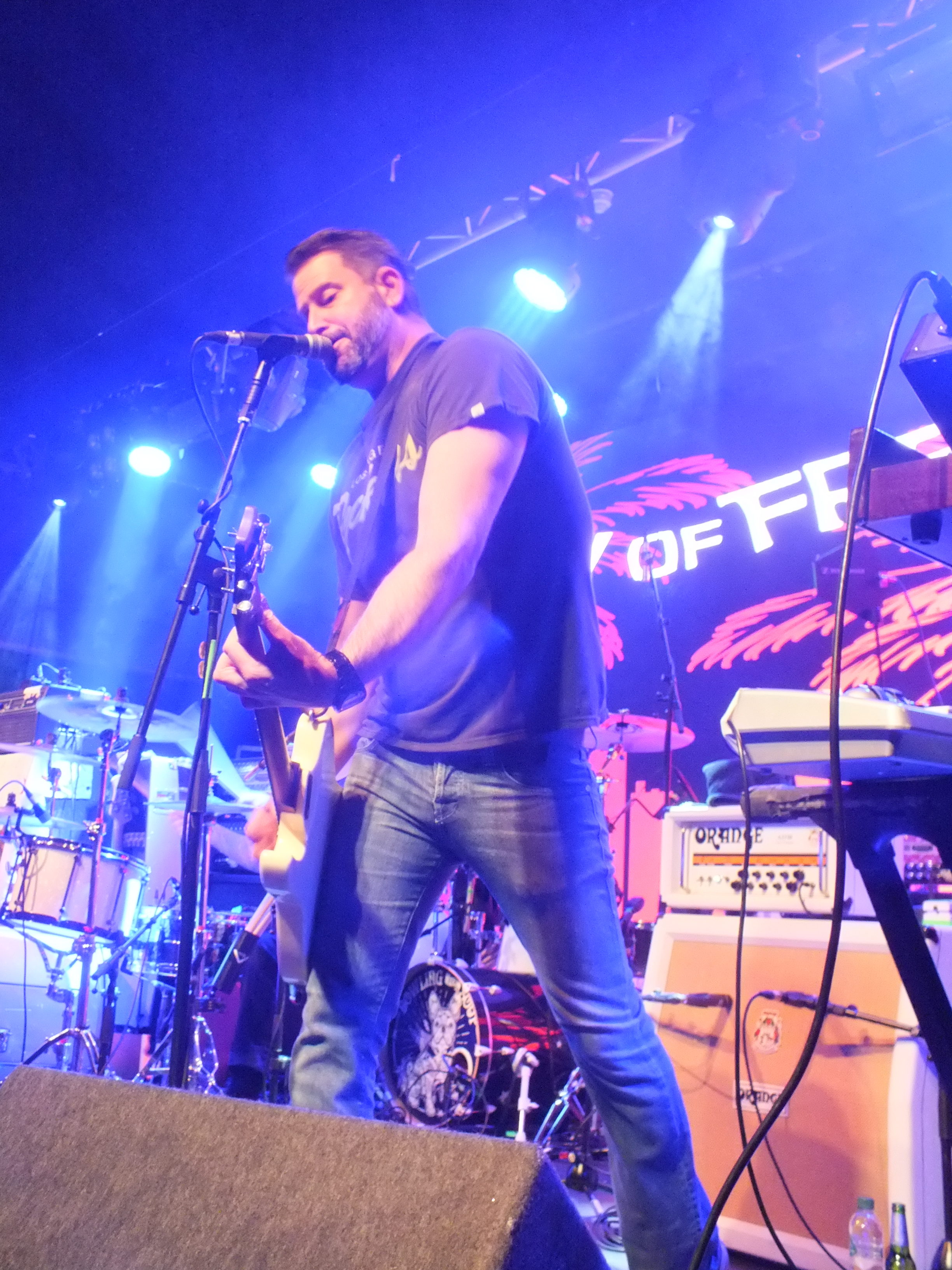 With over twenty years under their belt, BOWLING FOR SOUP need little introduction. The crowded room is a clear indication of their popularity, and passionate sing-along’s which even included the reverb on Girls All The Bad Girls Want. The return of the Get Happy Tour also contained a full performance of Drunk Enough To Dance, including fan favourites Life After Lisa and Surf Colorado. The LED screen behind stage offered the crowd either music videos to the respective songs or close ups of fans singing and dancing. Also at the back of stage was a bar and bar tender who spent the show making and delivering drinks to the band, and also singing along. Frontman Jaret Reddick is not the most serious person, and is good at engaging with the crowd and joking around, specifically when the decision of whether to play the Phineas and Ferb theme tune, which is written by BOWLING FOR SOUP, he got the crowd booing and yaying. Unfortunately, bassist Erik Chandler had some technical difficulties, including his bass head failing and subsequently being replaced mid-show. Upon receiving the replacement, he played a bass solo to celebrate and, well, let’s say it needed some work. No BOWLING FOR SOUP show would be complete without High School Never Ends, although Jaret finds it “strange to be singing this song when I’m 45 because it’s about high school”