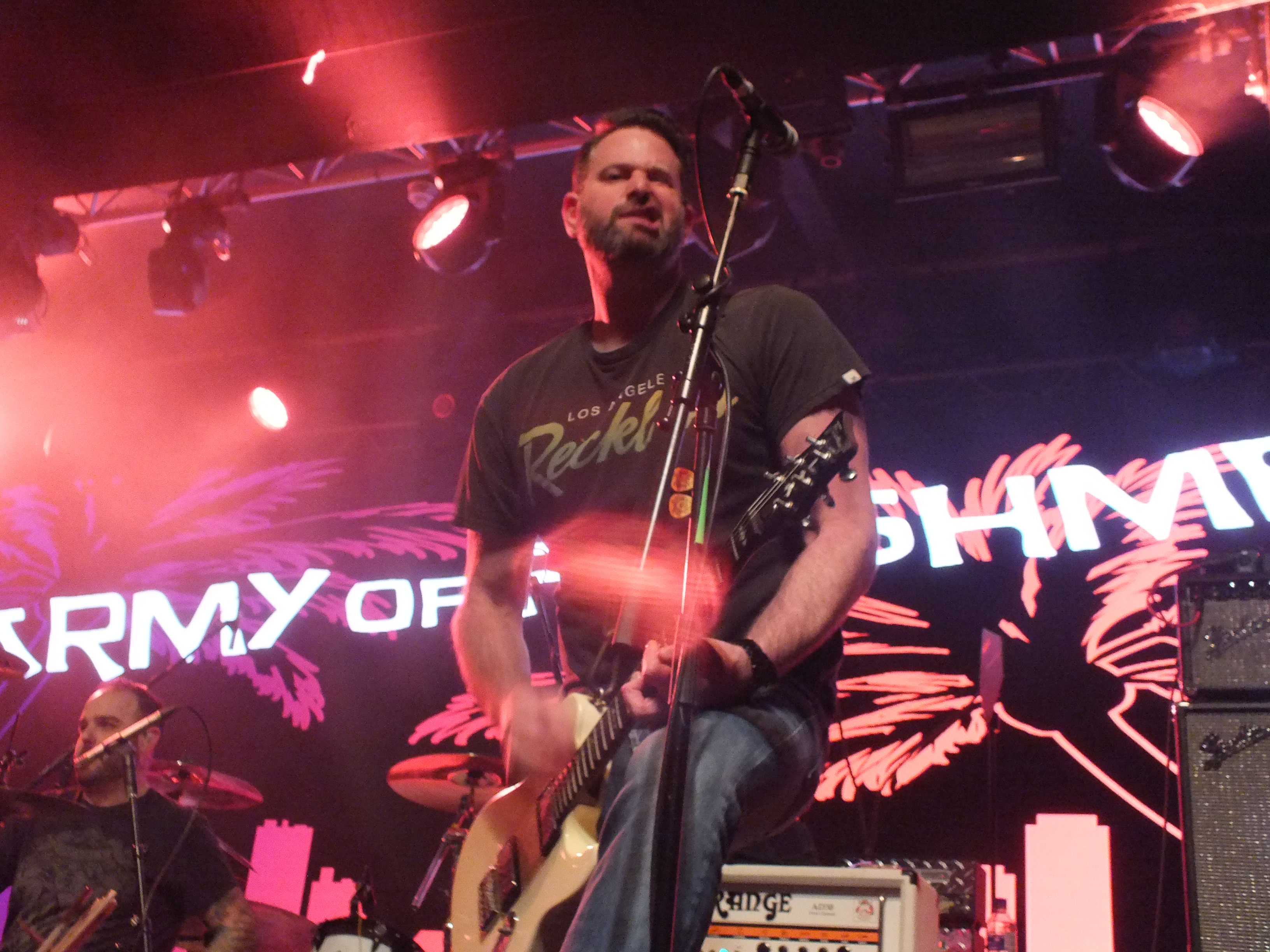 The Get Happy Tour once again opens with ARMY OF FRESHMAN taking the stage, this time celebrating their 20th anniversary. Full of energy, they bounce and jump their way through the set, their enthusiasm is infectious, a fantastic first support band and their pop-punk vibe complements BOWLING FOR SOUP. Starting the evening as it means to go on, the party atmosphere is quickly established and the audience are singing and dancing along. Frontman Chris Jay clearly enjoys being on the stage, and interacting with the crowd, joking between songs, regularly jumping onto the front barrier to high-five fans, even offering them the microphone to sing along. A full power performance that, even if you’ve never heard of the ARMY OF FRESHMAN before, it would be hard not to enjoy or tap your foot along to the beat. In celebration of twenty years, they played their 2006 album, Under The Rader, in full.