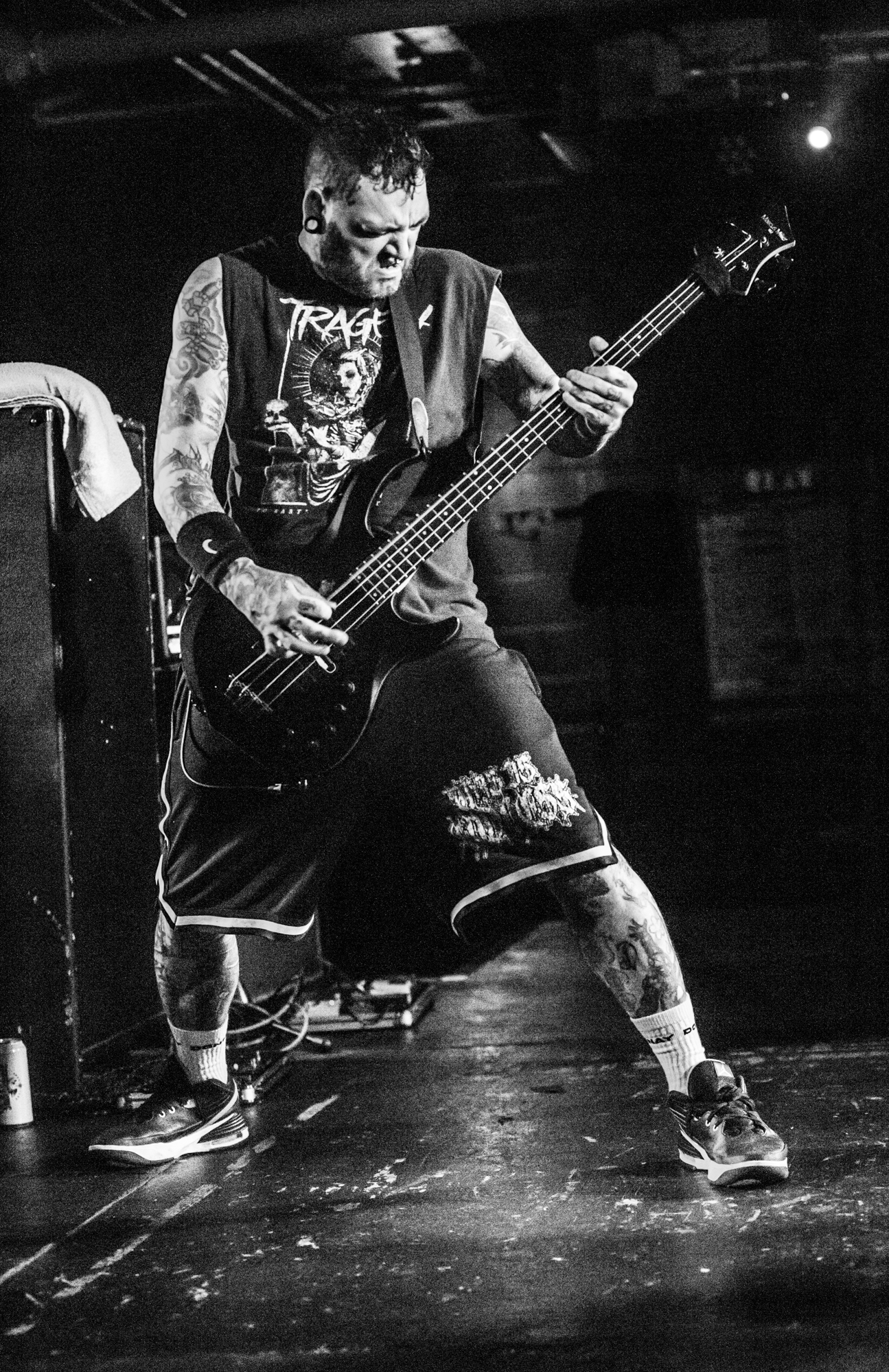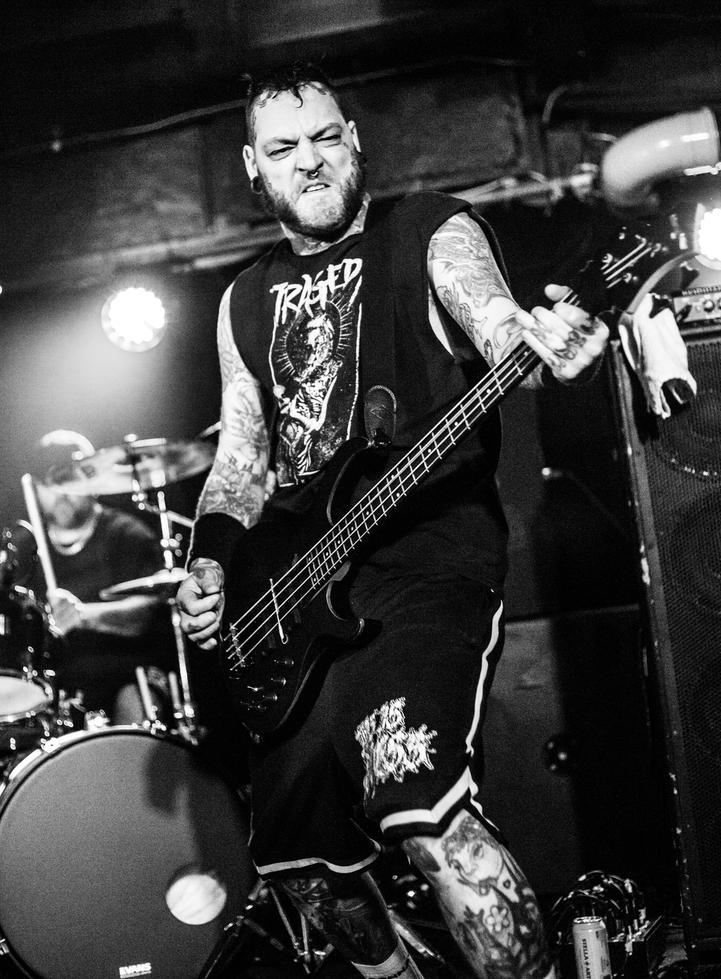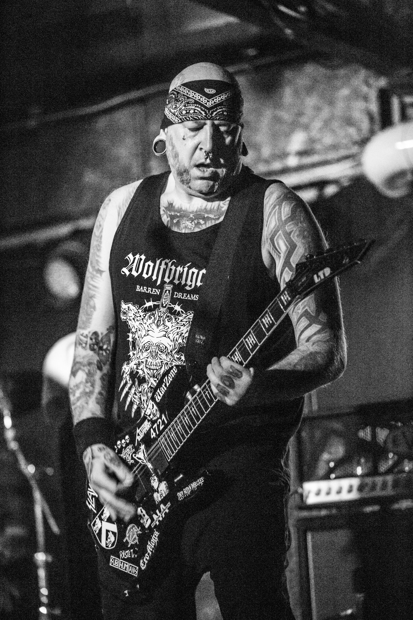 Partners in crime for the headliners are the UK hardcore gang BORSTAL, a relatively new group formed in 2019, featuring ex-BRUJERIA drummer Nick Barker (who isn’t performing tonight), vocalist Pierre Mendivil from KNUCKLEDUST and guitarist Lee Kitchner from DRIPBACK. The sprightly act force-feeds the punters a metalised take on hardcore punk. This means an inventory full of bruising d-beats, gang shouts and fat grooves that smoothly translate into the live environment.