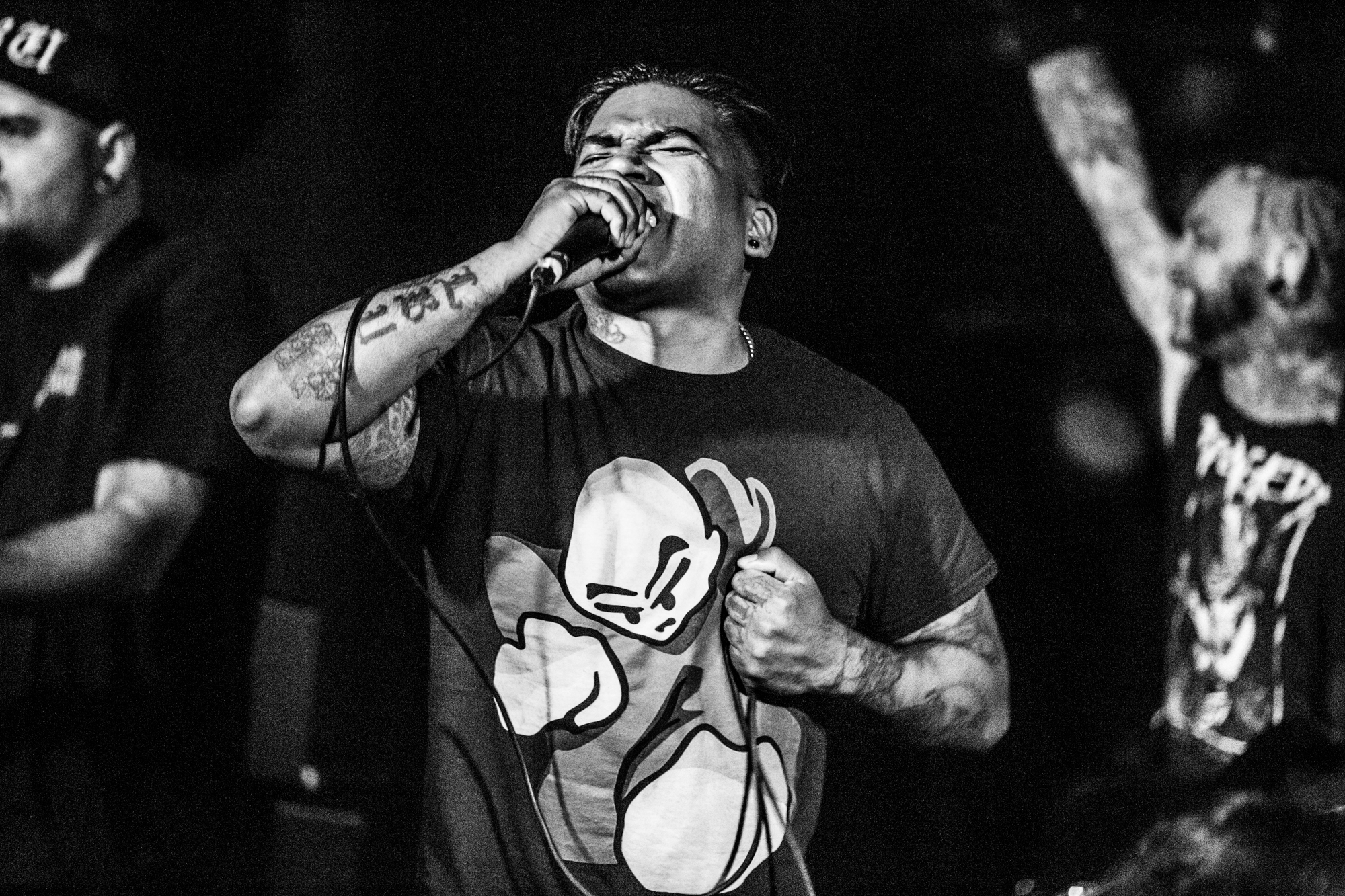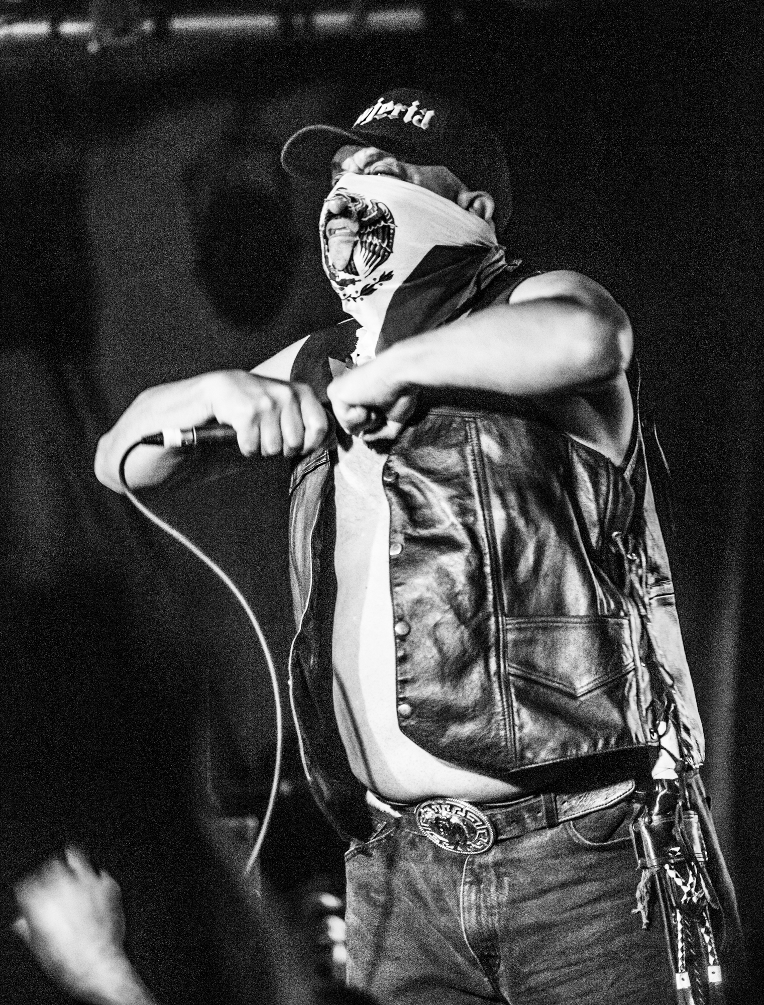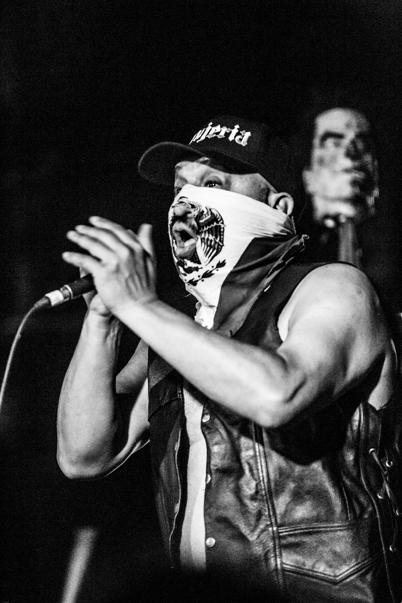 Given the concise nature of grindcore, the songs feel like a thousand fists to the face. They’re ugly, punchy, groovy and breakneck-paced. In between songs, the three vocalists, Juan Brujo, Pinche Peach, and El Sangron, ramble in alternating Spanish and English. The banter doesn’t last too long before they torpedo into another Hispanic anthem. While their songs shouted and growled in Spanish, the language barrier doesn’t prevent monolingual folks chanting along to many choruses, including Chinga de mecos, Castigo del brujo, La migra (Cruza la frontera II) and Consejos narcos. The grittiness of the original versions of the older songs fades live, but this serves the more friendly camaraderie of the concert. Last year birthed BRUJERIA‘s first full-length release in seven years, Esto es Brujeria. The title track opens the set, while Mexorcista and Mochado promote the album later on.