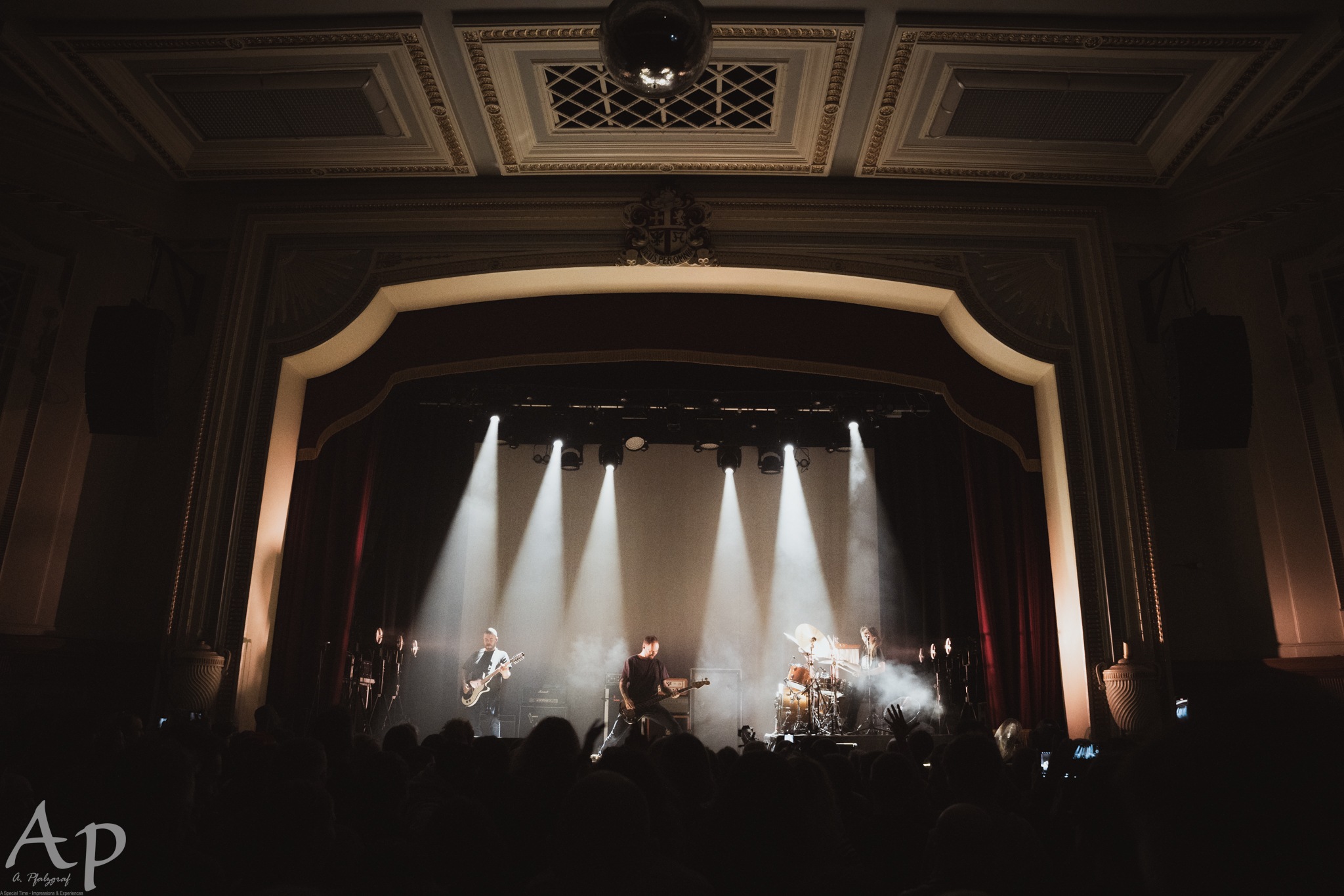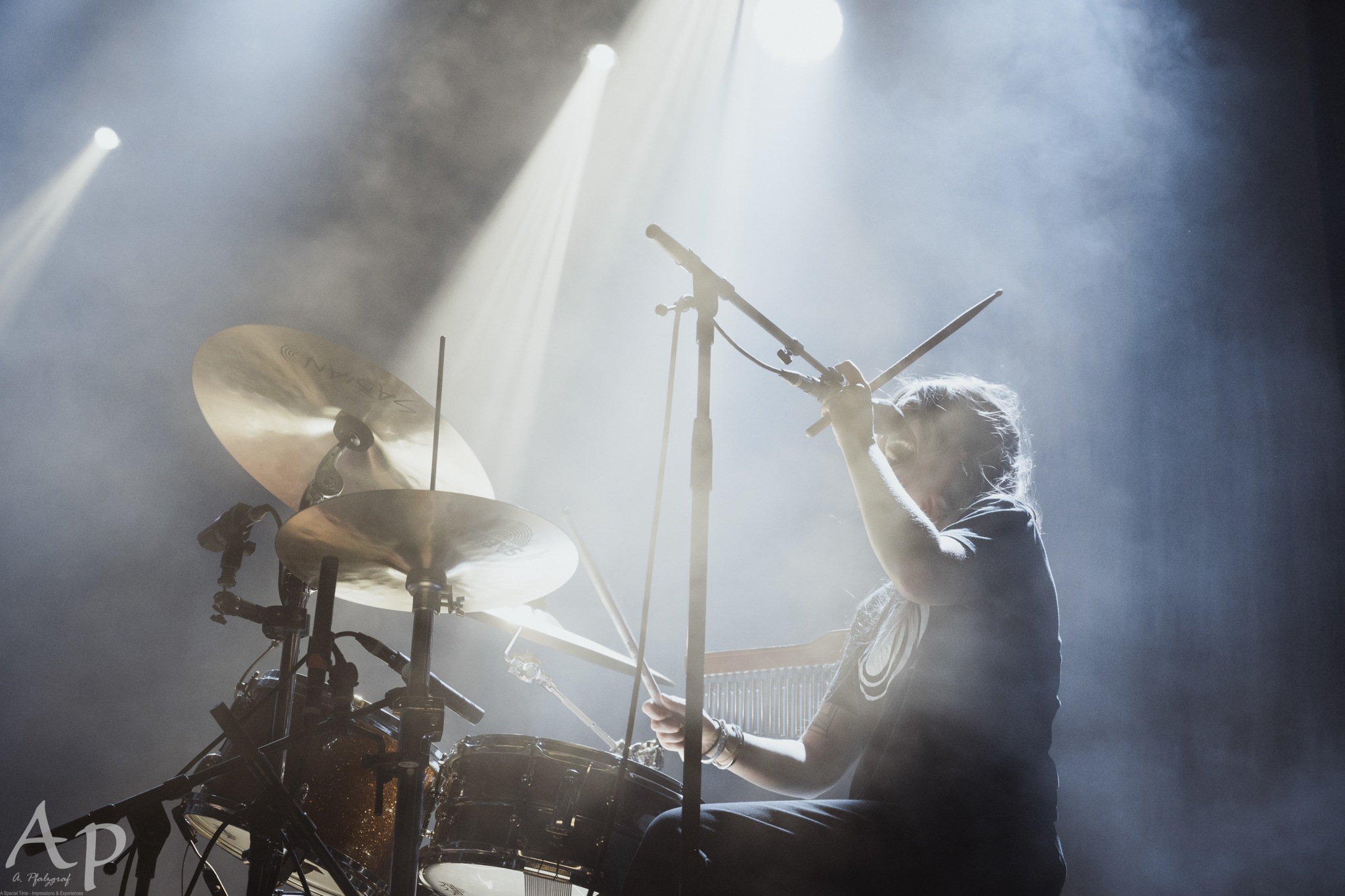 Opening with War, its soft beginning belies an explosive crescendo, while Justice de Julia II silhouettes the band against the white backdrop. Stefanie Mannaert’s voice is captivating, the pain captured in her lyrics evident through a voice that sounds as if it could crack under the emotional strain. That she conveys such powerful feeling and belts such huge melodies all while shifting times and tossing out drum fills is astounding, but she makes it look all too easy. Liar’s thundering bass melodies are a treat to behold, with a “smooth transition” as Stefanie chuckles after a false start to Chainlife.