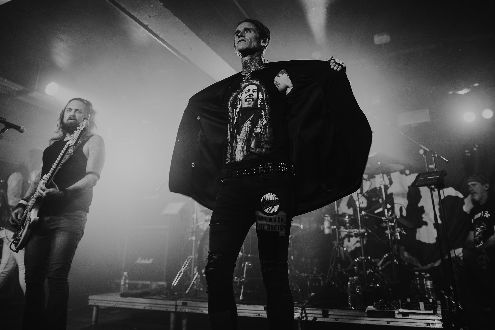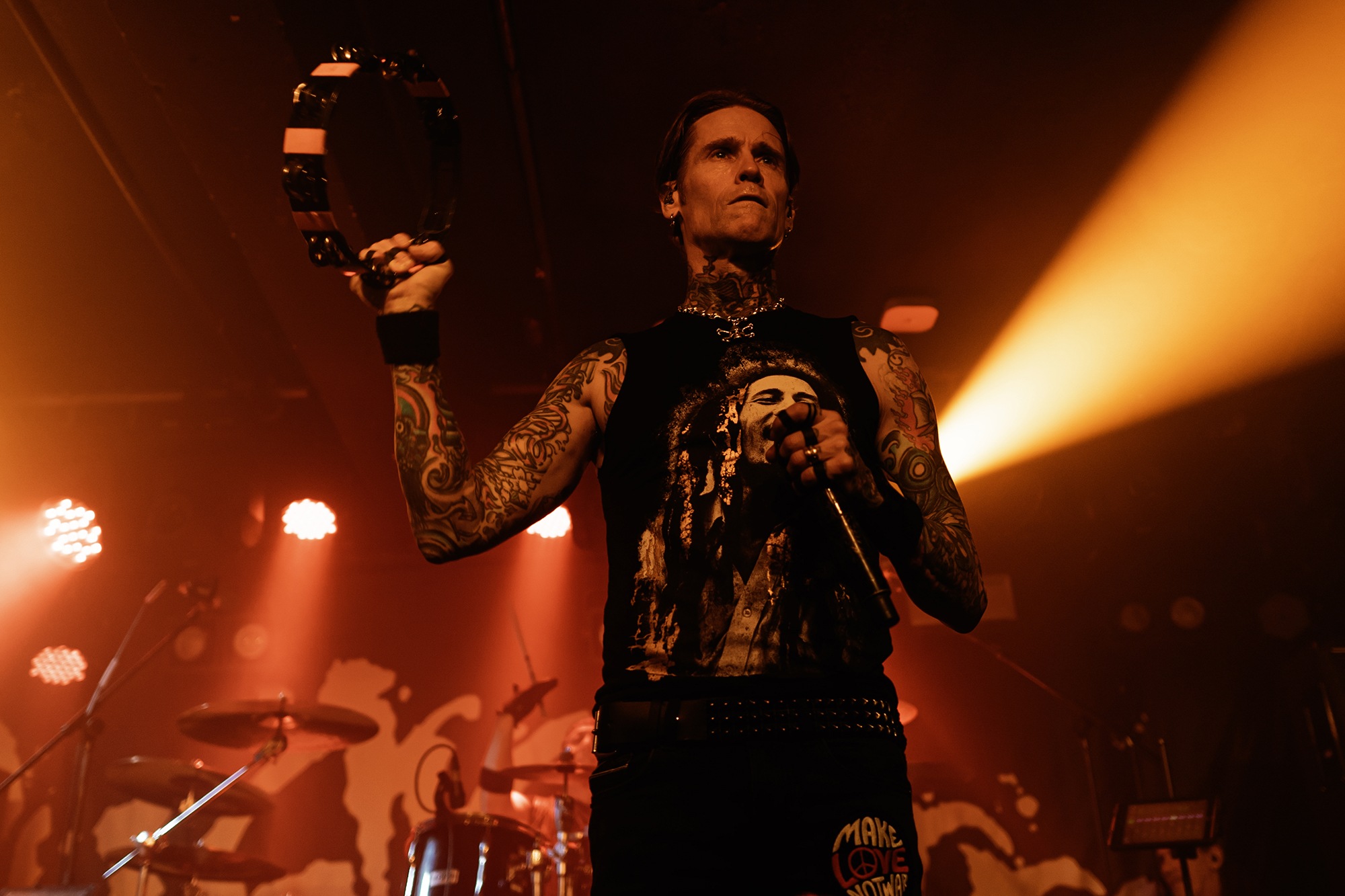 The band members themselves were a whirlwind of motion, constantly engaging with the crowd and feeding off the energy of their fans. Bassist Kelly Lemiux, also known for playing bass in ska punk band GOLDFINGER, is not afraid to get up close and personal with the crowd, often venturing to the barrier to share a moment with fans in the front row, the other members matching his energy. Lead singer Josh Todd powered through the night with a chest infection, having cancelled shows in Nottingham (there’s nothing more hardcore than prioritising your health) just a few days prior. But on this night, they showed no signs of slowing down.